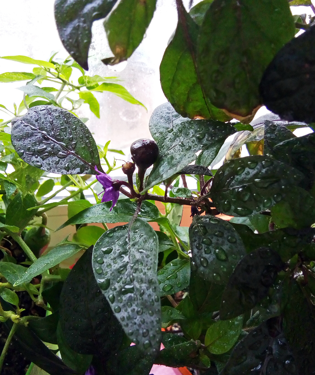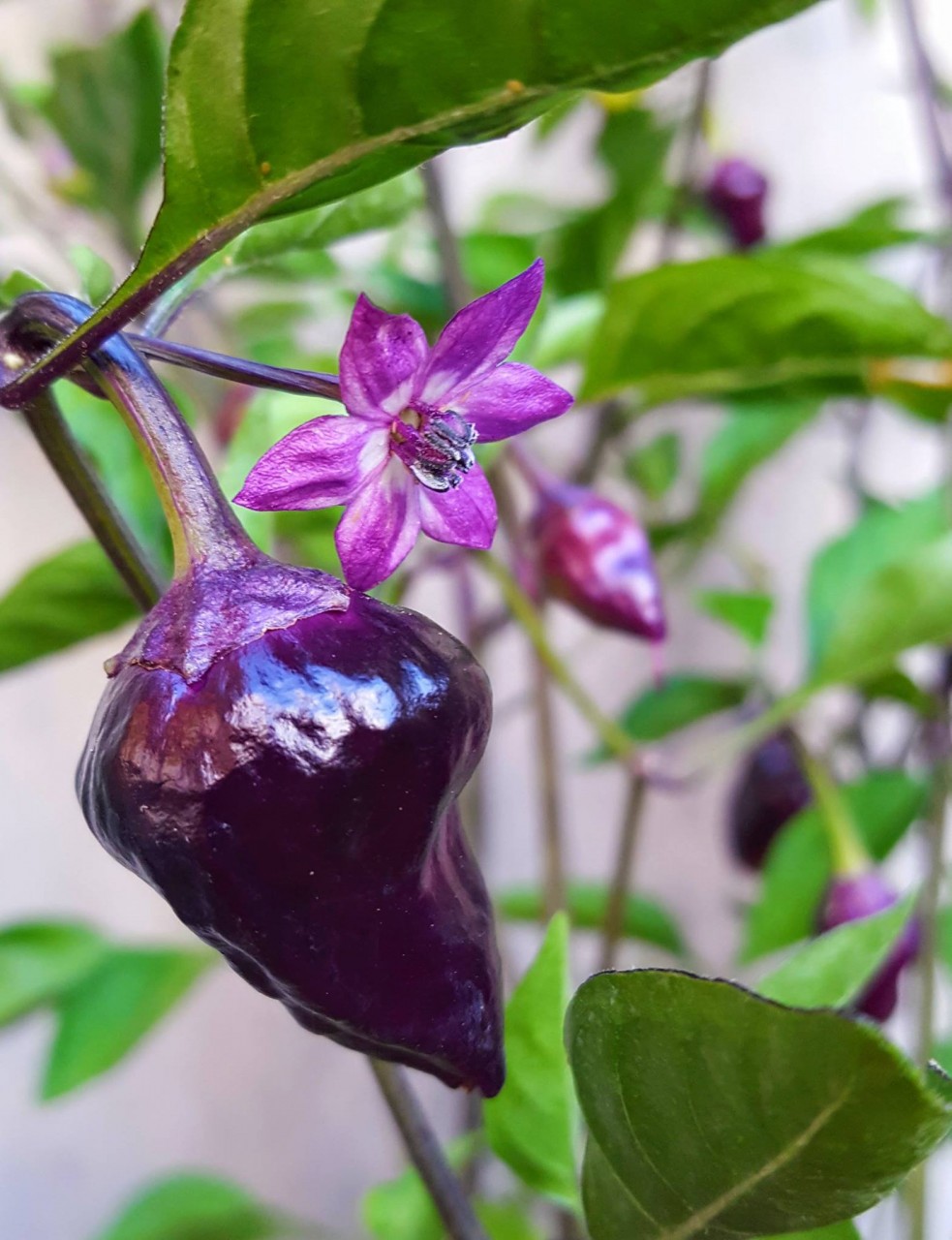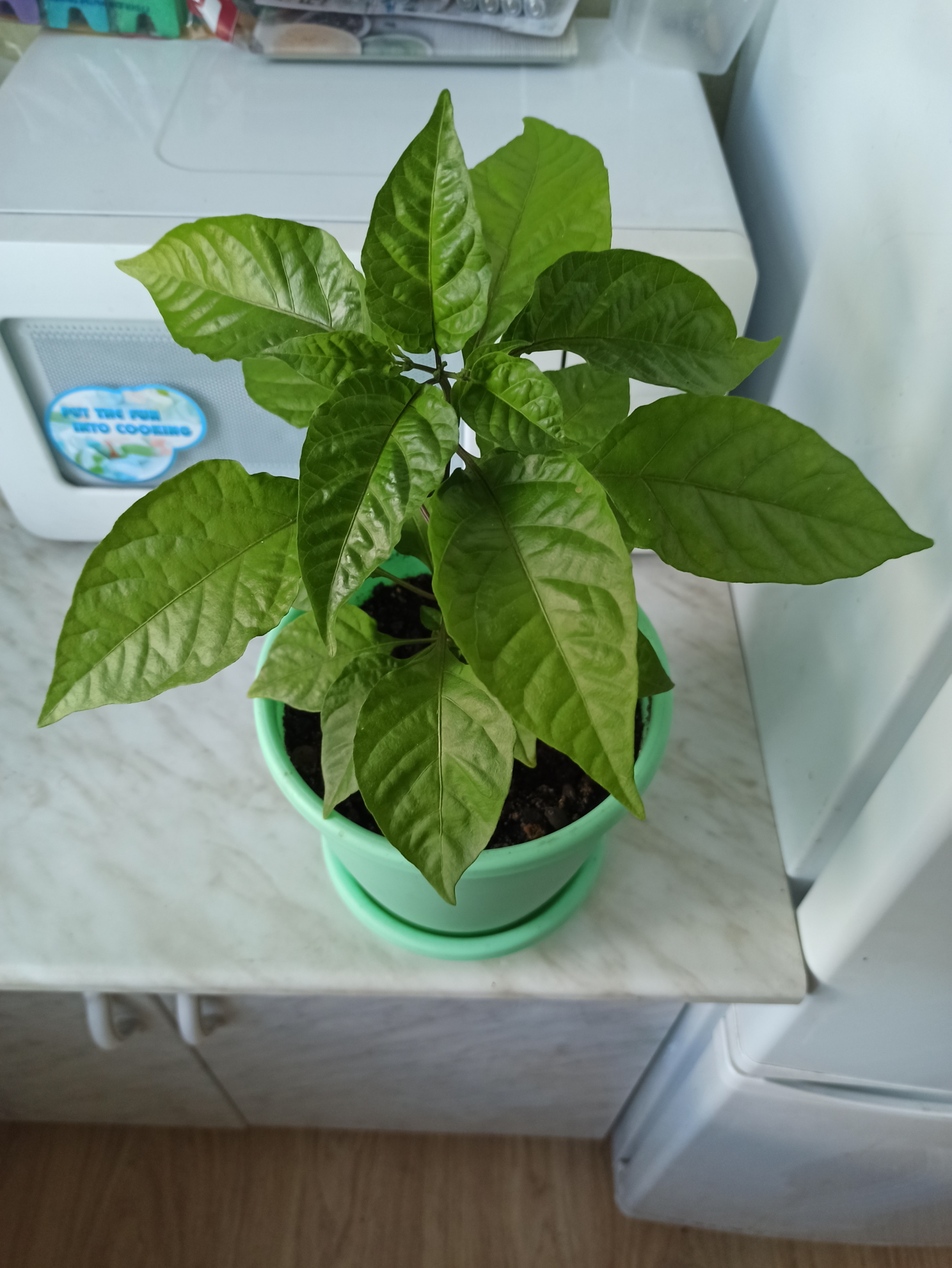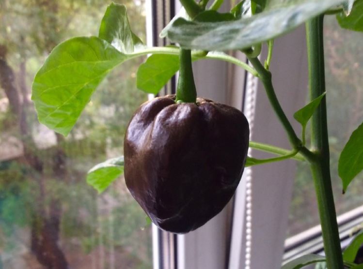 Похвастаюсь заодно своим ёба-монстром "черной жемчужиной". Сейчас начала активно цвести и завязываться, правда плоды маленькие, размером с горошину душистого перца. Еще у нее охуенно толстый ствол и хорошая ветвистость. Думаю вырастить еще одну под "бончи".
