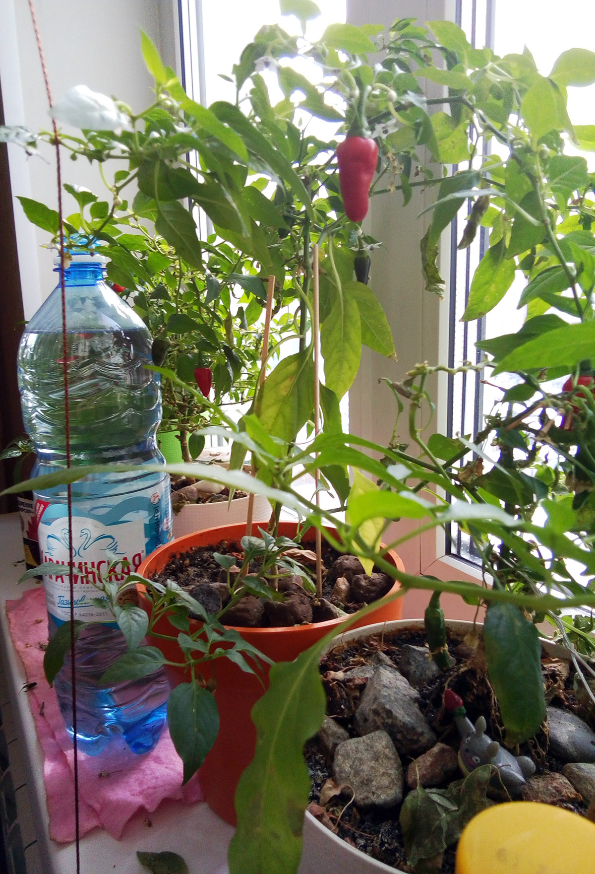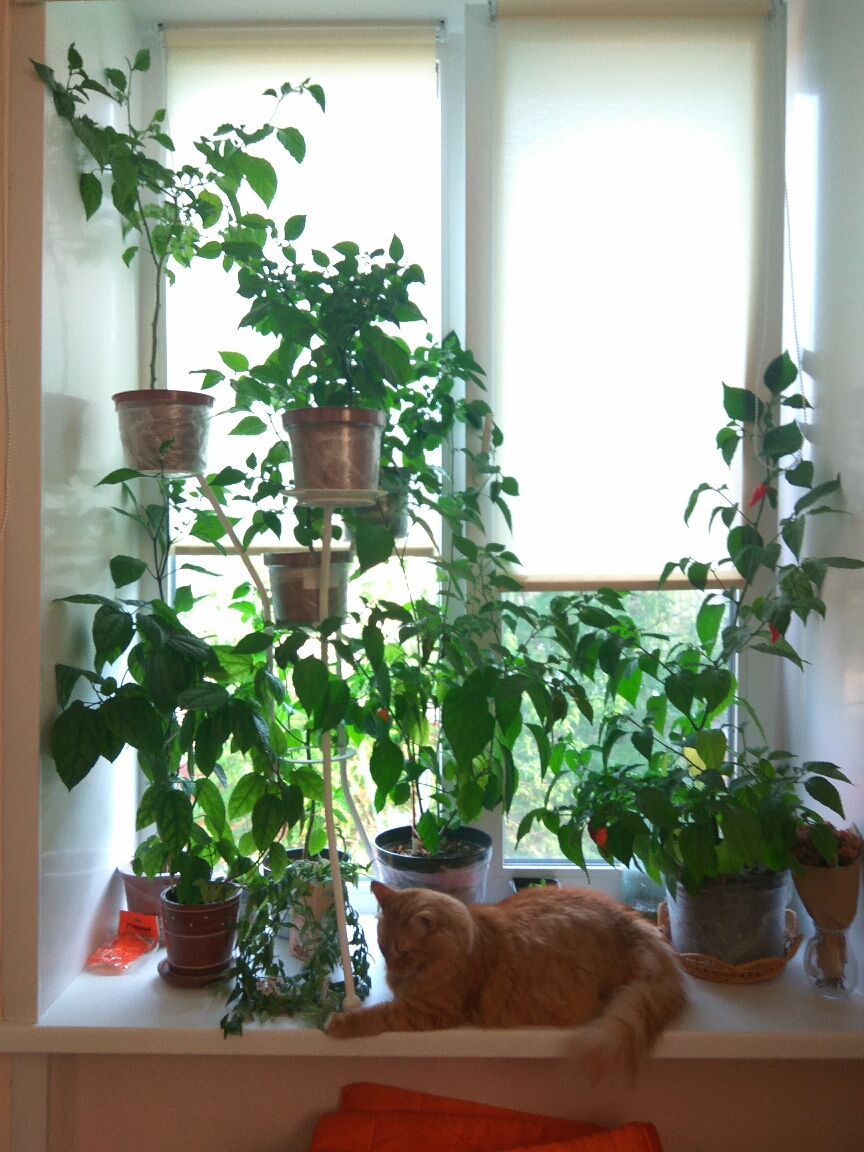 Снова прибрался. Как все-таки быстро засирается подоконник от перцев. Пойду завтра в мерлен, поищу какую-нибудь хуиту для вертикального размещения, типа как >>6631 у этого анона. А то в семье пополнение: "Пиковая дама" - 1 шт. "Салют" (интересный перец с оранжевыми плодами) - 2 шт. и 7 шт.! "Хабанеро". "Хабанеро" не мог прорастить уже два раза, а тут, практически все вылезли (после того как замочил семена в катализаторе роста), 4 шт. оранжевого и 3 шт. красного. Куда их теперь девать, хуй знает, но выкидывать жалко же. Часть перцев поедут на балкон, так что до осени поухаживаю за всеми новичками, потом, надеюсь школы откроют, подарю часть в оранжерею.