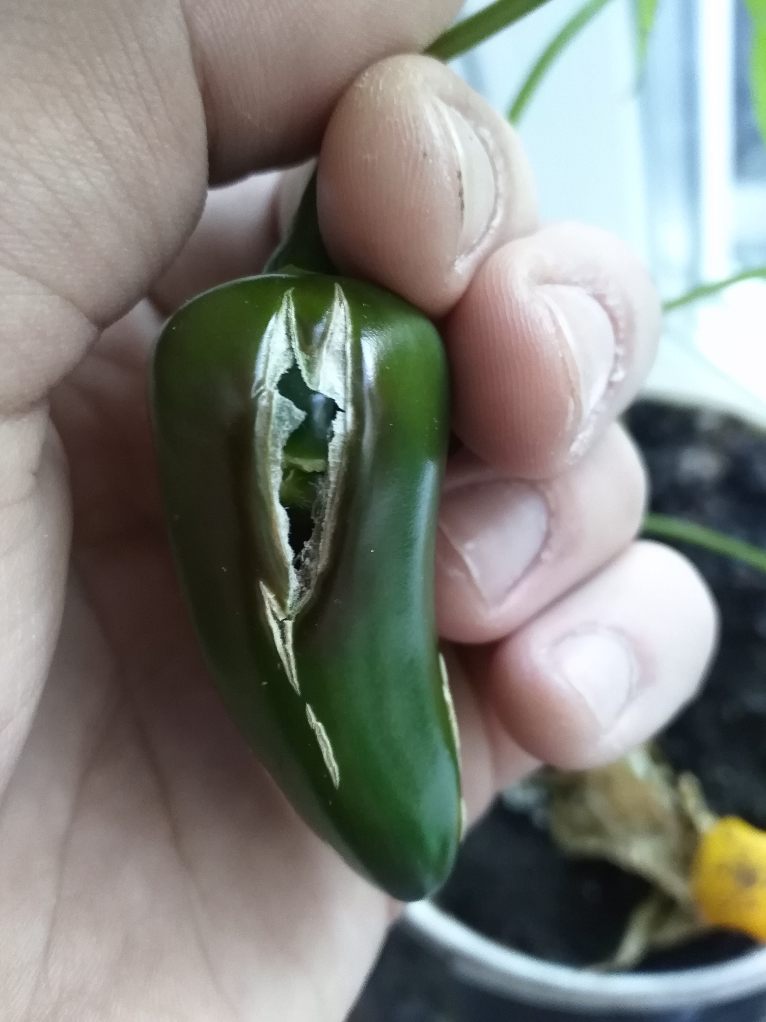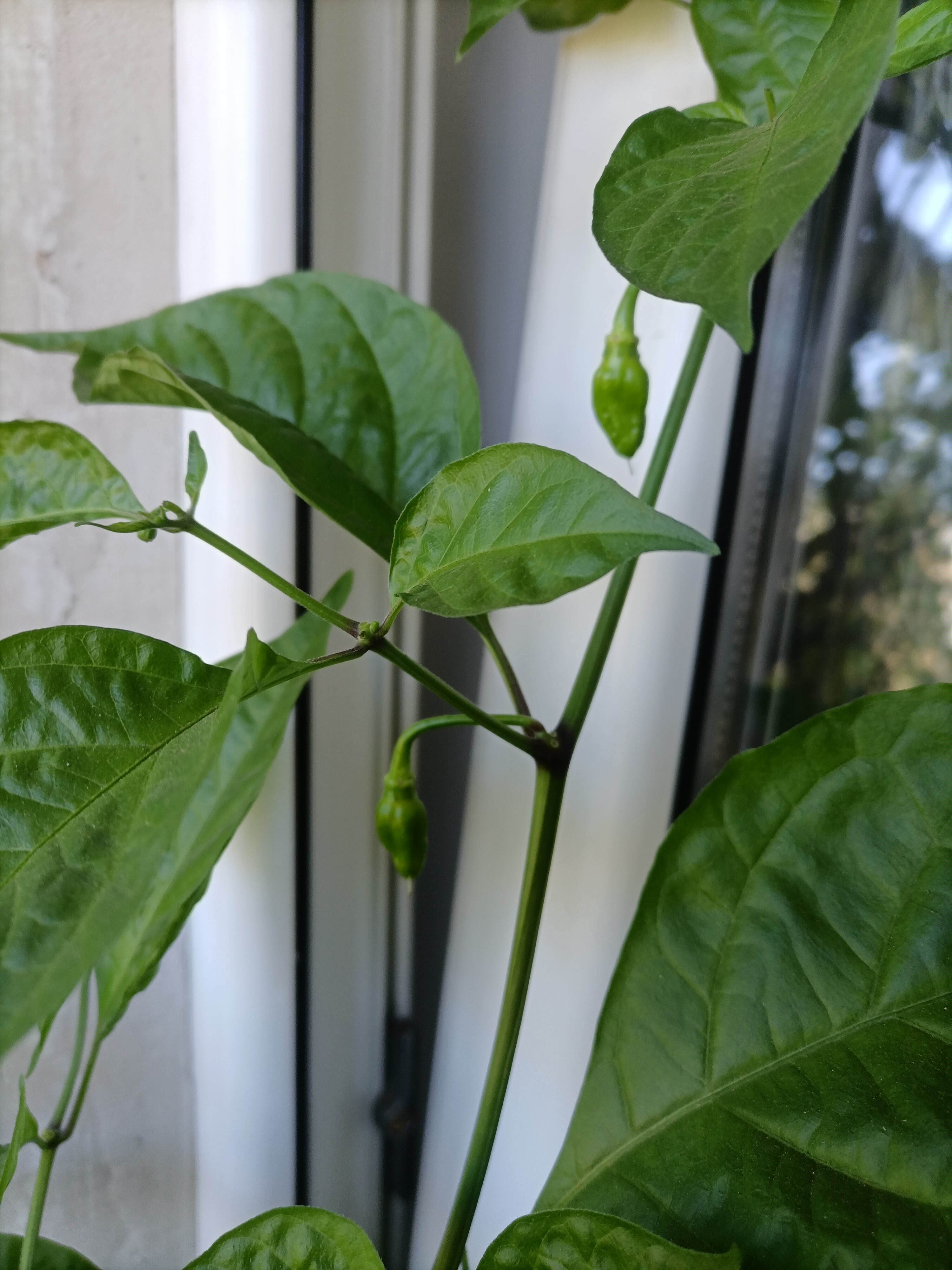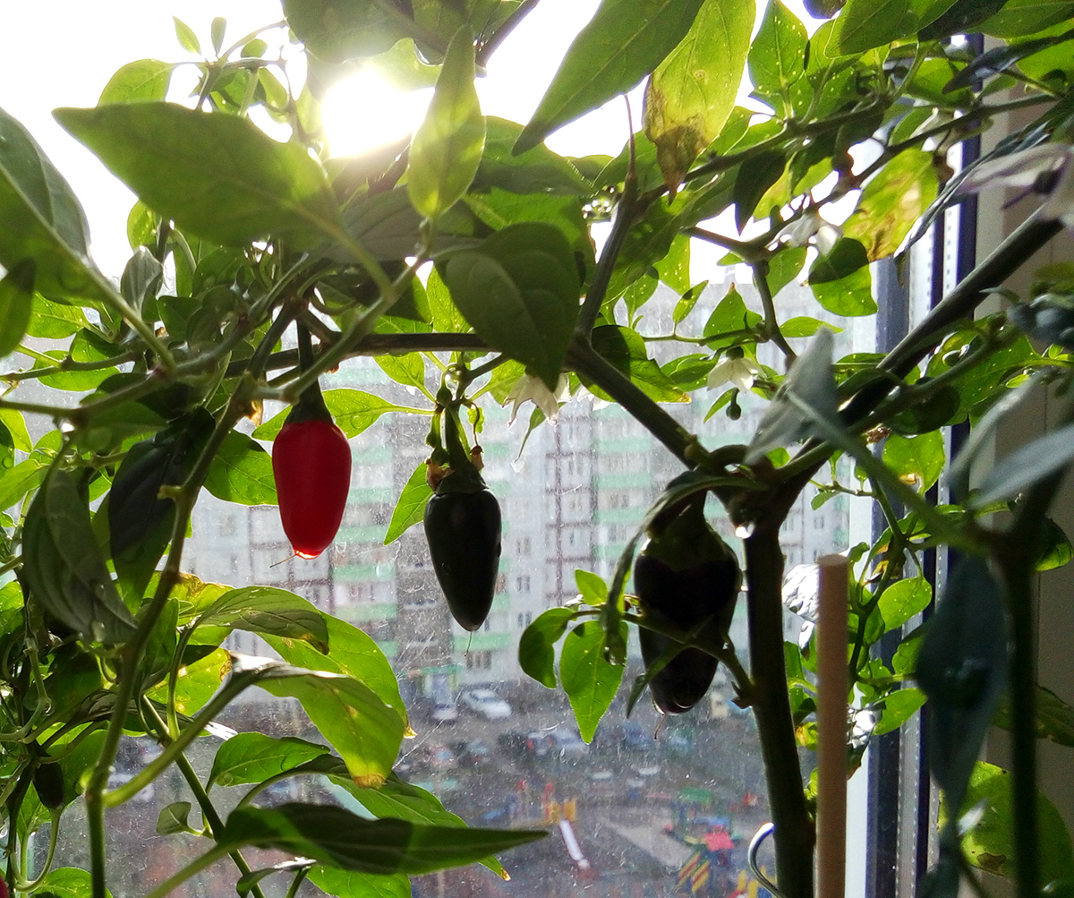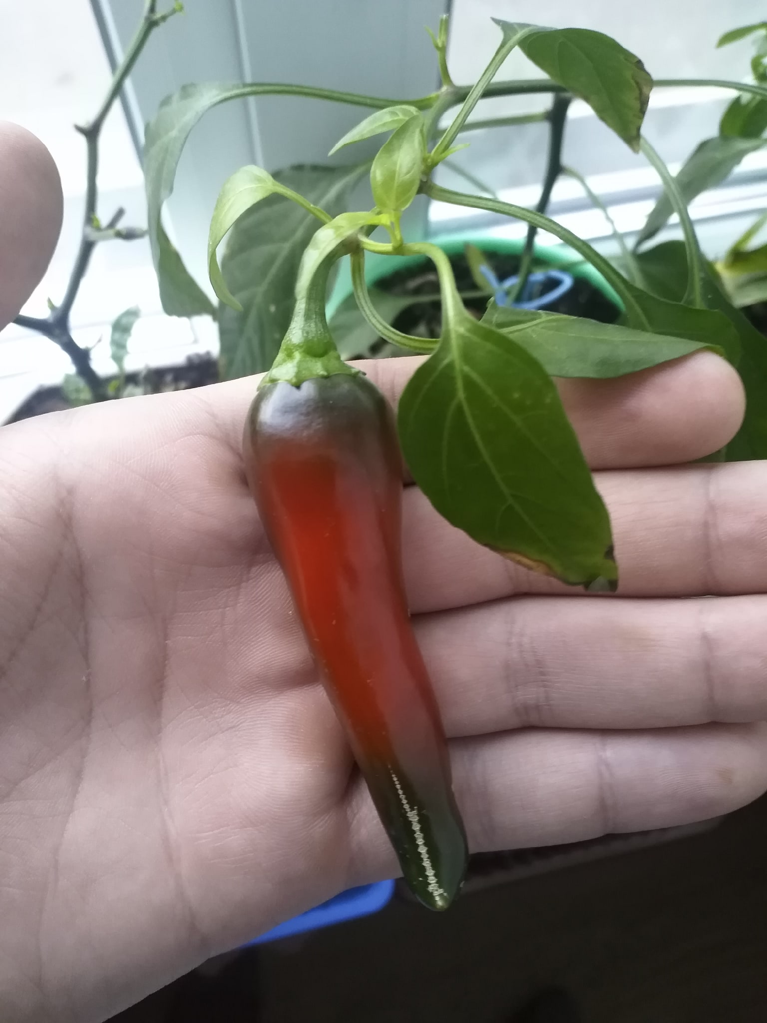 Прошлые несколько перцев халапеньо сорвал зелёными по советам из интернетов. На вкус как неспелый болгарский перец. Остроты вообще не было. Теперь пробую дать им созреть до красного цвета.