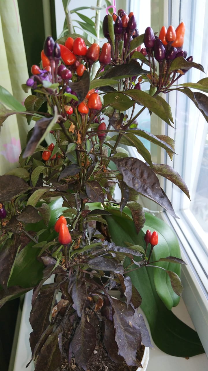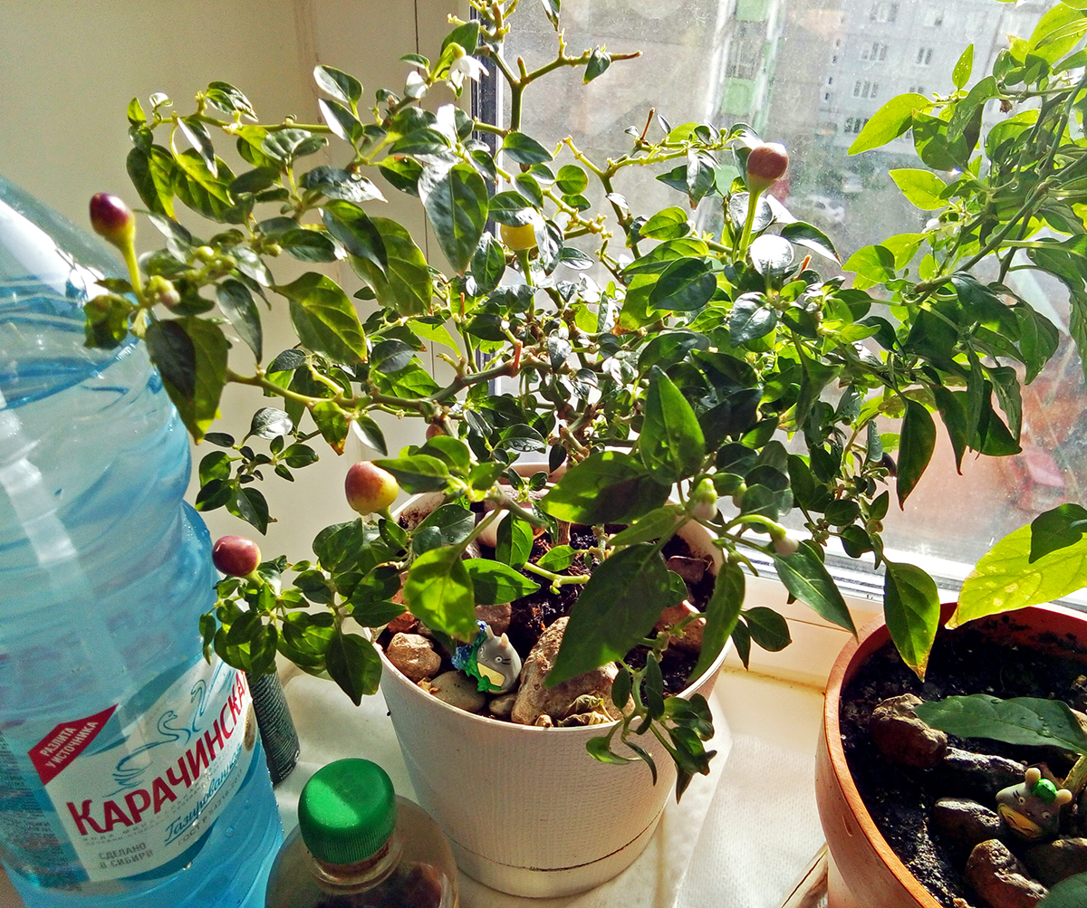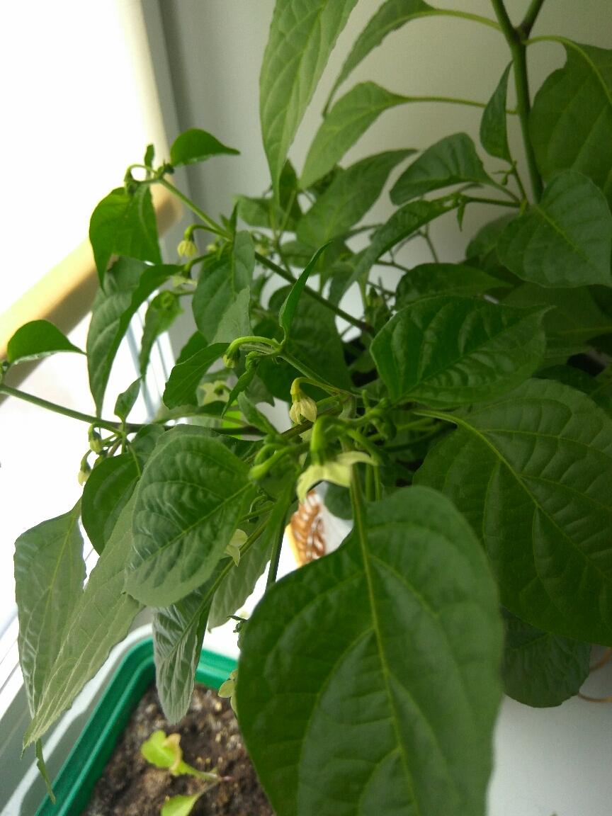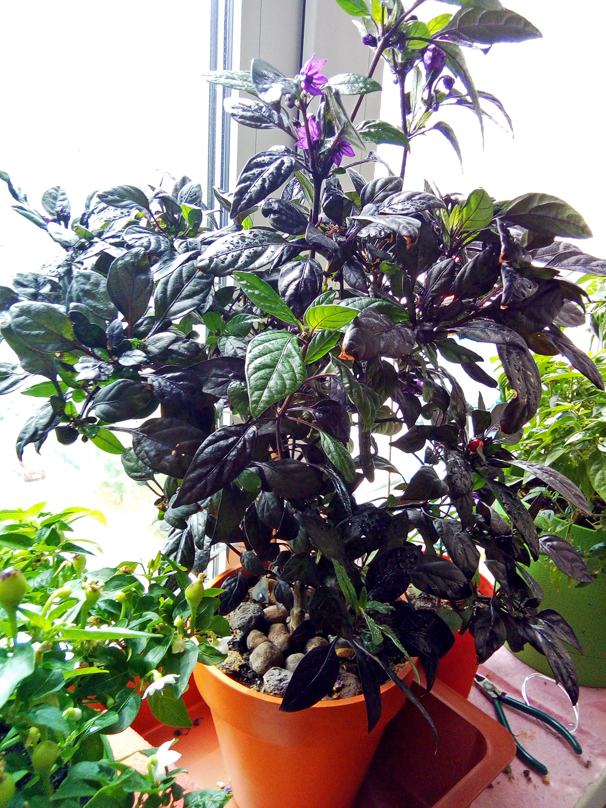 "Pearl black" (который с фиолетовыми цветками) и "Чензо" (который с красными перчиками). Жемчужине, что-то не хватает, уже второй раз происходит бурный цвет, а потом все осыпается вхолостую. Вроде и витаминки даю и удобрения, но что-то не так идет, возможно это связанно с засветкой, т.к. у меня тут сибирь, зима, черное небо и прочая хуйня. Чензо показал себя охуенчиком: крупные плоды, острота 30к (это у меня пока самый острый товарищ, заточив маринованный плод истекаешь потом часа два и очко потом горит), неприхотлив, растет как надо, короче рикамендую перцеёбам такого друга себе посадить.