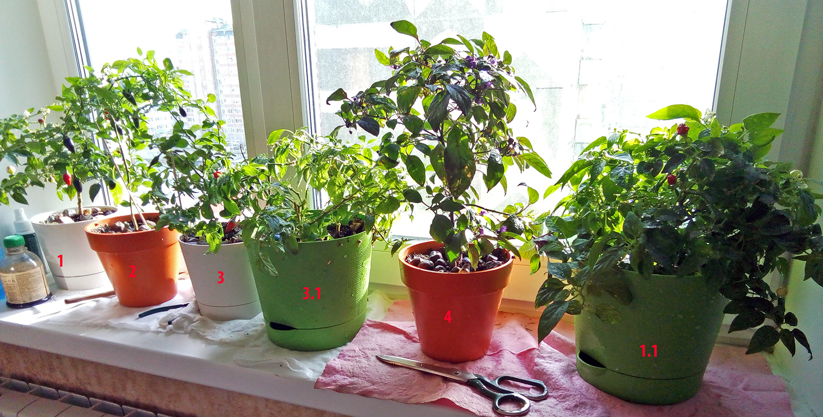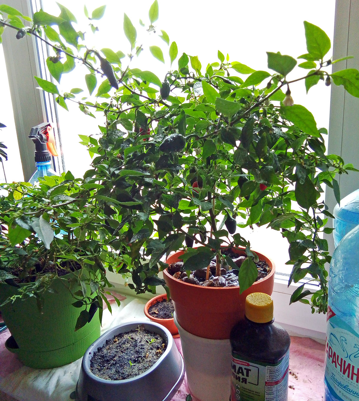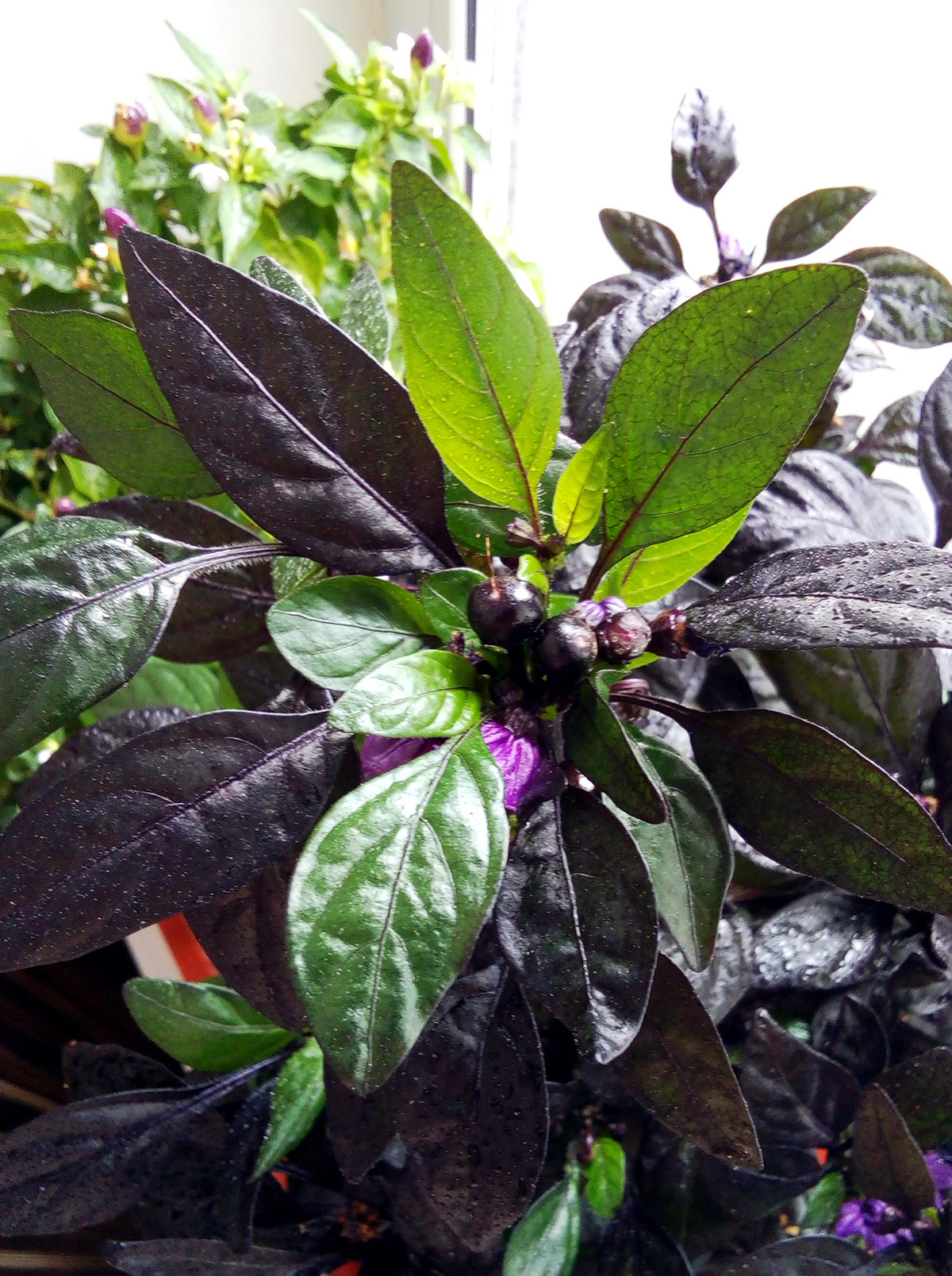 "Pearl black" (который с фиолетовыми цветками) и "Чензо" (который с красными перчиками). Жемчужине, что-то не хватает, уже второй раз происходит бурный цвет, а потом все осыпается вхолостую. Вроде и витаминки даю и удобрения, но что-то не так идет, возможно это связанно с засветкой, т.к. у меня тут сибирь, зима, черное небо и прочая хуйня. Чензо показал себя охуенчиком: крупные плоды, острота 30к (это у меня пока самый острый товарищ, заточив маринованный плод истекаешь потом часа два и очко потом горит), неприхотлив, растет как надо, короче рикамендую перцеёбам такого друга себе посадить.