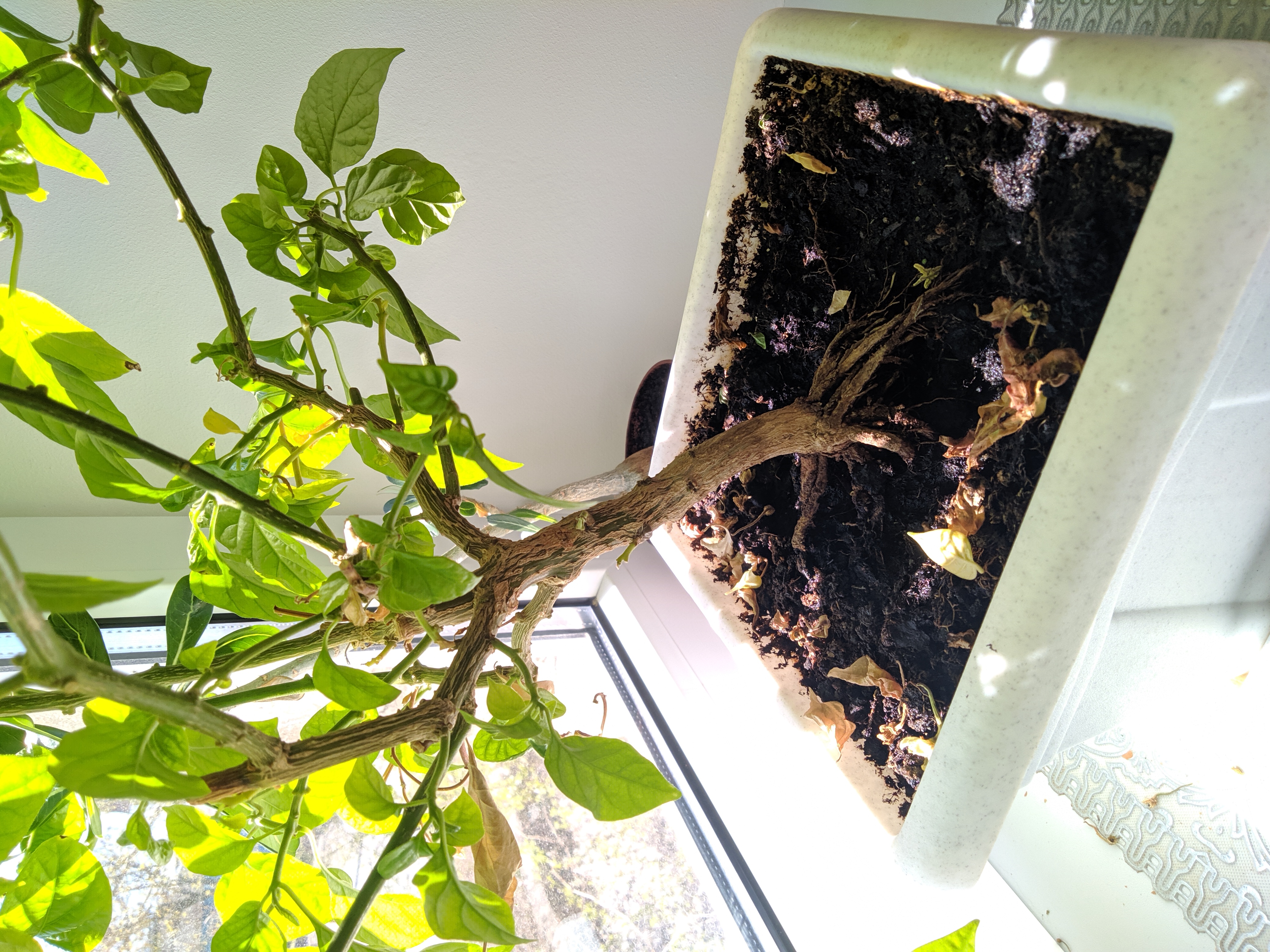 >>6988 Бансай из перца, круть. Чёт ствол у него как не родной, он в коряге растёт?