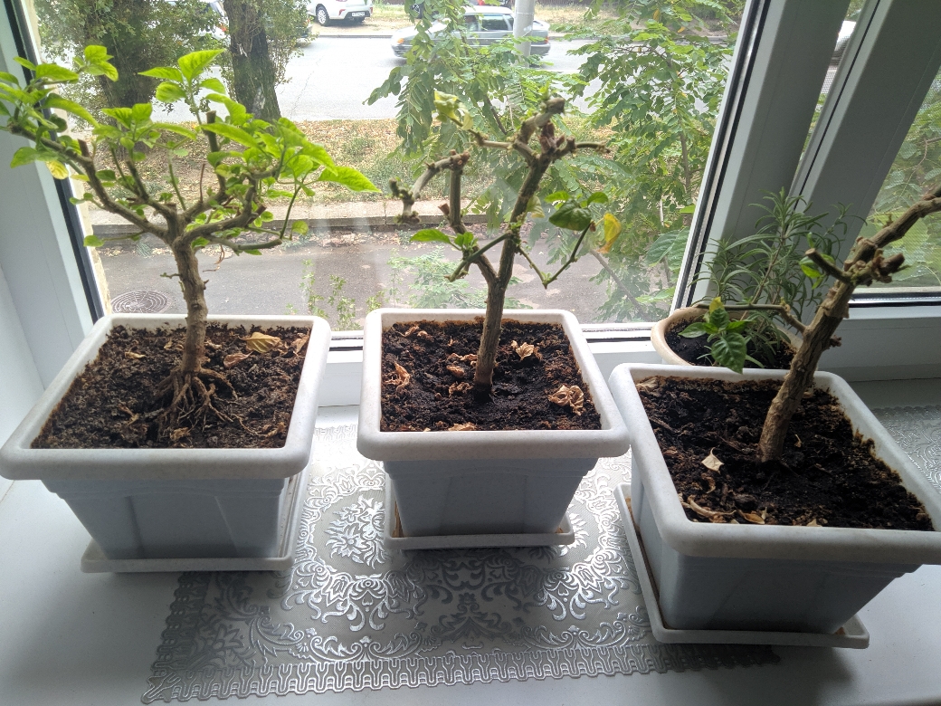 >>6983 > Какого объема у тебя горшочки? 3 литра > Чево они такие грустные и облезлые? Обрезал их в очередной раз. Левую хабанеру пару недель назад, а остальные вчера. >От чего зелёный ствол деревенеет и покрывается корой? От старости >Сколько им лет и как они плодоносили? 4 года, заебись плодоносили до этого года, но у меня ремонт щас, и у них очень хуевые условия, как итог 7 перцев с этих трёх кустов.