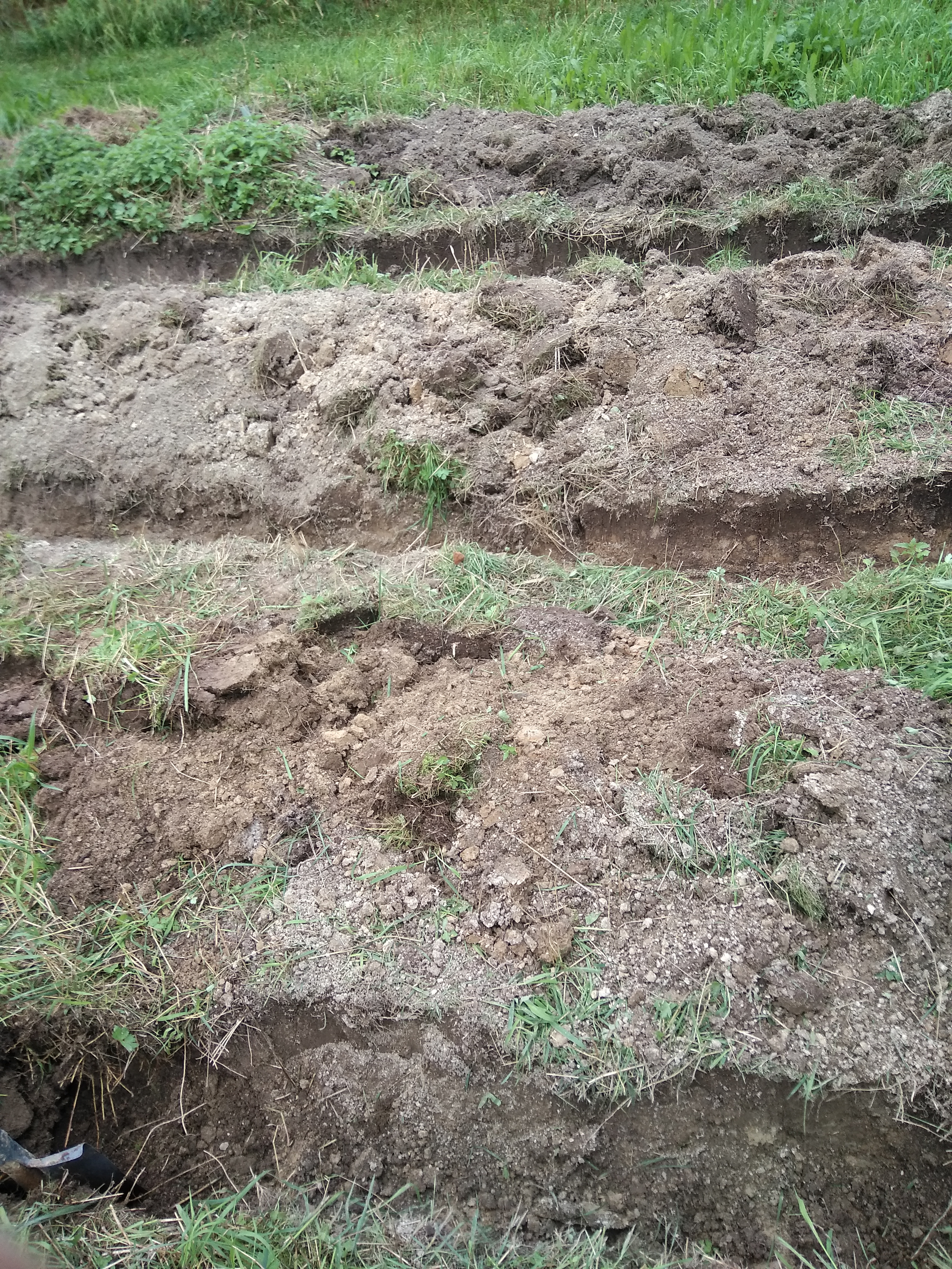 >>8177 >>8184 Когда начал перекапывать и очищать почву от твавы, корней, скидывая их в отдельный ряд, обнаружил, что у меня на участке почва неоднородная (на глубине около 40 см):