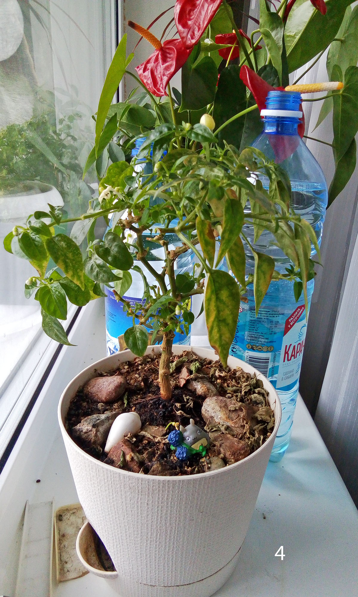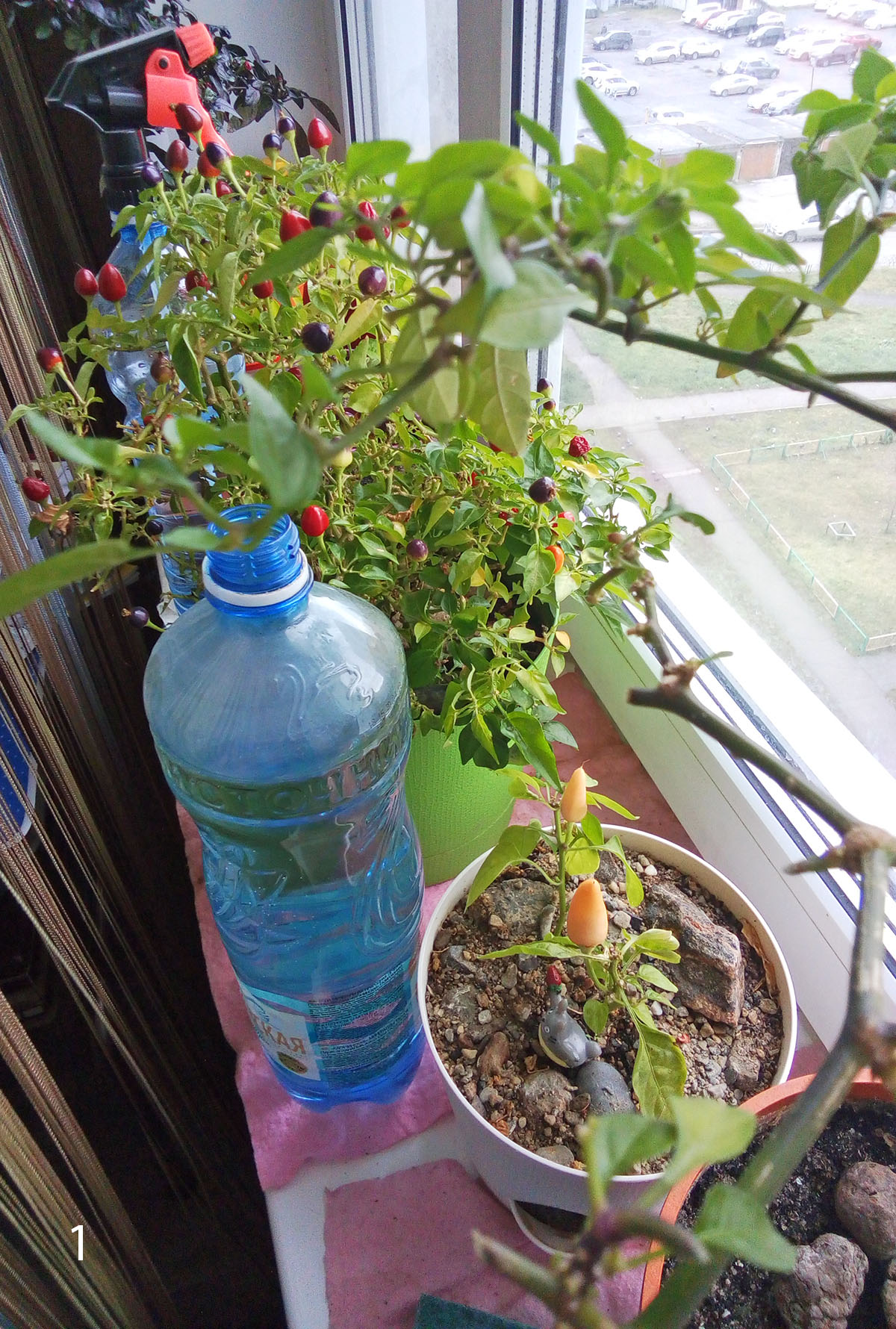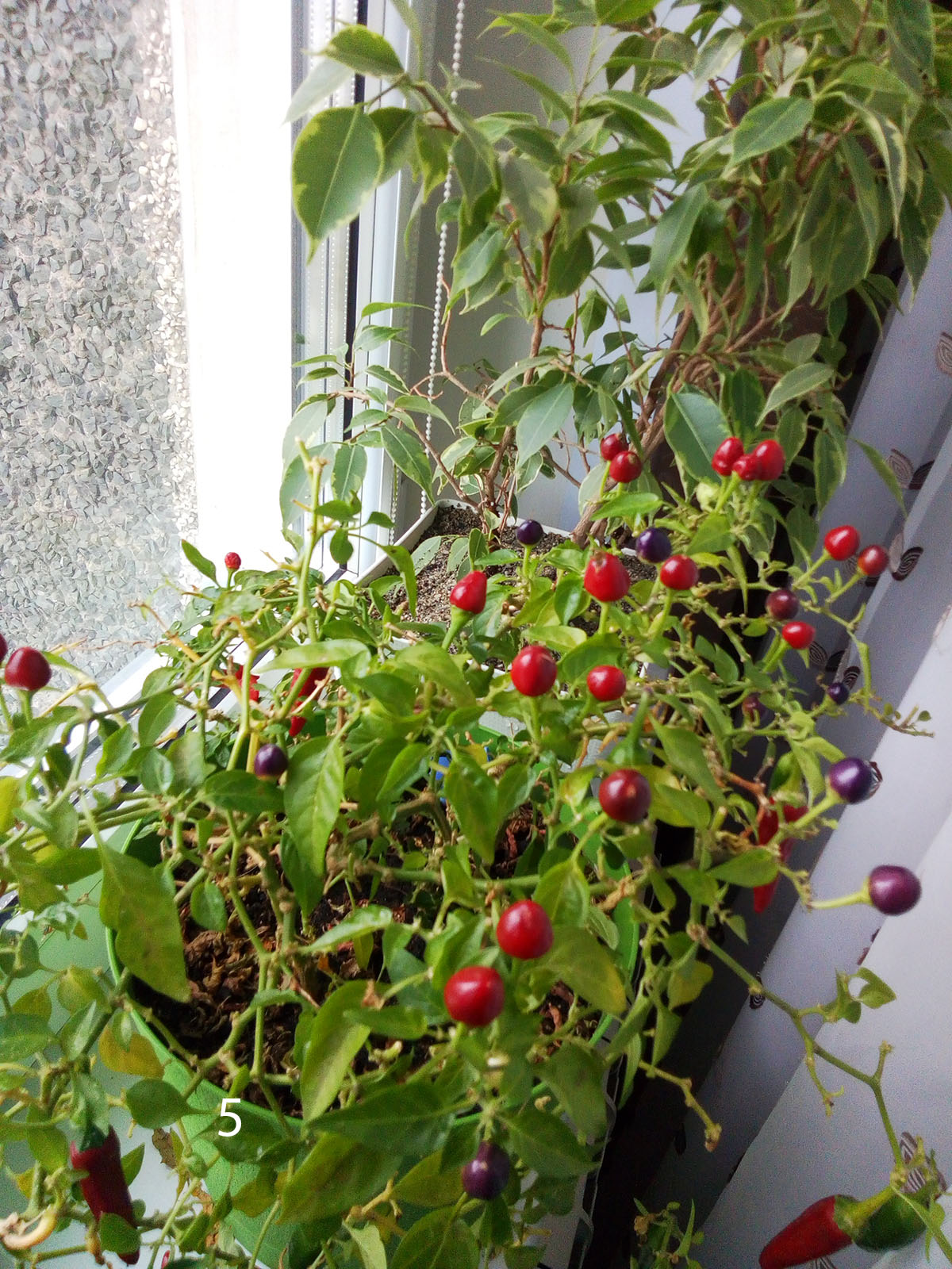 Сап перцеёбы! Готовлю своих к зимовке. Добавил в этом году пару сортов, один (который на камне был, изувеченный) - таки сдох. 1. На переднем плане Чензо - охуенный домашний неприхотливый перцан, с которого за весну-лето полкилограмма собрал плодов. Дальше "Салют", "Все небо в звездах". 2. "Черная жемчужина", "Пиковая дама" и "Хабанеро". "ЧЖ" достаточно бестолковая, плоды у нее, когда подсохнут, размером с черный перец становятся, но красивая зараза, поэтому пускай растет, буду формировать из нее раскидистый куст. У "Пиковой дамы" закрутил ствол на манер бонсая, к весне отправлю ее в большой горшок чтобы сформировала хорошие ветки. Сам перец не сильно острый, похож на "Все небо в звездах", но побольше и чуть-чуть послаще. С "Хабанерами" у меня беда, видимо света им не хватает, растут чахленькими кустиками, вытягиваются и облетают. 3. "Салют" - интересный перец желто-оранжевого цвета. Почему-то очень карланский вырос, может всю силу в плоды отдает. Пока что еще не пробовал. 4. Самый мой олдфаг. "Все небо в звездах", около 3-х лет ему. Превращается в деревце, но что-то ему не хватает. Видимо нужно пересадить в горшок побольше и обновить землю.