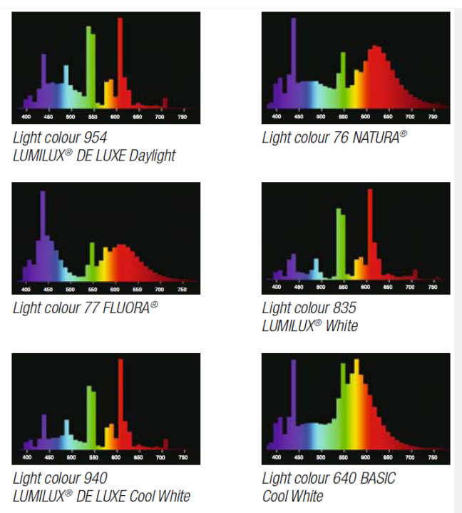 Ещё один момент - сине-красные лампы кажутся менее яркими для человеческого глаза по сравнению с белыми аналогичной мощности , т.к. наш глаз как раз жёлто-зелёную часть лучше воспринимает, пикрелейтед. Не всем хочется иметь в комнате грёбаный прожектор. Но даже тусклый чисто красно-синий свет многим не нравится, да и растения под ним выглядят строёмно, с чёрными листьями. Так что по-хорошему туда обычно надо добавлять немного желто-зелёного и получится приятный розовый свет, похожий кстати на свет осрам флуоры.