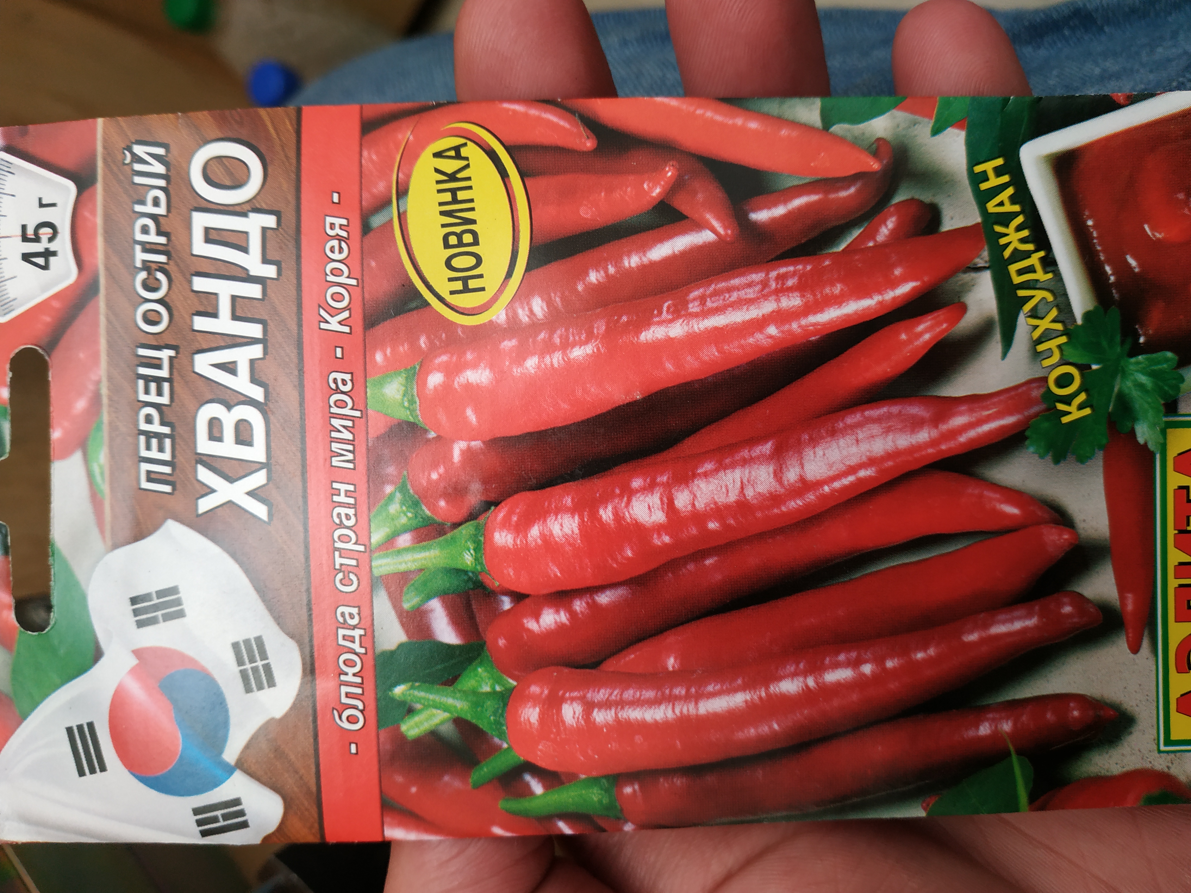 Сап, перцаны. Я >>7348 - кун. Сегодня купил в магазине семена халапеньо буду выращивать :3 И ещё продавец посоветовал вот такой перчик "Хвандо". Говорит, слегка острый, но вкусный. Что это может быть за сорт?