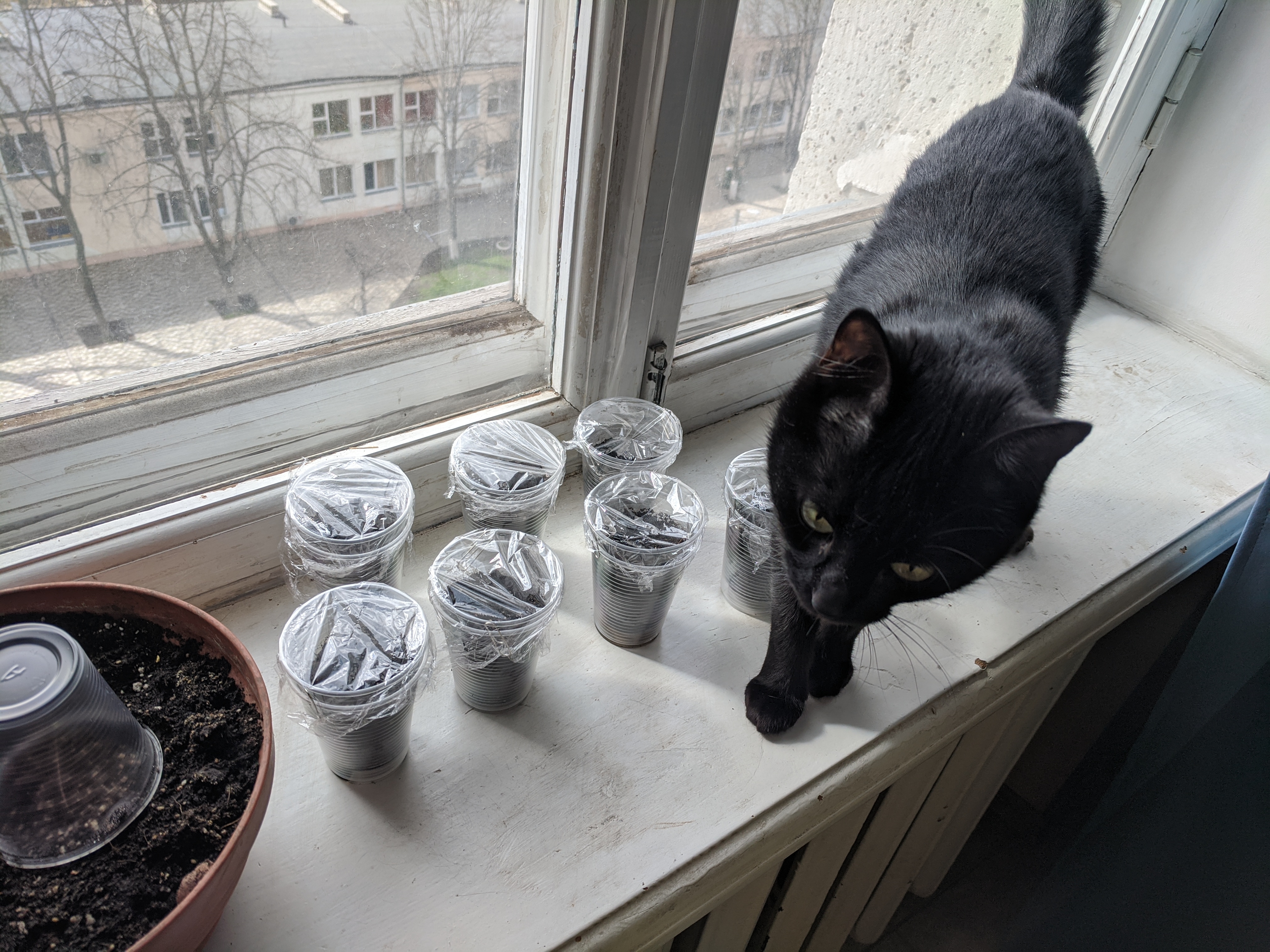Сегодня ничего не произошло. Поставил стакан с водой в бокс с рассадой, чтобы влажность повысить. Вечером куплю увлажнитель воздуха. Надоело уже утром с пересохшим ртом просыпаться и каменными соплями, а ещё руки сушатся и чешутся вполне возможно, что из-за низкой влажности. Ну и растениям с кошкой будет лучше. Ну и статика ебаная замучала уже.