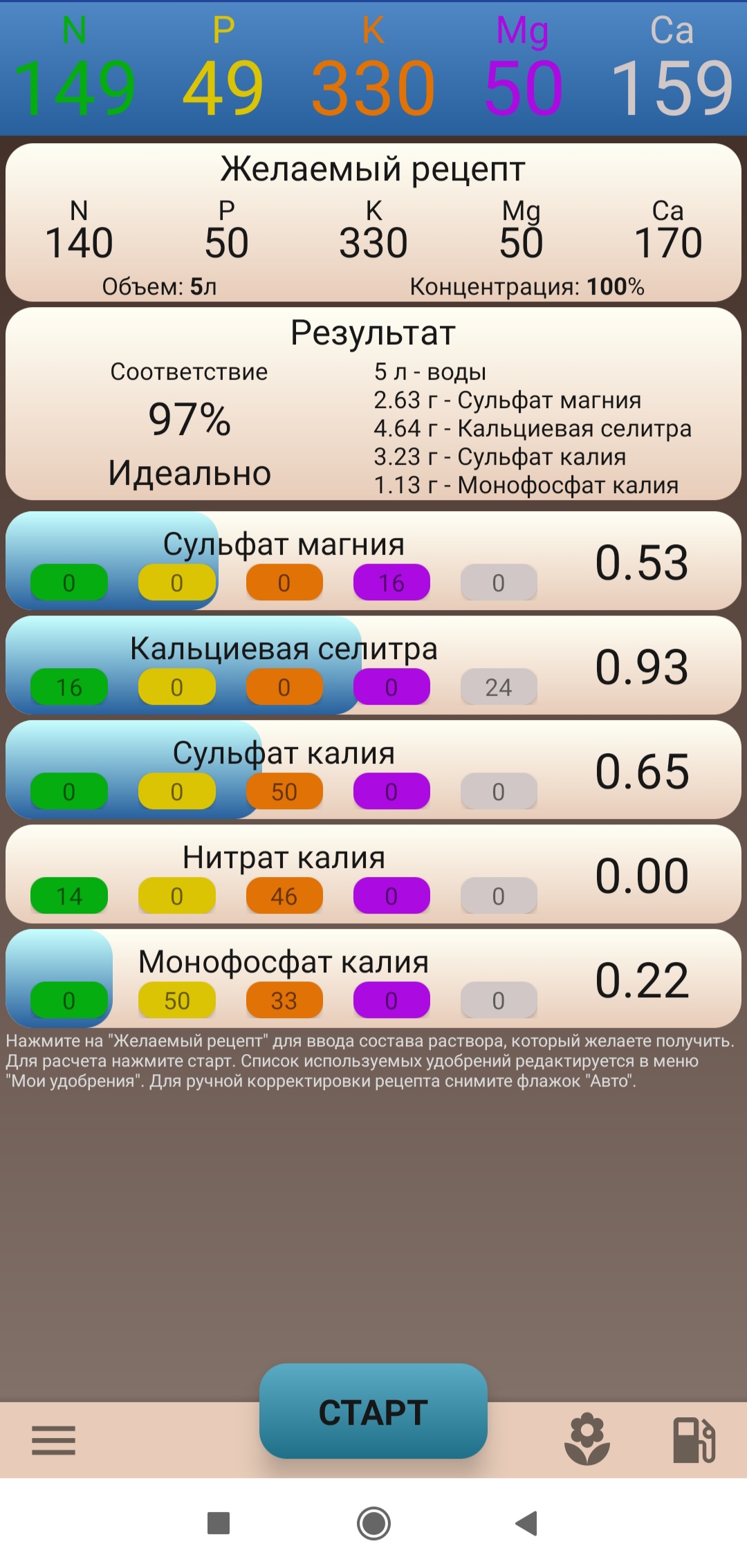 >>7476 Сам мешаю, сначала мешал на комплексном удобрении с добавками, недавно перешёл на чистые соли, пока это нравится больше, ph стабильнее и не ползет
