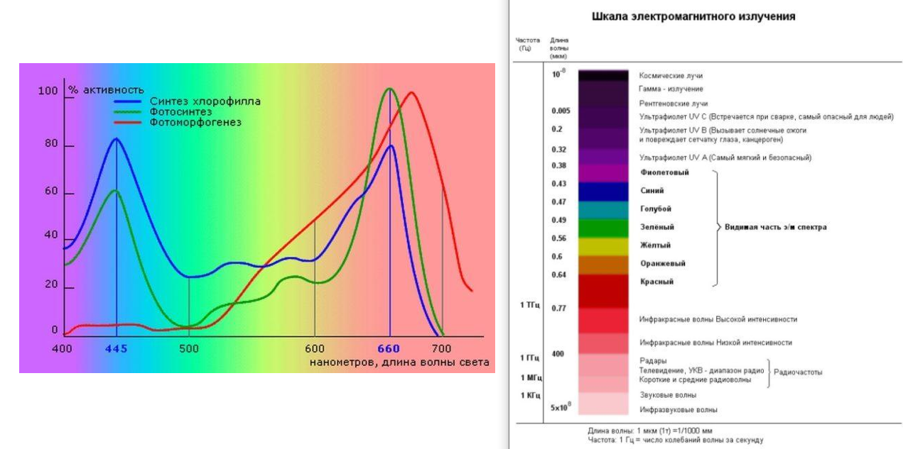 >Или фотолампы лучше,потому что они ФИТО Чисто теоретически правильные сине-красные (440нм+660нм) более энергоэффективные, т.е. на ватт сожранного электричества они произведут больше усваиваемого растениями света(но это чистая теория, т.к. разные растения на разных этапах нуждаются в разных участках спектра, а вот эти вот знаменитые графики с пиками на 440 и 660 получали на водорослях), а обычная белая светодиодка нагенерит тебе кучу жёлто-зелёного, который не особенно то и нужен в таком количестве.