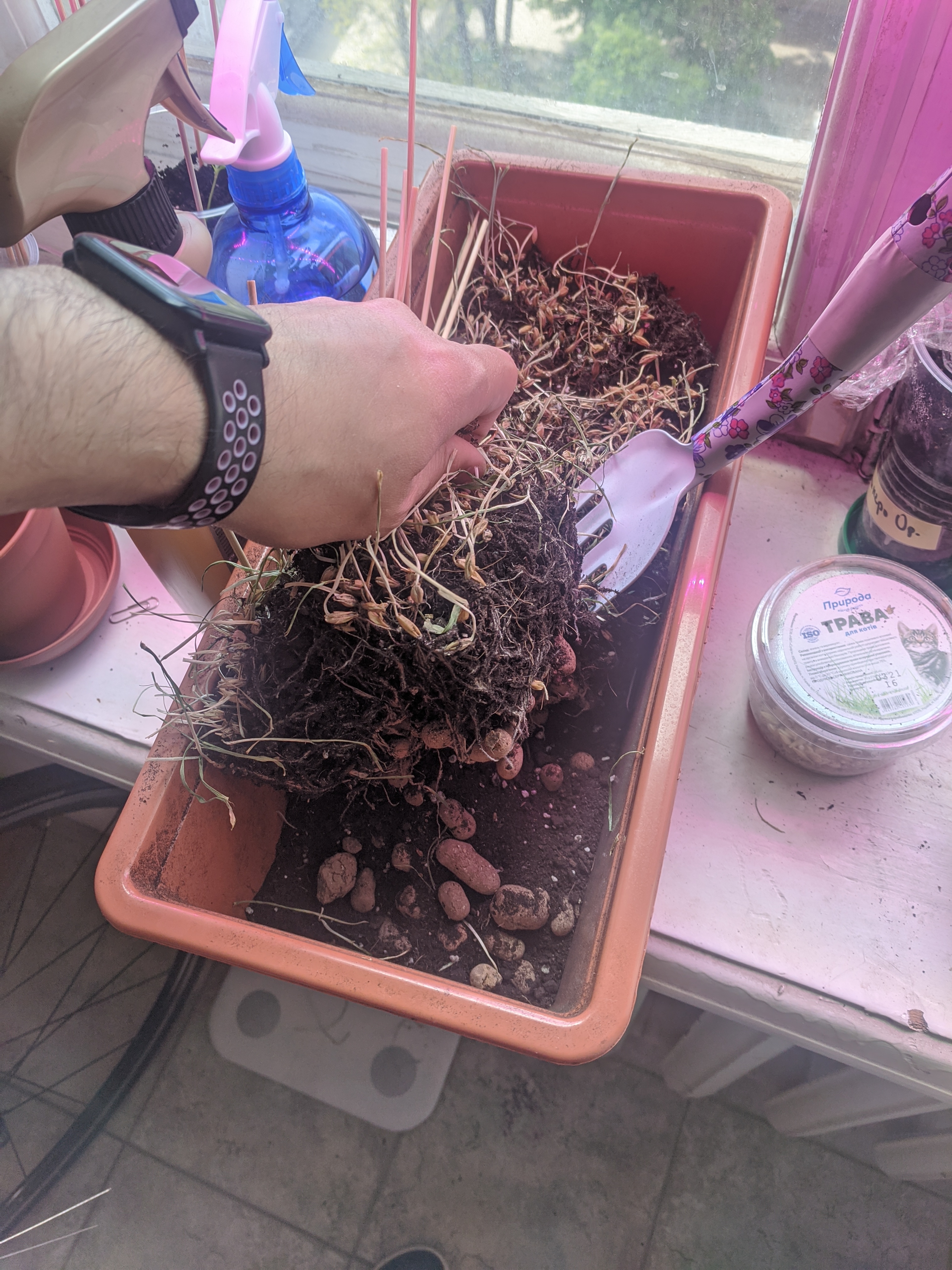 Теперь вопрос, косвенно по теме — тред самый активный на доске. Чтобы кошке было чем себя развлечь кроме моих перуев, высаживал ей ячмень в вазон. Ячмень вроде как был с вермикулитом, но я его просто в землю засунул после того, как подержал в воде пару часов. Взошёл просто отлично, кошка довольна, я доволен. Но теперь он отцвёл, пожух и пукнув обмяк. Надо высадить новый, но старый буквально сковал грунт корнями. Что делать теперь? Выкидывать этот грунт? Жалко как-то. Высаживать прямо туда? Вырывать корни? Пока попробую по инструкции прямо в упаковке без почвы прорастить, но всё равно хочу этот вазон для кошкиной травы выделить.