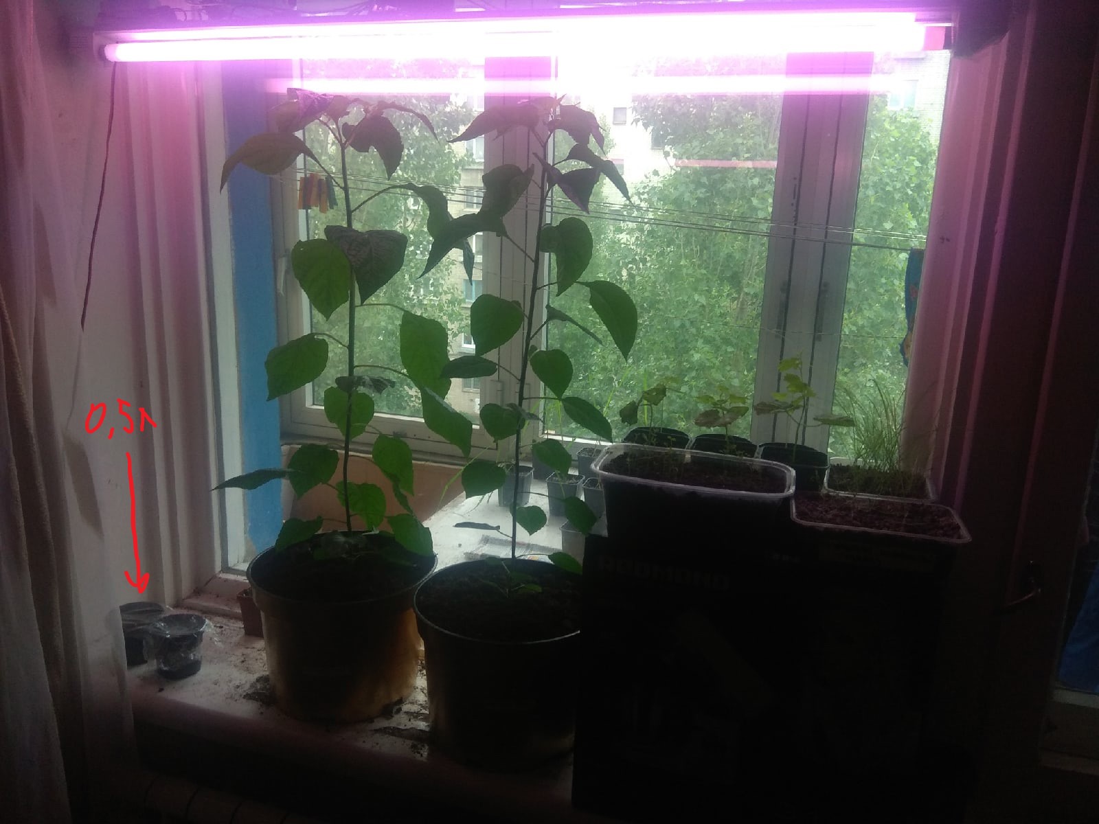 Ну что за бред, где ты это прочитал вообще? 0.5л горшочек обозначил для масштаба. Как видишь, отлично всё растёт, лол. Там впереди балкон метровой ширины и 3 стекла, так что свет не доход