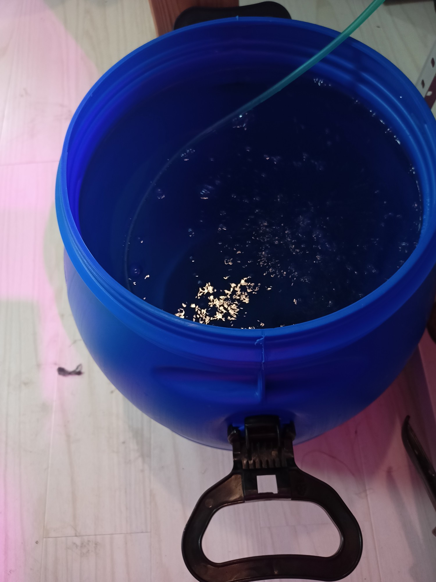 Ай сука вообще всё сломал. В трубах скапливалась какая-то дрисня, похожая на вату, осадок видимо выпадает. Я подумал, что неплохо бы увеличить скорость потока, а для этого поднял напряжение насоса с 5в до 12в. И чуть не устроил потоп, потому что насос качает быстрее, чем вода может вытекать, притом что приточная и сточные трубки одинакового диаметра. Че делать хуй знает, придется вернуть 5в, а завтра искать толстый шланг для слива.