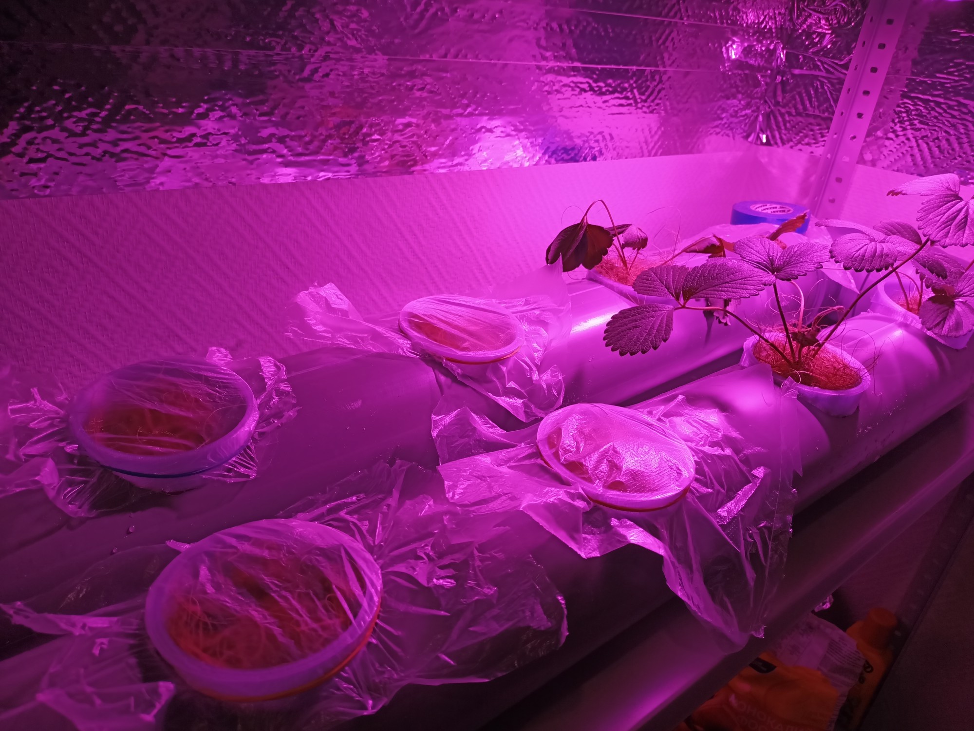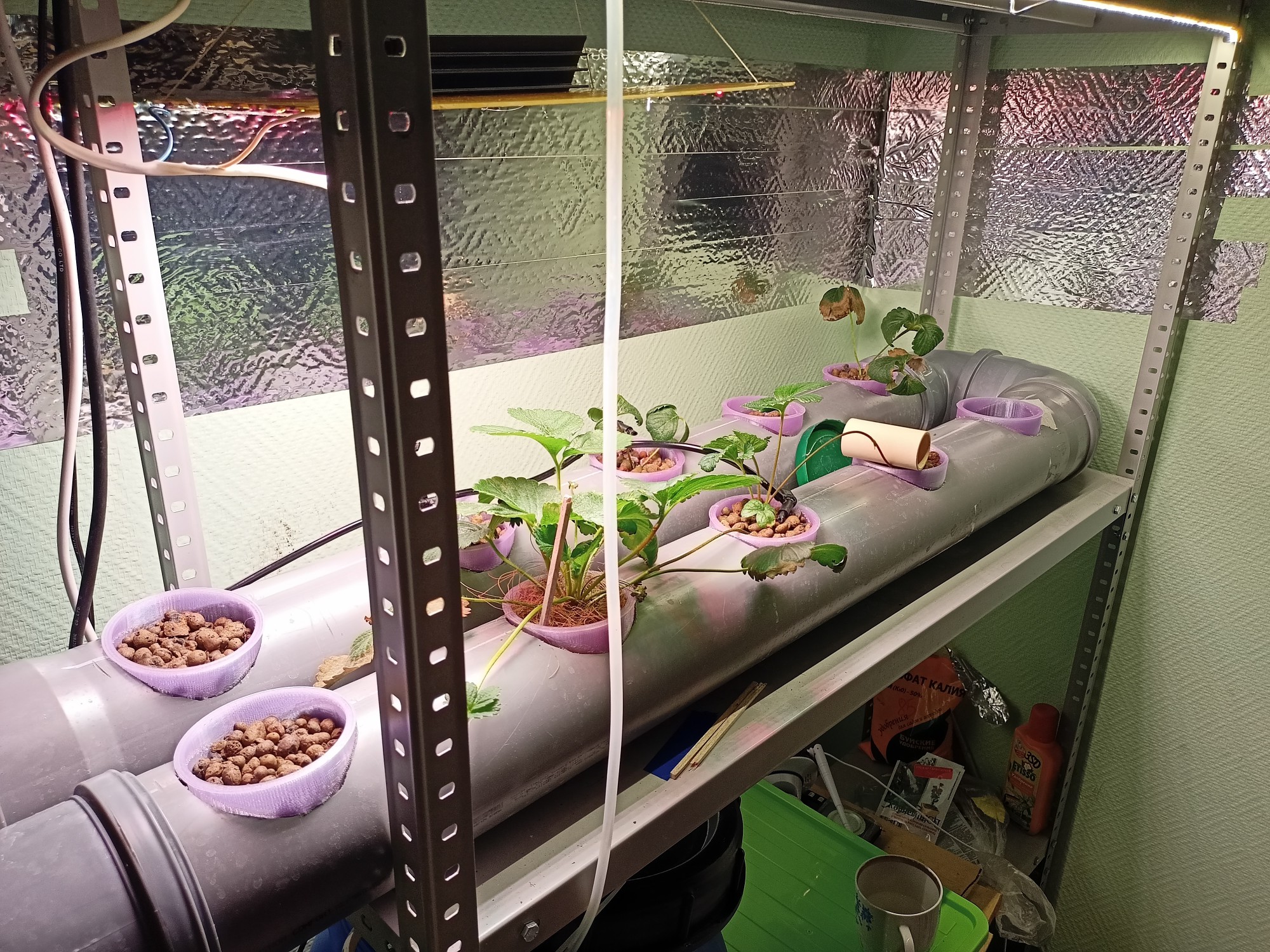 Наконец пришли измерители пш и ес с Алика. Вычистил всю систему с хлоркой. Горшки замочил в перекиси на 3 часа и промыл водой. Отмыл корни от говна и посадил заново, подсыпав перлита чтобы влага от полива хоть как-то держалась. Алсо заметил у одного растения отросли где-то на 5мм новые корни. Уныло конечно, что за 2 недели только на 5мм. Кроме того достал семена из холодильника и высадил. Хуй знает взойдет ченибудь или нет. Завтра-послезавтра придут остальные светодиоды.