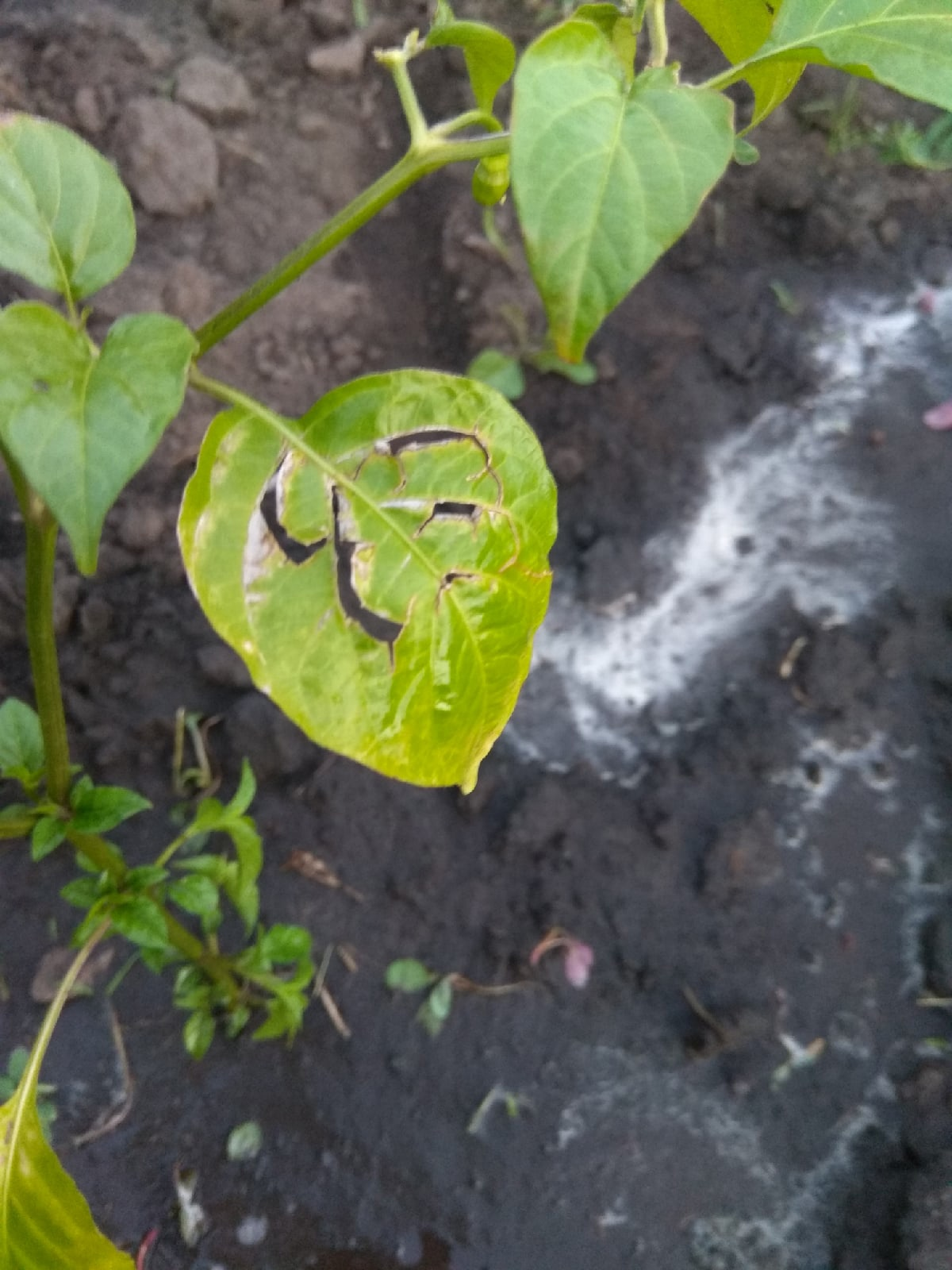 Ещё 2 или 3 куста кто-то ещё давно пытался пожрать, об этом я уже писал. Вроде, другие кусты никто не трогал, поэтому, я пока никаких мер не предпринимал. А ещё, на некоторых кустах листья надорвались (пик 4 как пример) Как думаете, как это могло произойти вообще? Чисто от ветра могло? Он был лютейший несколько раз, поэтому, почти все перцы прям голые стоят, с них все листья снизу поотрывало :(