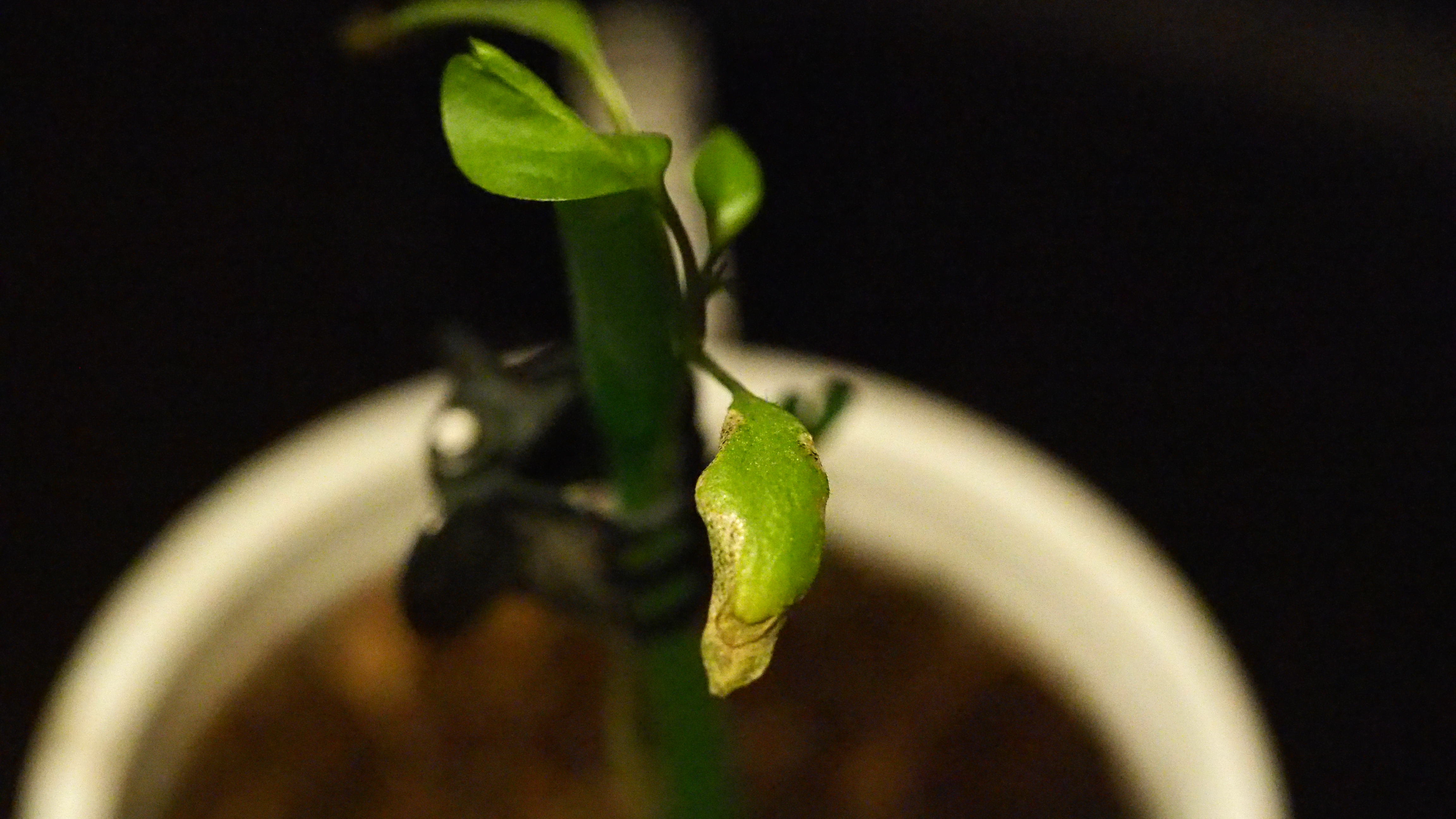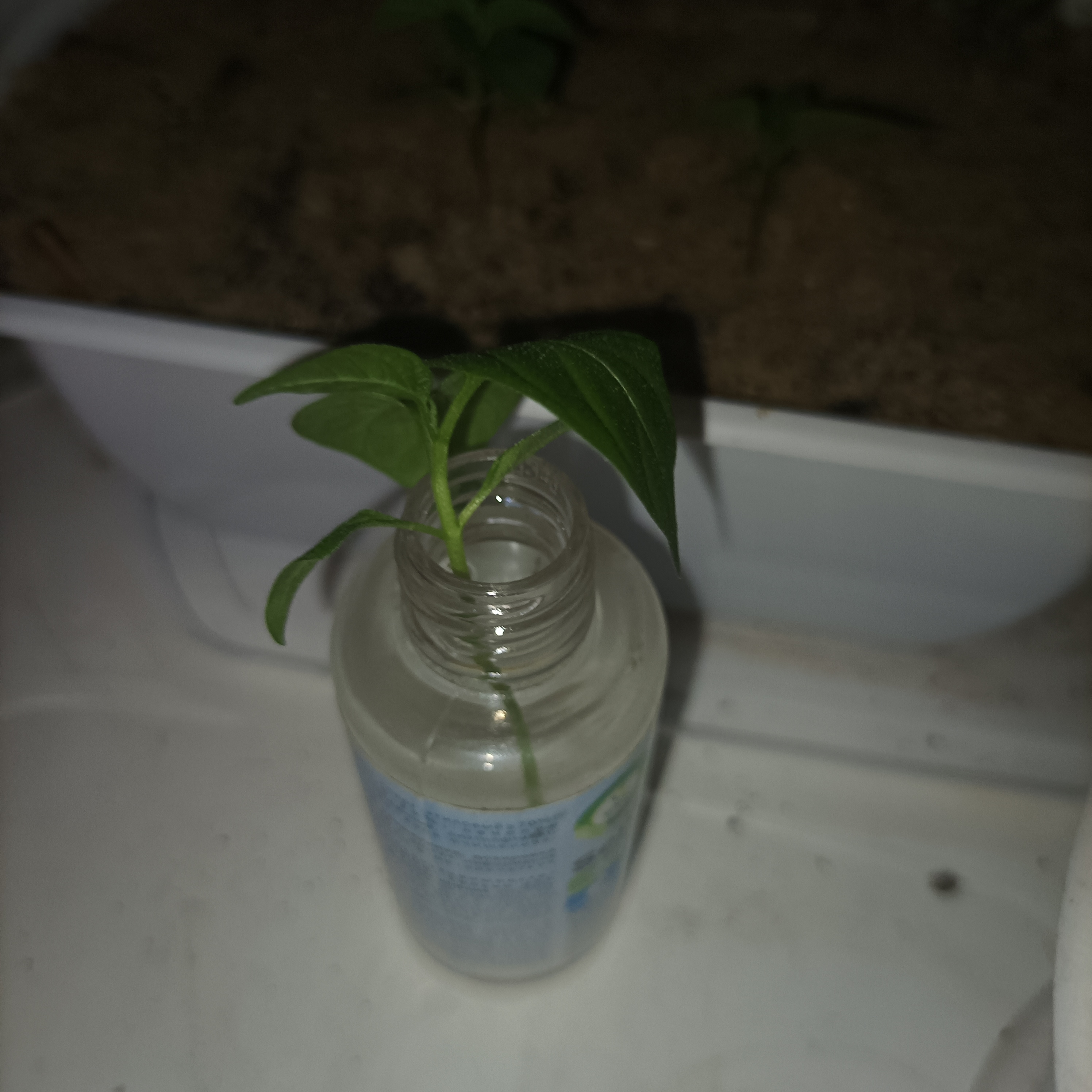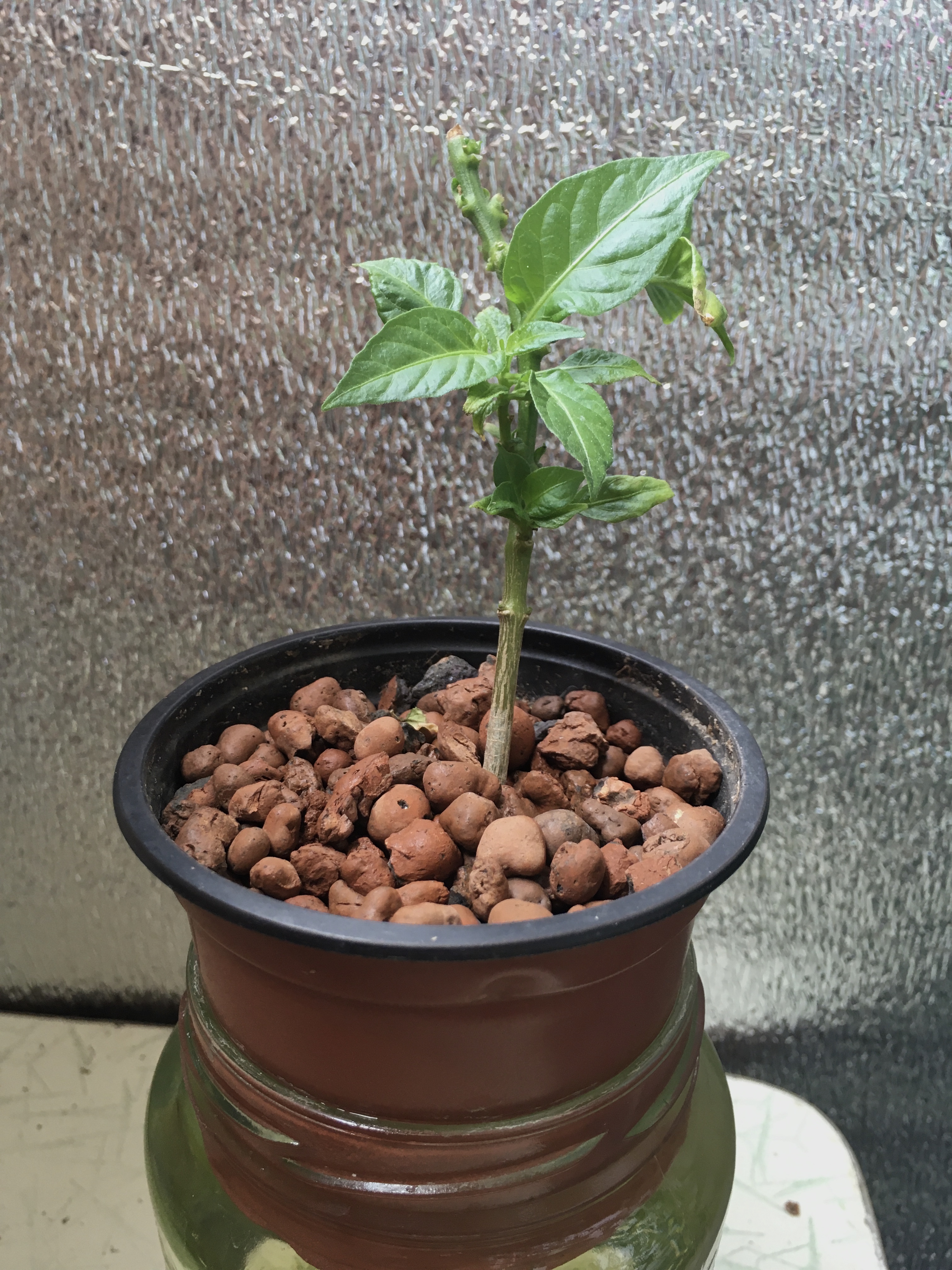 Всё таки эта зараза перетянула поступление веществ с корешка и перец начал увядать, утром уже заметил, что стебель ещё уже стал, но решил подождать пока начнут листья падать. Отрезал выше поражения и захуячил в воду с удобрениями 151515. Какова вероятность, что этот пидор даст корни?