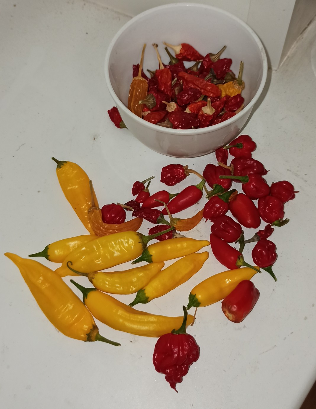 >>8406 >+ практически вечная В этом и прикол. Я в прошлом сезоне сажал халапеньо, хотел намариновать, меня намахали с семенами, и у меня выросло 20 кустов хер пойми чего, но крайне острого, по вкусовым качествам чисто хабанеро, то форма другая совсем. Как раз подумывал несколько раз о том, чтоб сделать пост и спросить, что это такое у местных экспертов, но забил. Семена брал пикрелейтед. Перцы не толстостенные, как халапеньо, стенка где-то 1.5мм у них. Я рассаду и для хабанеро делал тогда, они рядом стояли, но это же полный бред, даже если бы они там переопылились, то результат отразился бы лишь на детях, а не на этом поколении. В общем, да, теперь у меня тоже есть банка бесконечного сушеного перца, и я хз, за сколько лет вообще у меня это всё уйдёт.