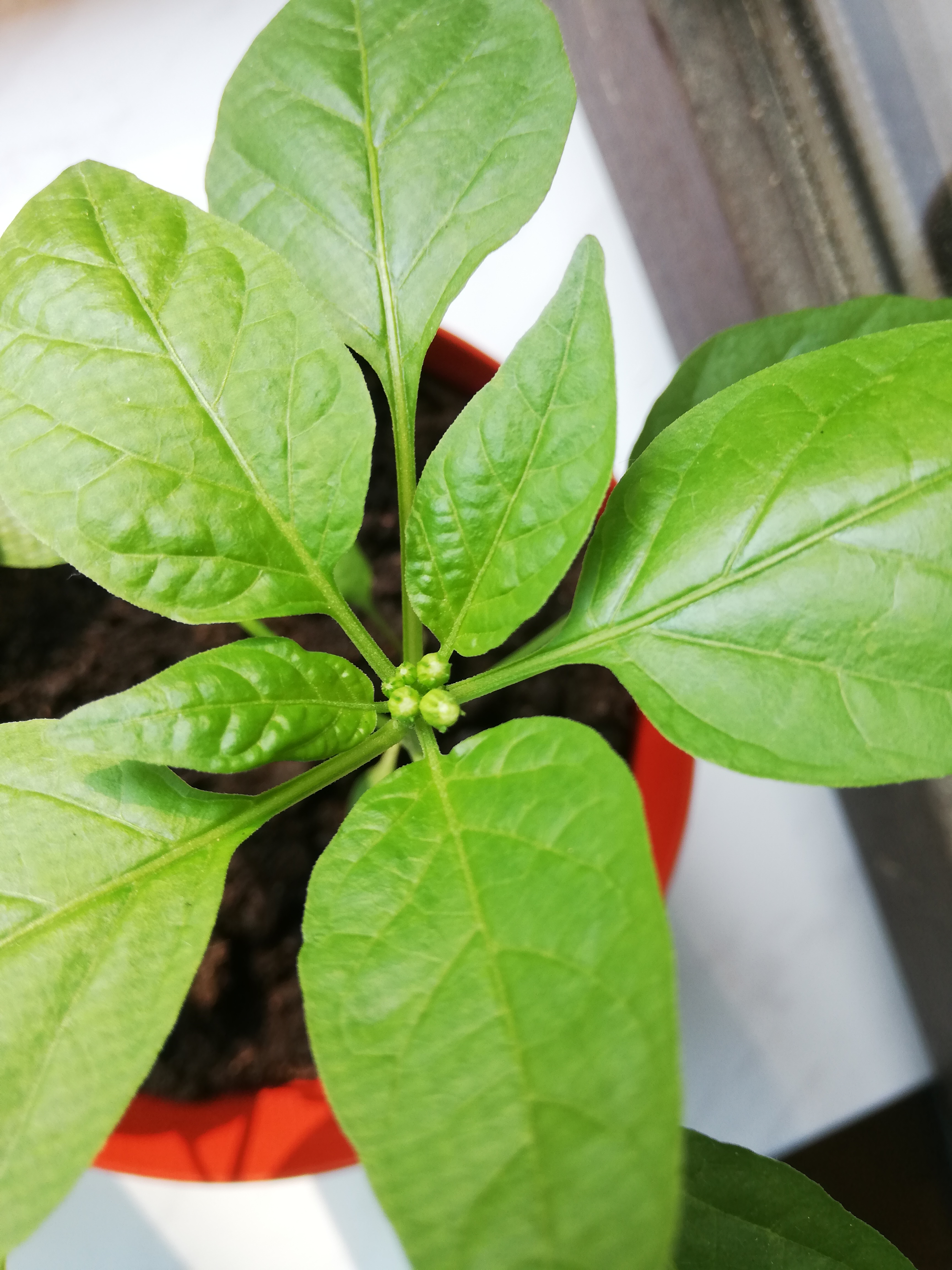 А у моего хабанеро рэд появились какие-то бутоны, надеюсь на фото видно, есть подозрение, что он собрался впервые плодоносить или как там это правильно называется. Подскажите, что делать дальше. Я просто помню, когда я его сажал и тут спрашивал советов мудрых, что-то говорили про подкормку, когда перчики завяжутся.