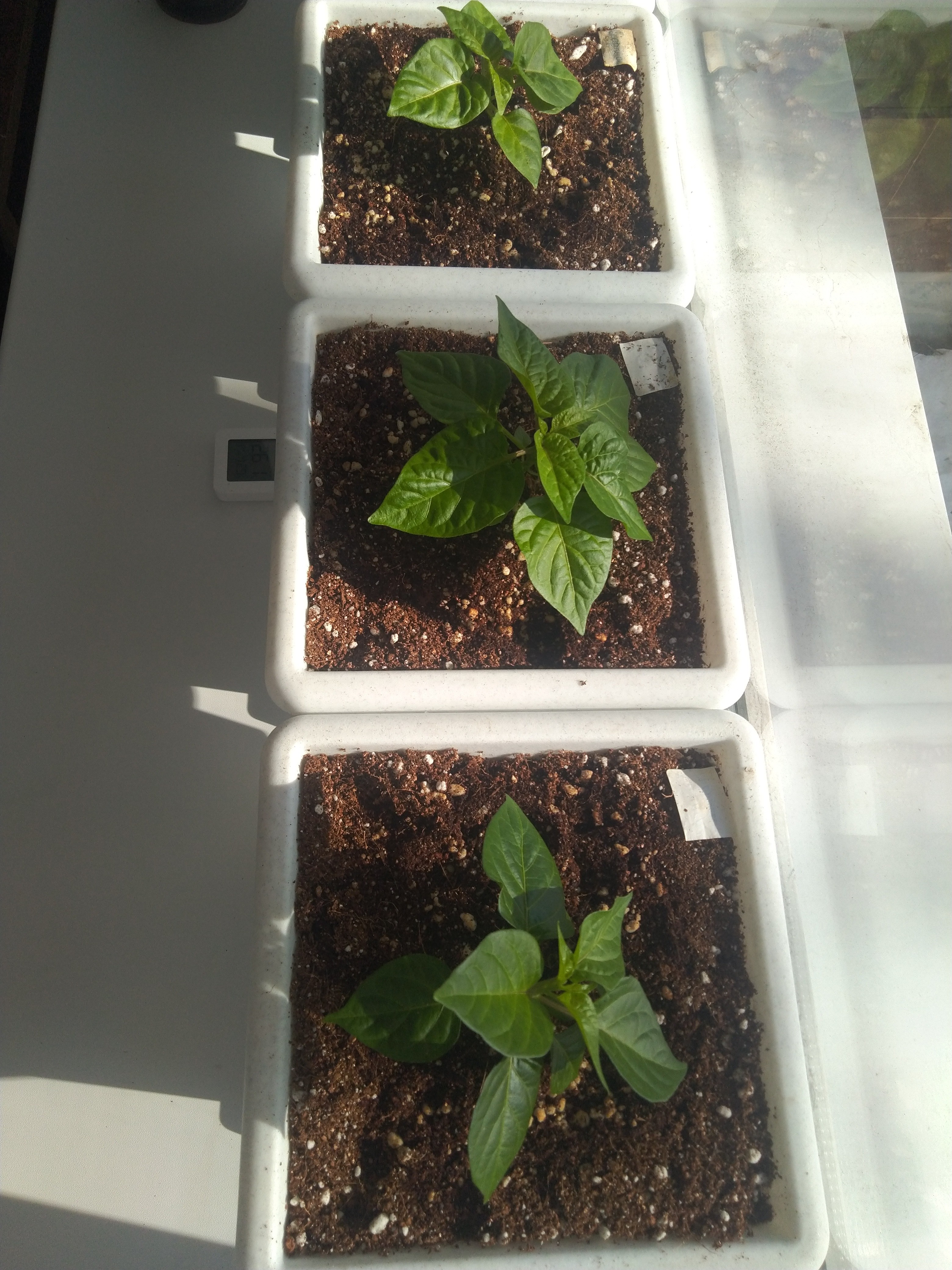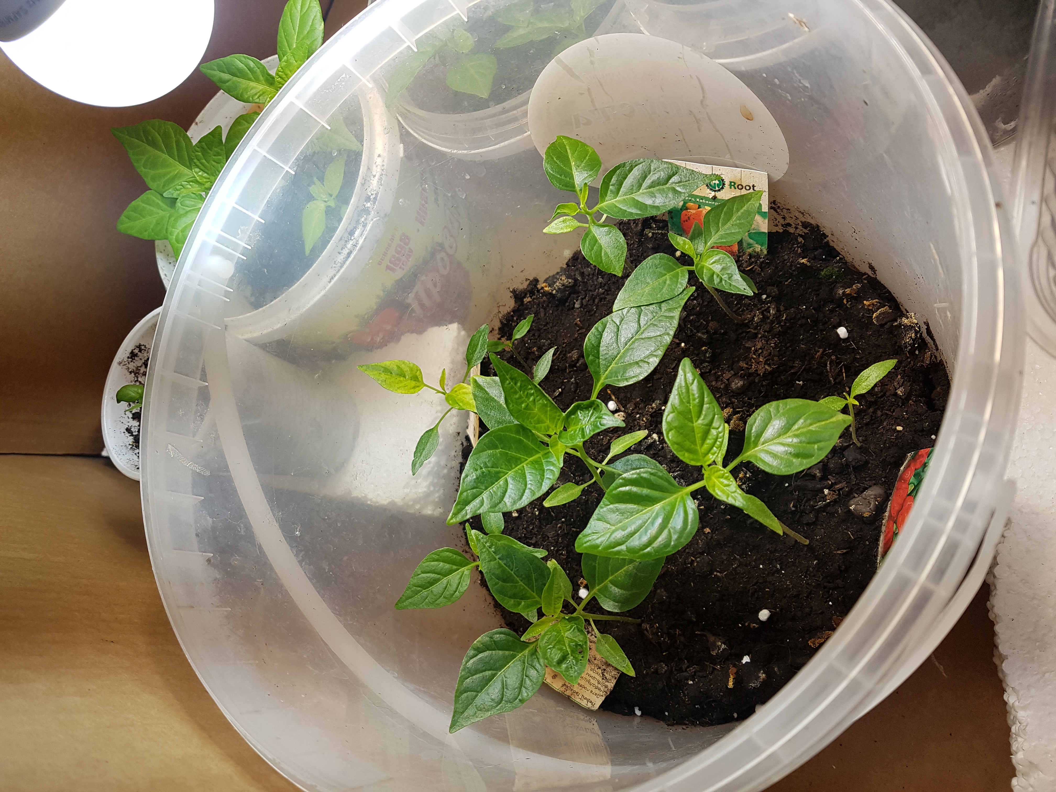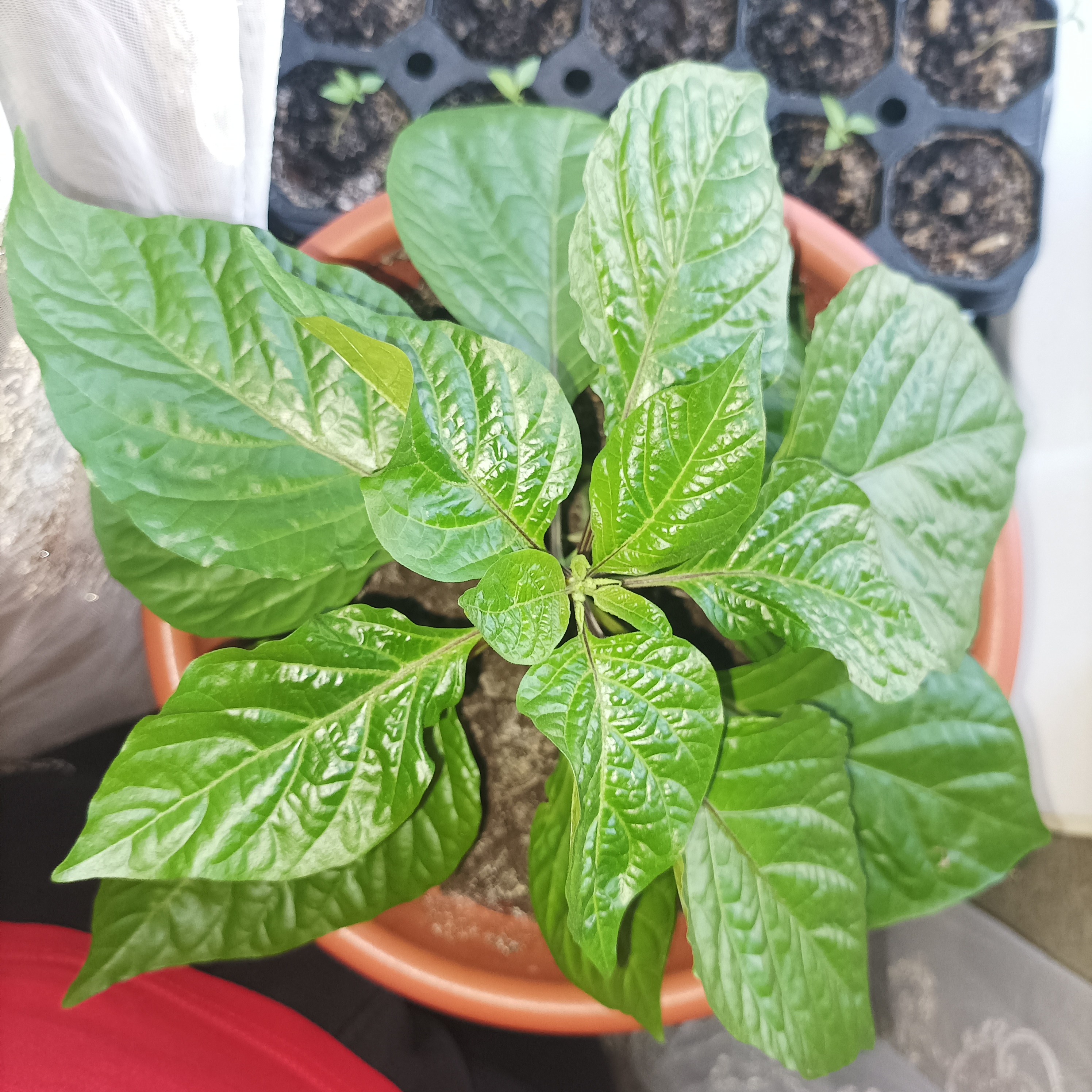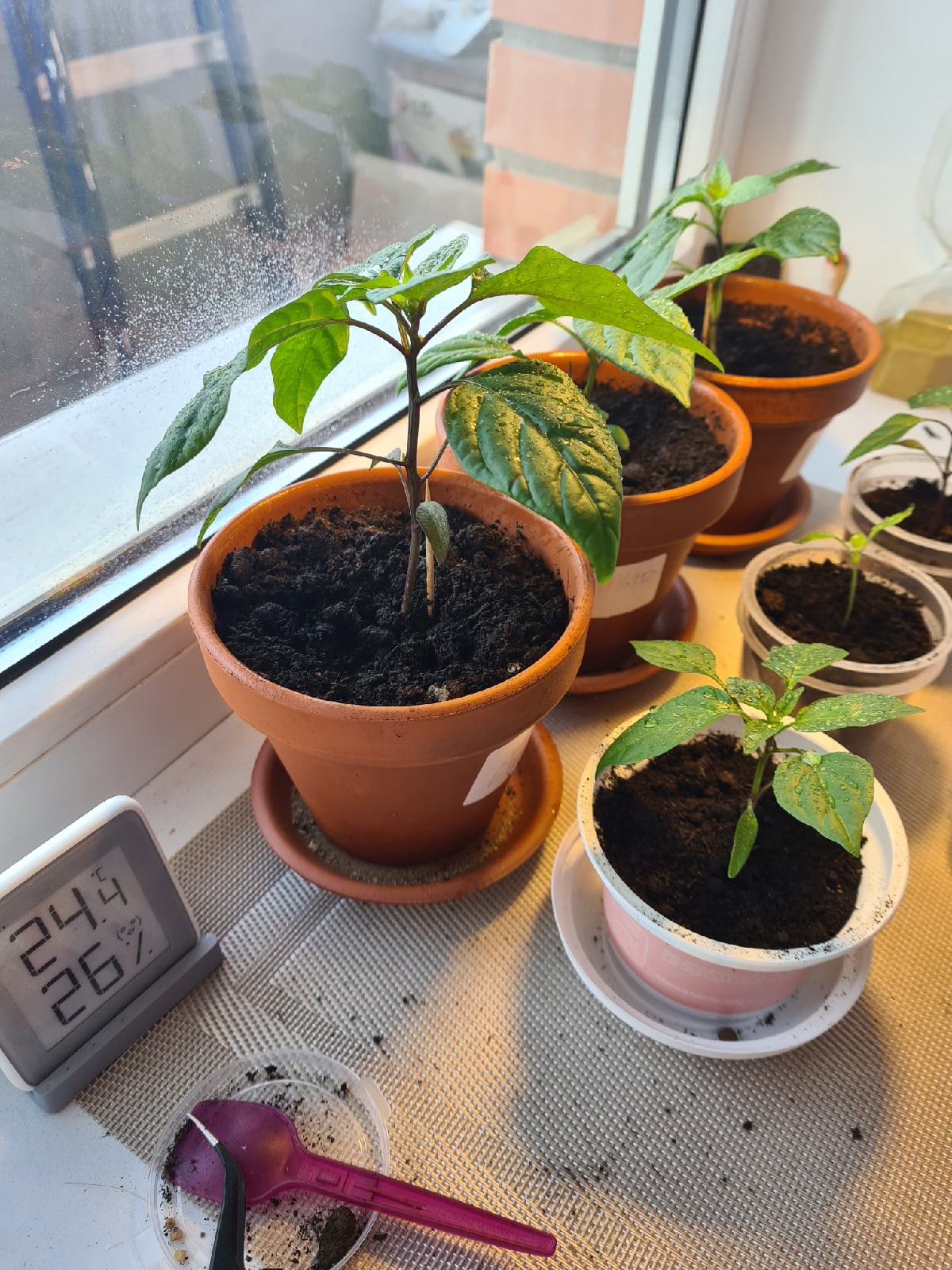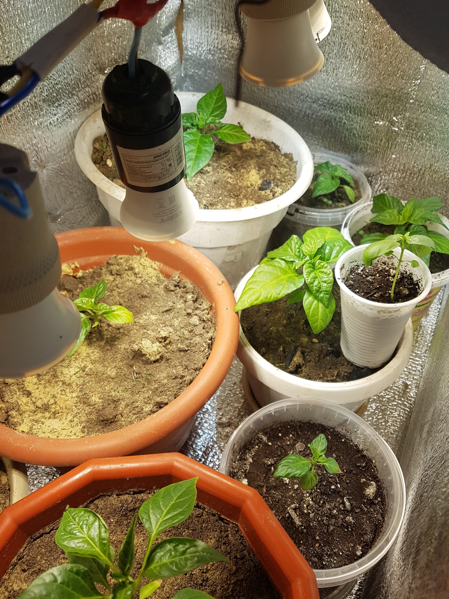 есть 4 пиздюка на 3-4 листа: 2 brown egg, 2 каких-то кайенских или что-то типа пири-пири, которые достал из перца который приехал мне с бургером из доставки и очень понравился по остроте еще 4 посадил недавно: хабанеро оранж из перца, хабанеро мастард из магазина и два болгарских для тянки, которая не любит острое. мастард взошел, скоро будет первый настоящий лист, остальные я походу перелил и семки сгнили, посадил новые пару дней назад