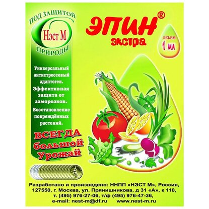 Эпин - экстра - препарат системного действия, содержащий высокоочищенный 24-эпибрассинолид, синтезированный по специальной технологии. Срок действия раствора - 10-12 дней.