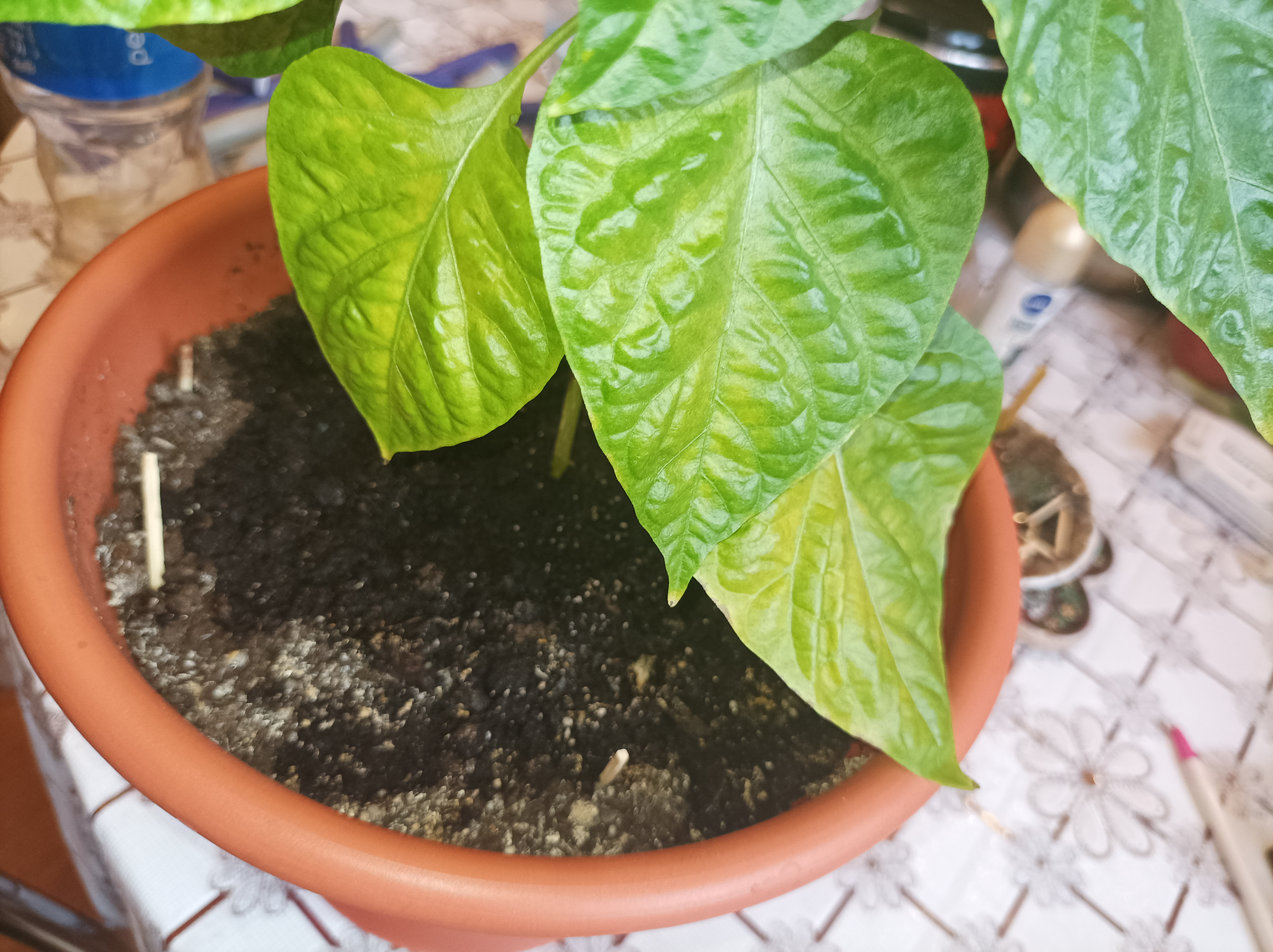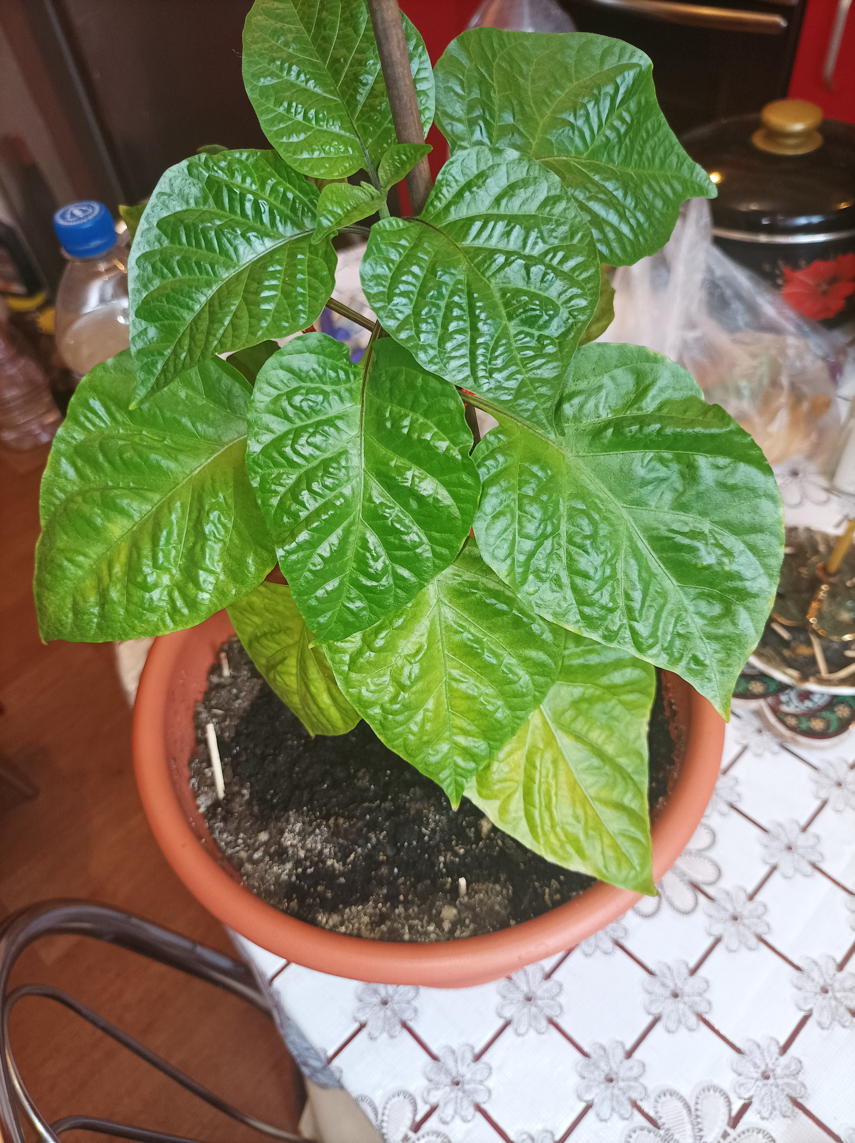 Сап аноны, я полный ньюфаг в растениеводстве, пришел за советами мудрыми. Друган увлекся перцами, посадил слишком много, приволок мне пиздюка с 4 настоящими листьями обычного чили из семян прямо из магазинного перца. Я ебанул его в какой-то горшок на 3л, который от мамки достался, купил рандомного грунта из ближайшего супермаркета, поставил на подоконник и просто поливал его. И чето так мне понравилось как он растет, что я прямо проникся.