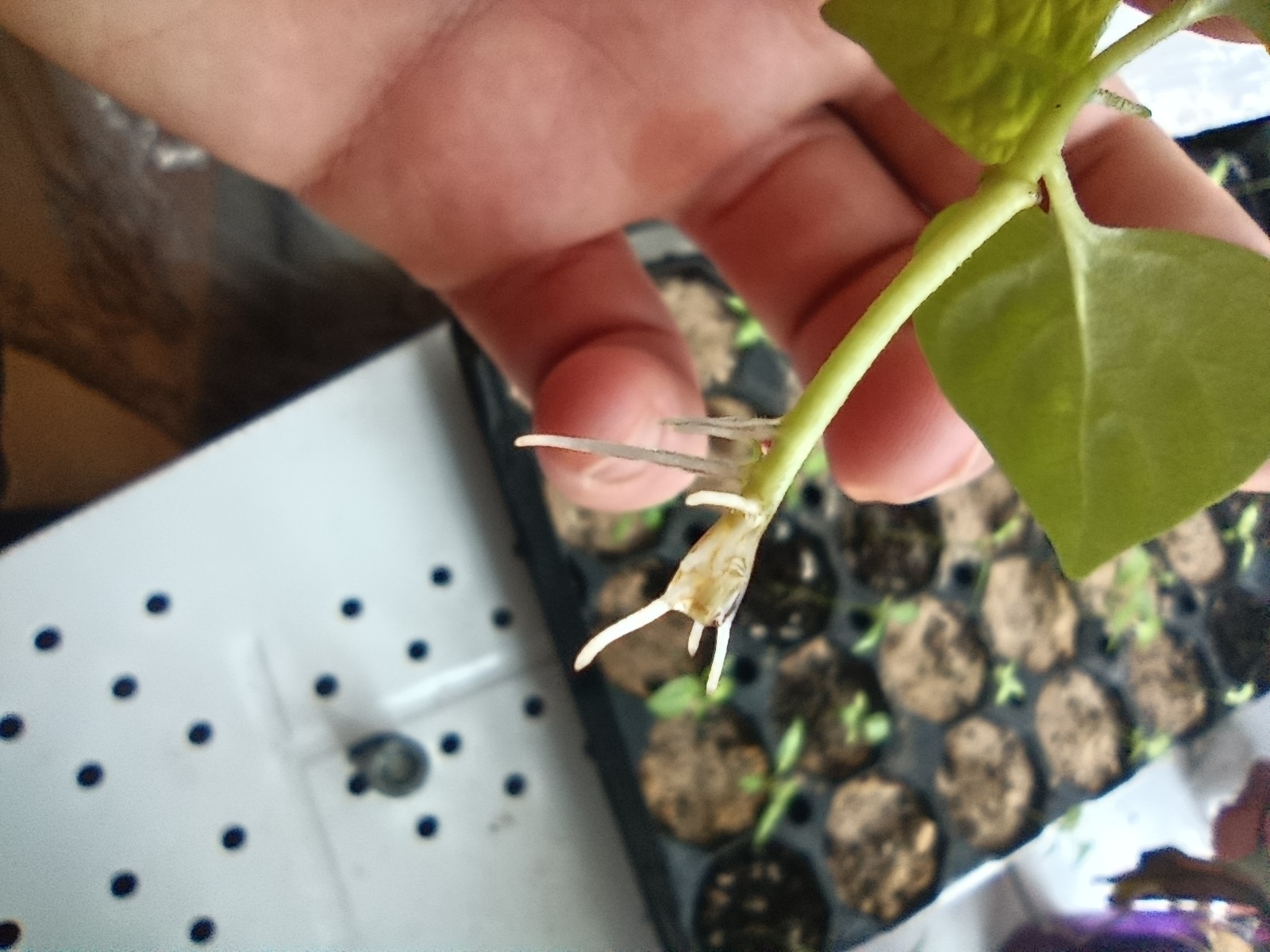 Закинул в общем этот обрезок в воду на пару часов полежать, он снова стал упругим и засунул снова стоять пытаться отращивать корни. Хз, может это все знают, но я так росток хабанеро спас, он почему-то начал загибаться и даже после поливов не хотел стоять, я его на пару часов закинул в воду, часов на 5, наверное, а потом обратно в землю всунул и он щас принялся и растёт.