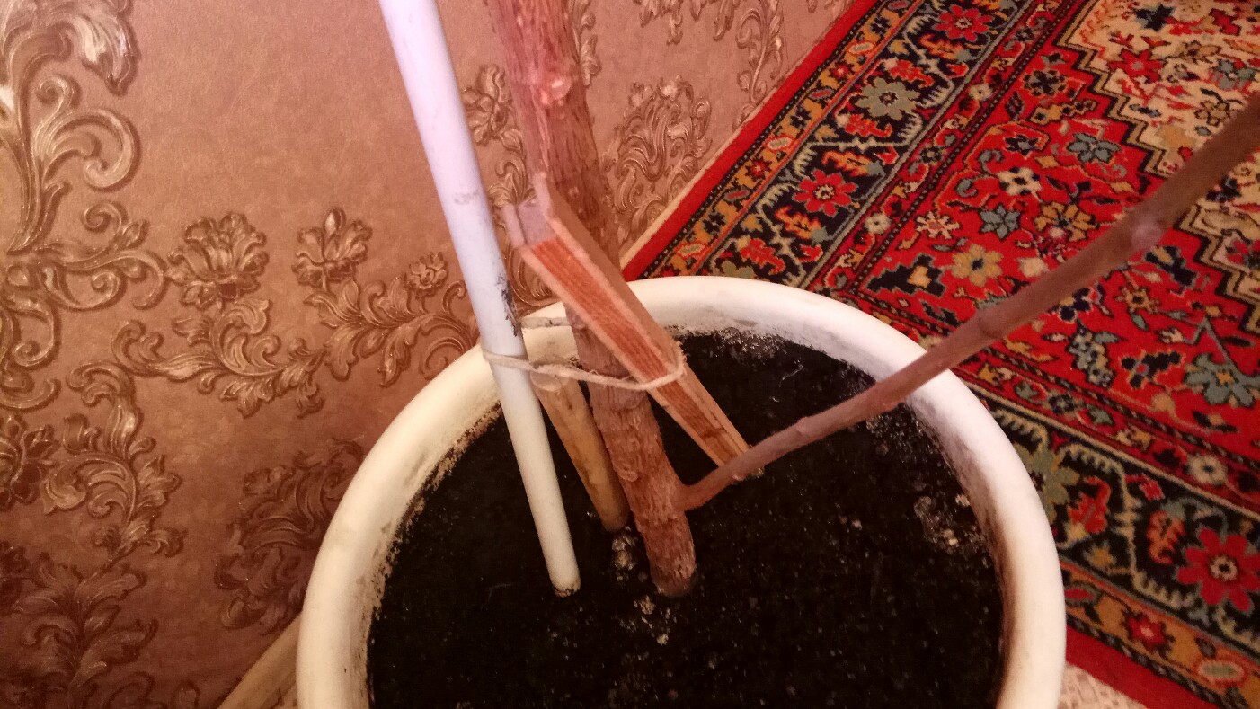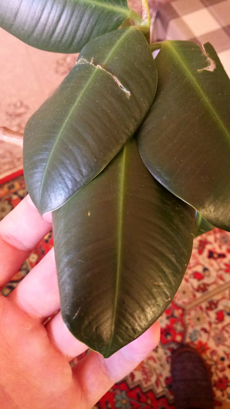 Цветок с древообразным стволом, обладающий тёмно-зелеными широкими и плоскими листьями теряет их. Они просто падают, как будто их кто-то отрезает ножом для бумаги. Эта ситуация возможна как реакция цветка на тьму или холод, или кто-то рили отрезает их ножом?