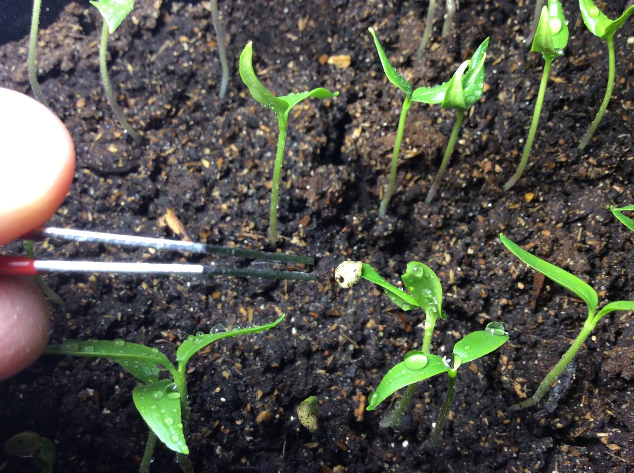 Вчера снимал семенные оболочки с перца и понял, что немного затянул с этим делом - у некоторых ростков семядоли остались недоразвитыми. Надеюсь, их хватит чтобы выпустить настоящие листья. В общей сложности у меня получилось порядка 80 корней разных перцев. Как думаете, хорошо ли перцы переносят мульчирование, скажем, скошенной триммером травой? Или получится слишком влажно для них? вопрос продублирую в перцетреде пожалуй