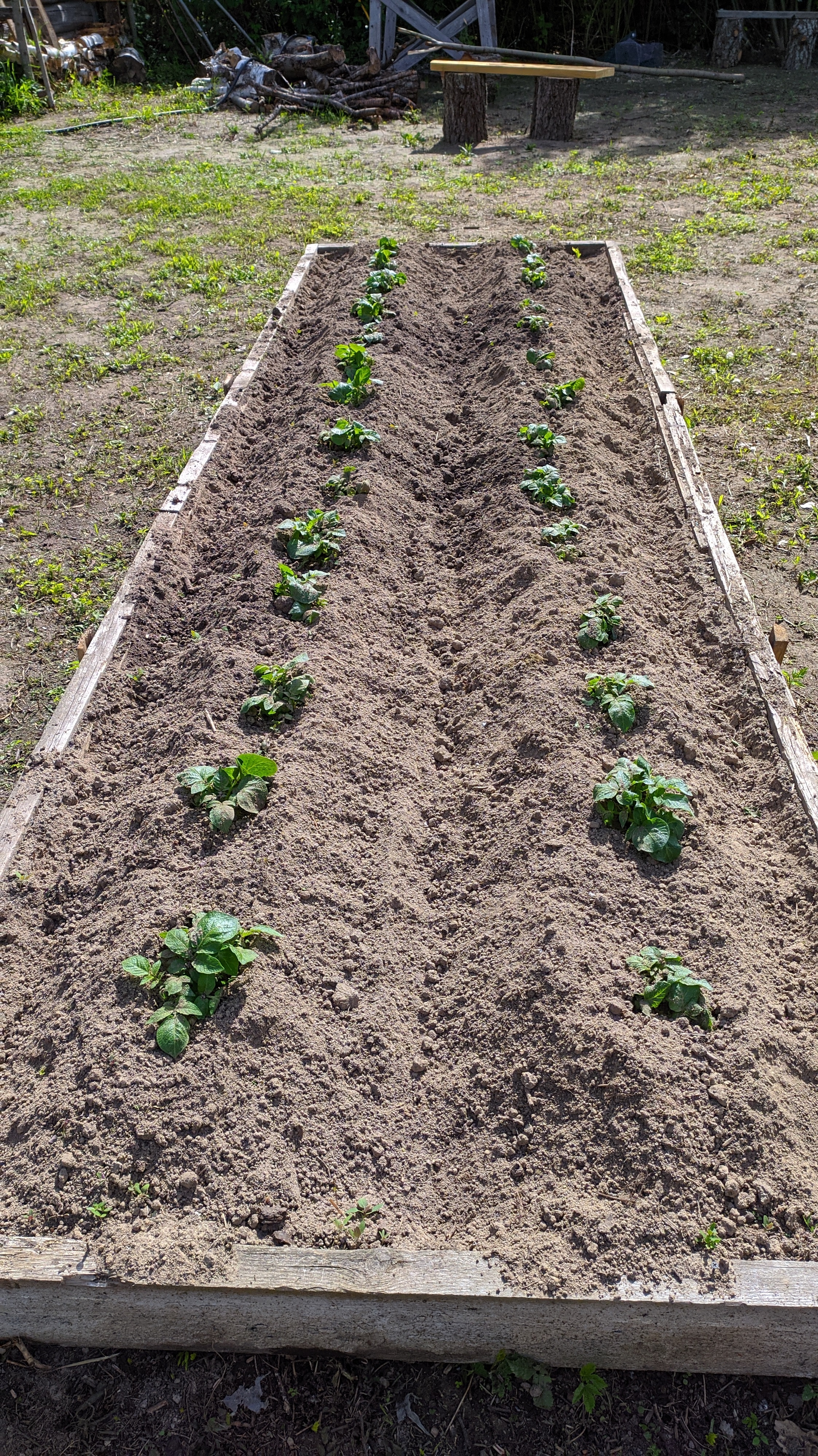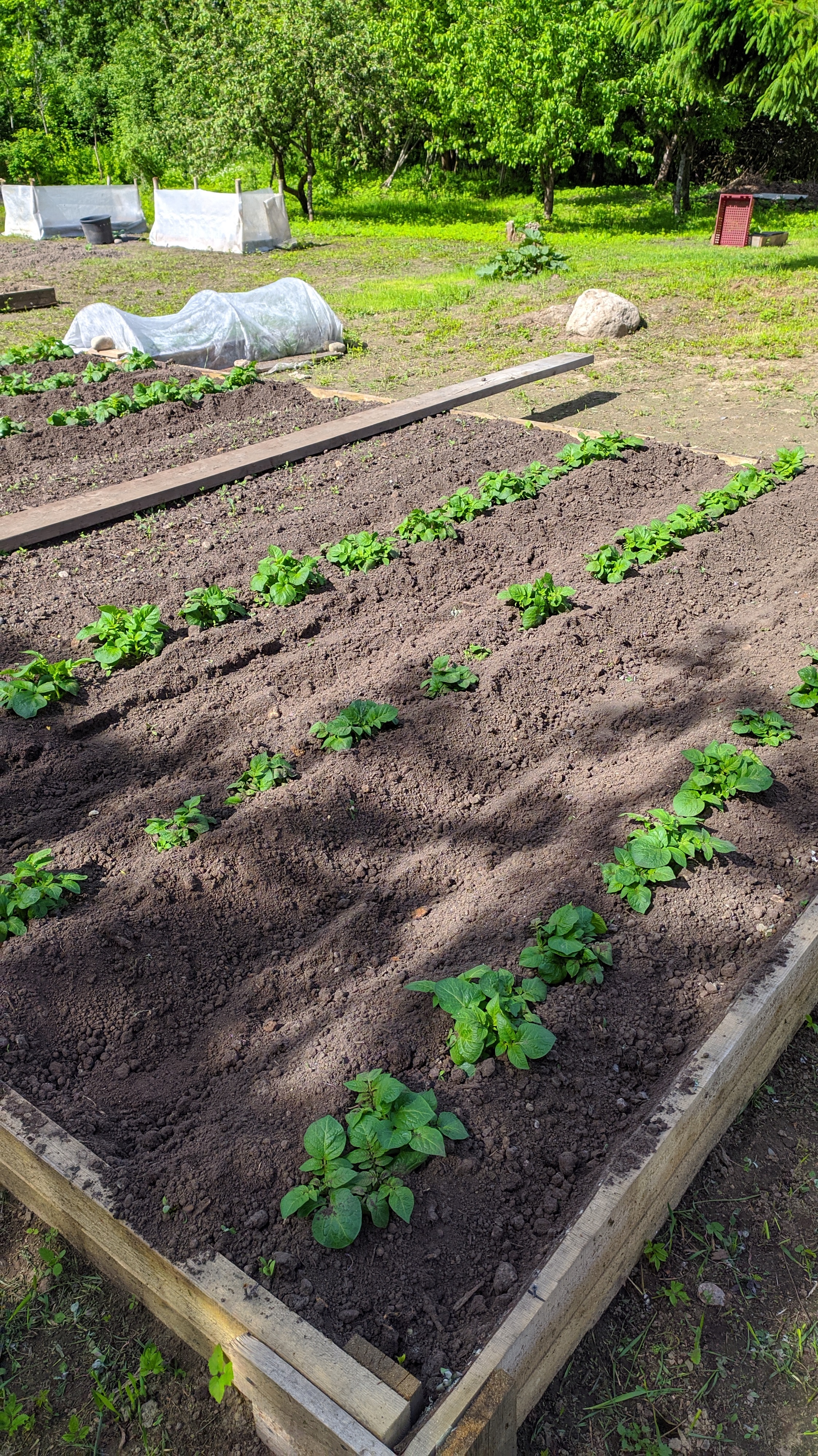 В основном бульбы насажал, ну и так по мелочи. Собираюсь постепенно отходить от бульбы в пользу клубники - она сильней поднимает. А ещё сад. В общем, чего б не жить?