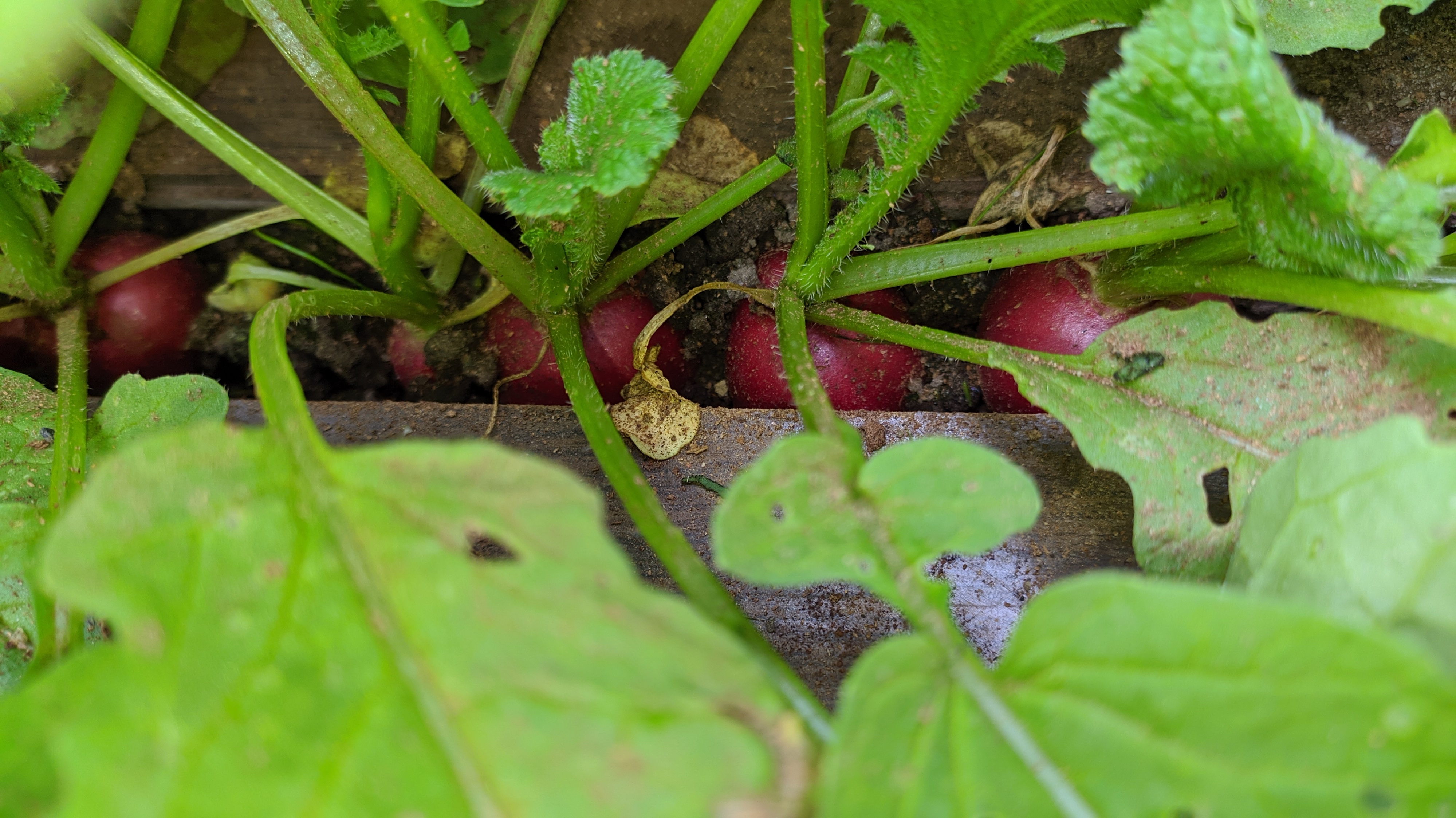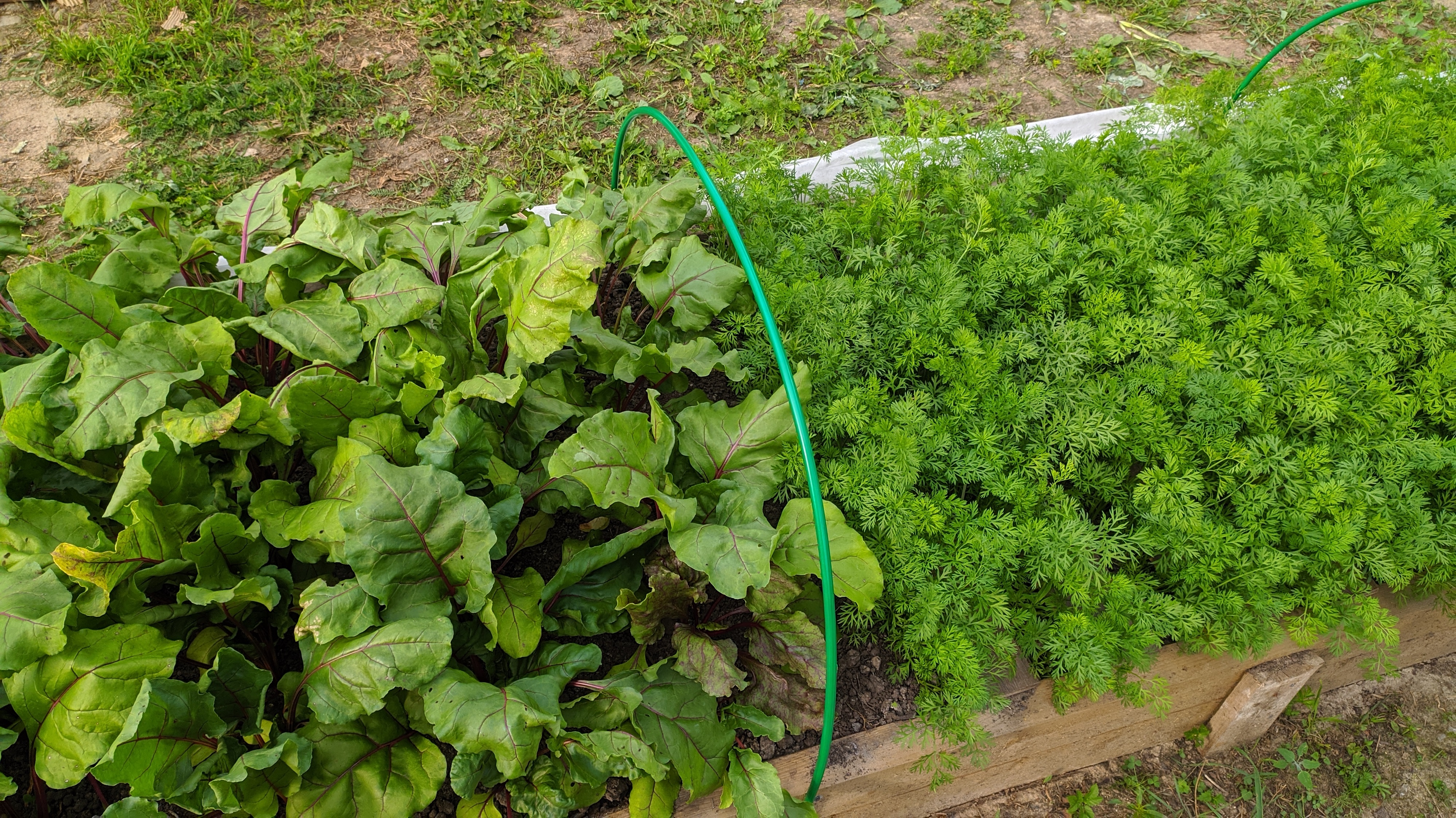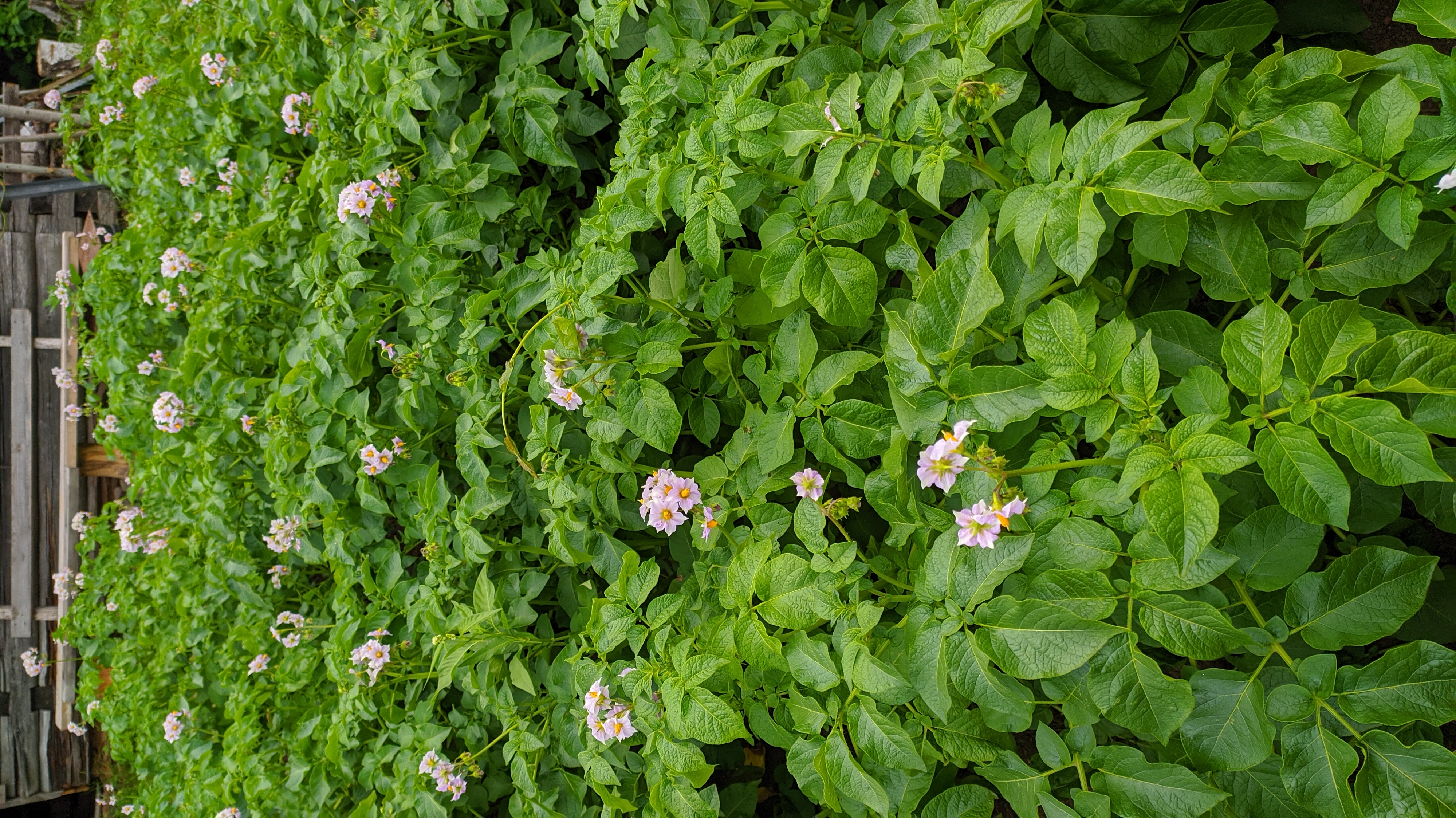 Такие дела. Редиска уже по второму кругу растет. Свекла показала попку. Недавно выдернул морковку посмотреть, там тоже уже наросла маленькая пипирка. Помидорсы созревают. Хотя на другой грядке, где индетерминантный сорт - там просто пиздец заросли, а оно все разрастается. В следующий раз более удобный сорт выберу. Картофан цветет, надеюсь будет дофига урожая.