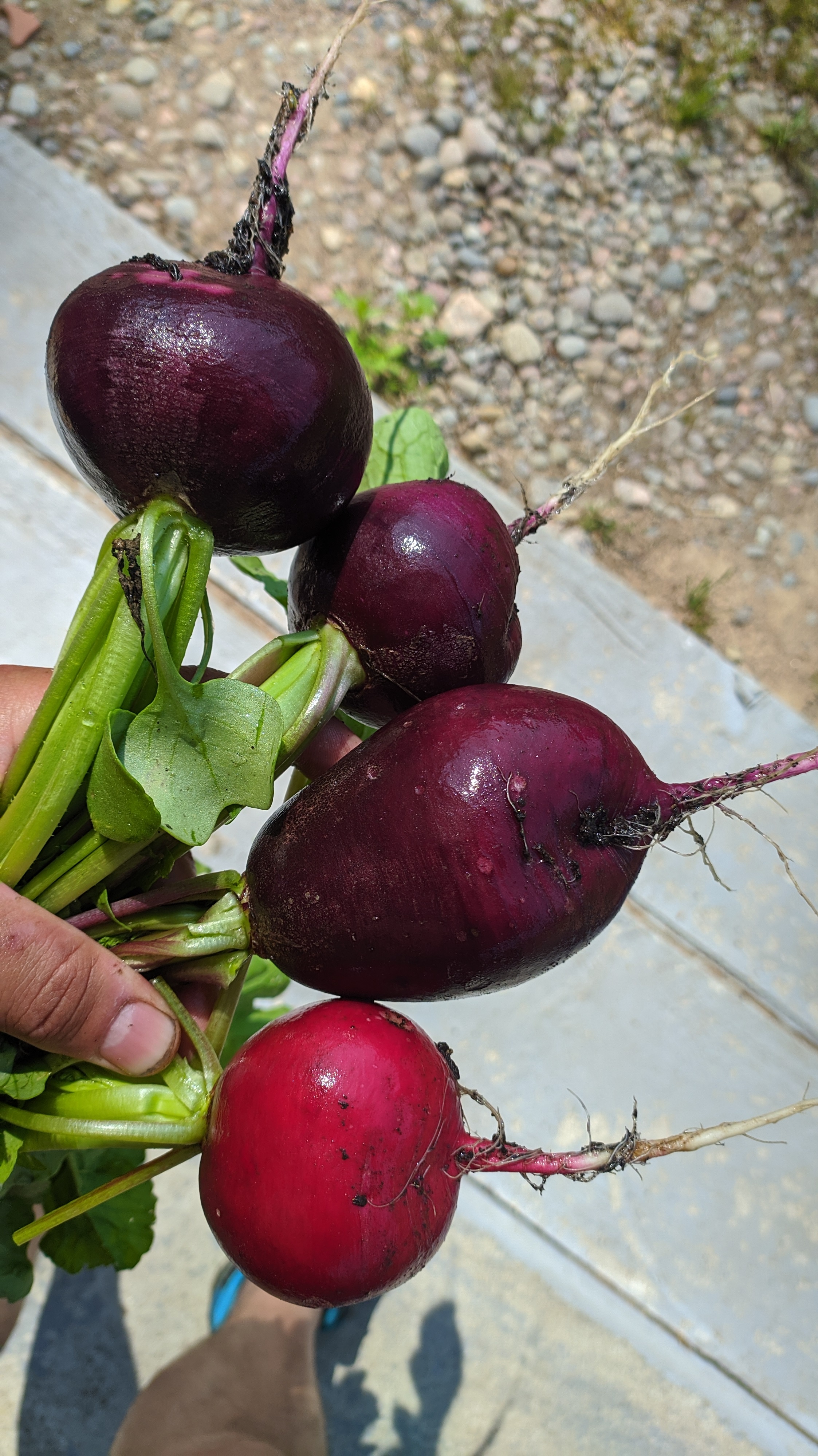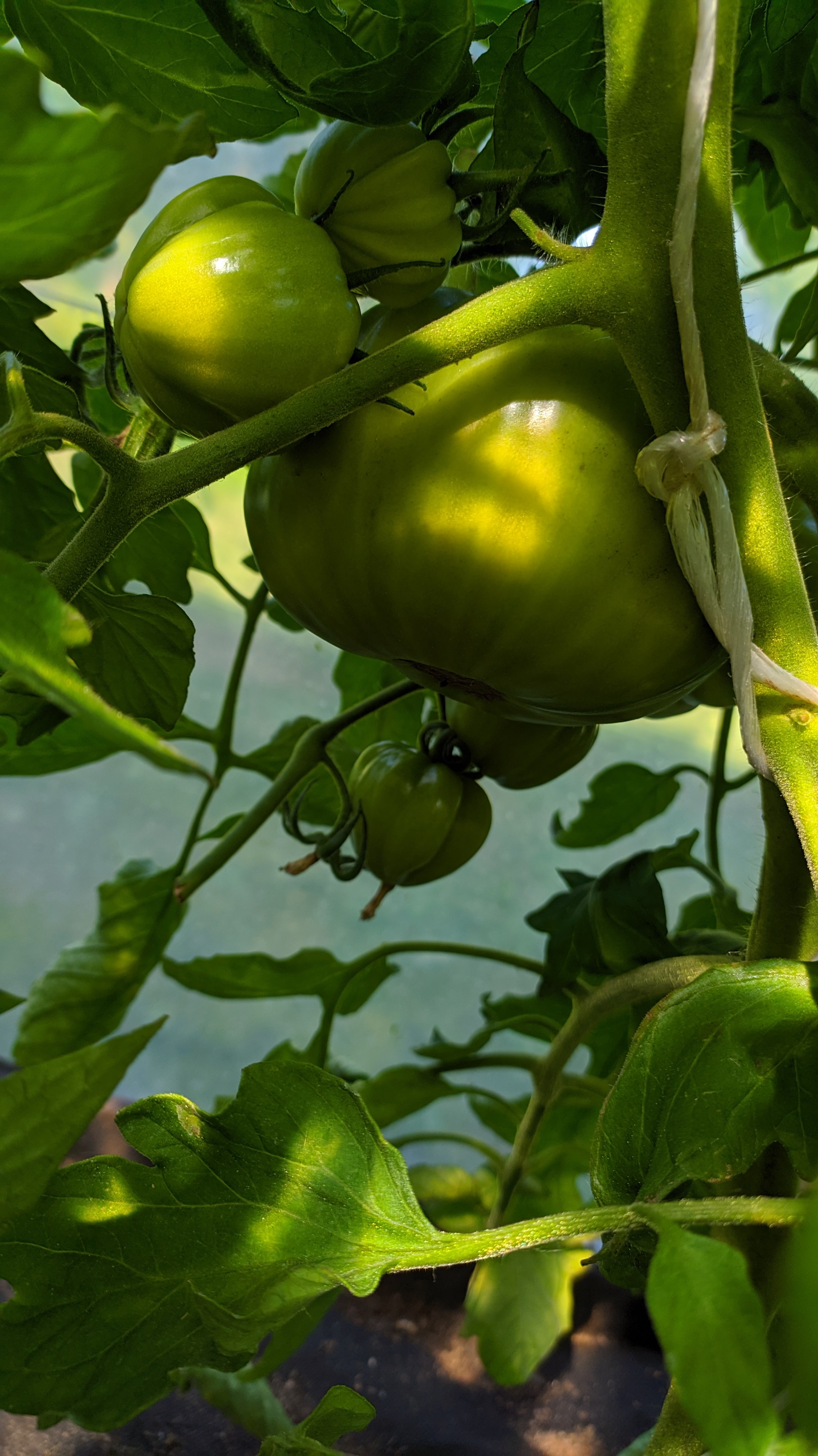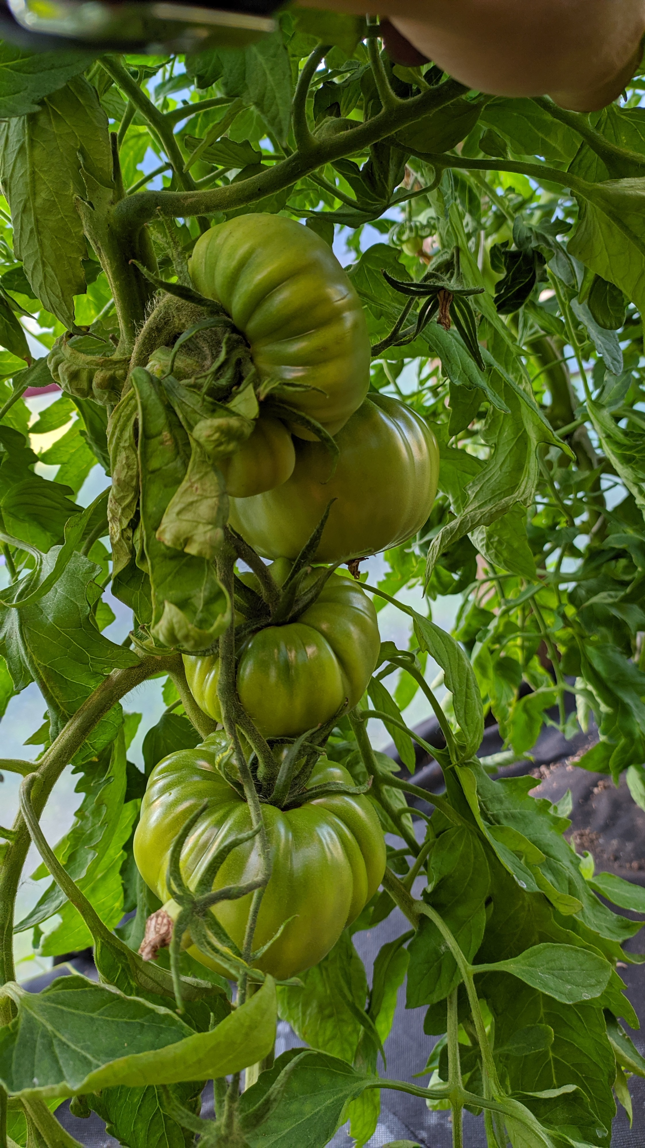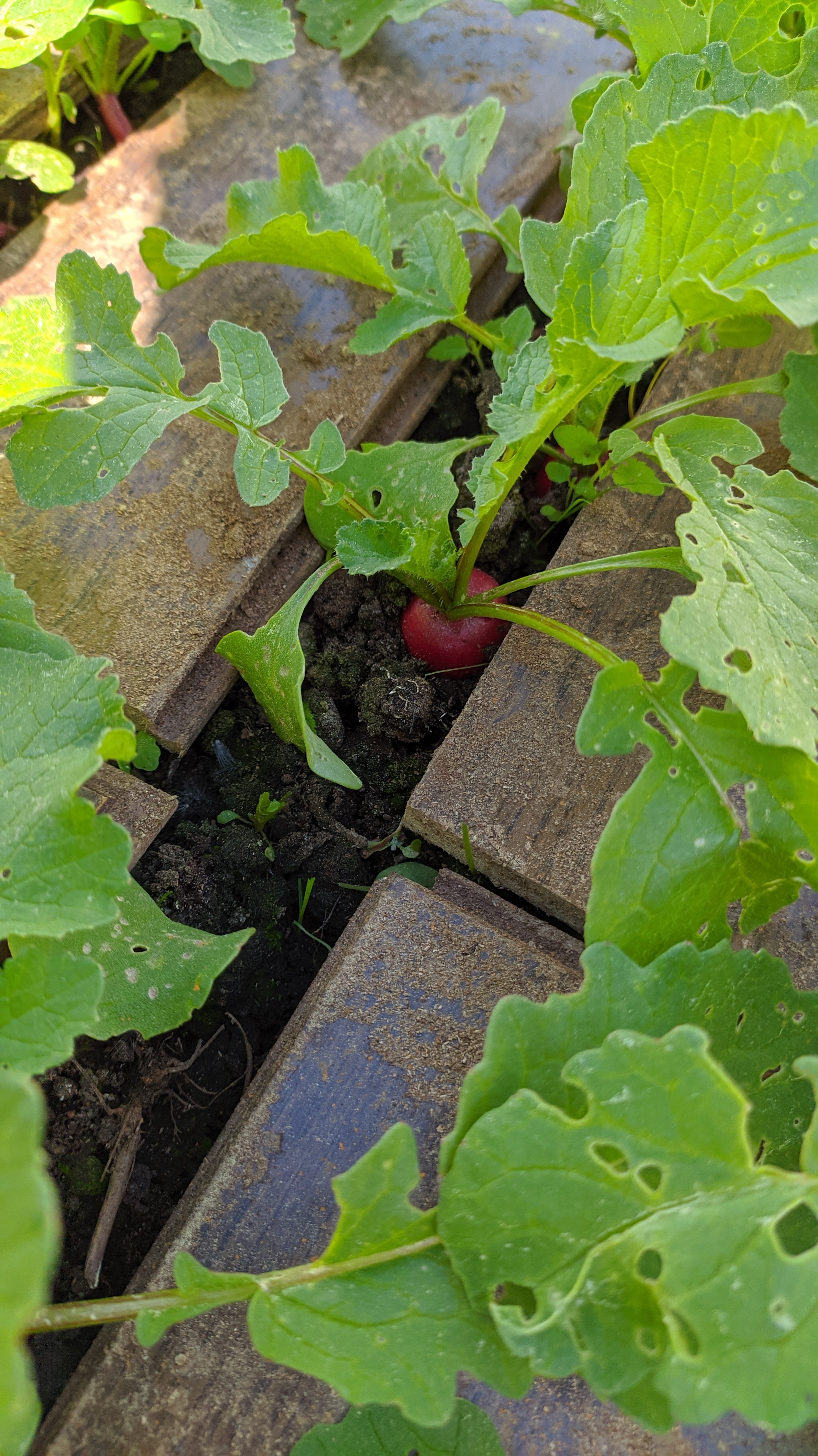 Такие дела. Редиска уже по второму кругу растет. Свекла показала попку. Недавно выдернул морковку посмотреть, там тоже уже наросла маленькая пипирка. Помидорсы созревают. Хотя на другой грядке, где индетерминантный сорт - там просто пиздец заросли, а оно все разрастается. В следующий раз более удобный сорт выберу. Картофан цветет, надеюсь будет дофига урожая.