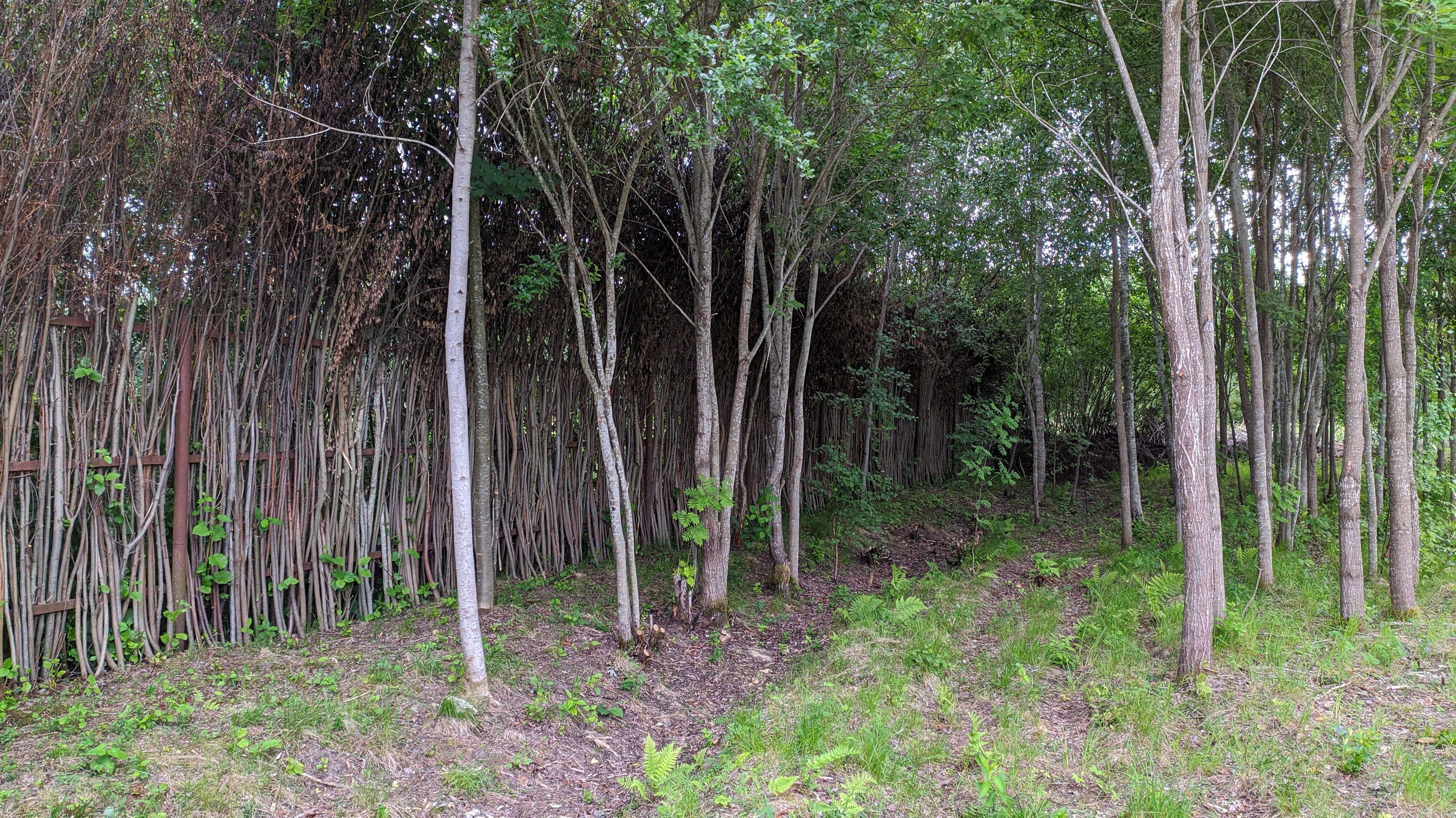 Алсо, антикризисный забор. Вообще если бы оно не высыхало и не росло, то выглядит неплохо. И вообще там такое четкое место получилось, надо будет туда грибов раскидать, может что-то приживется.