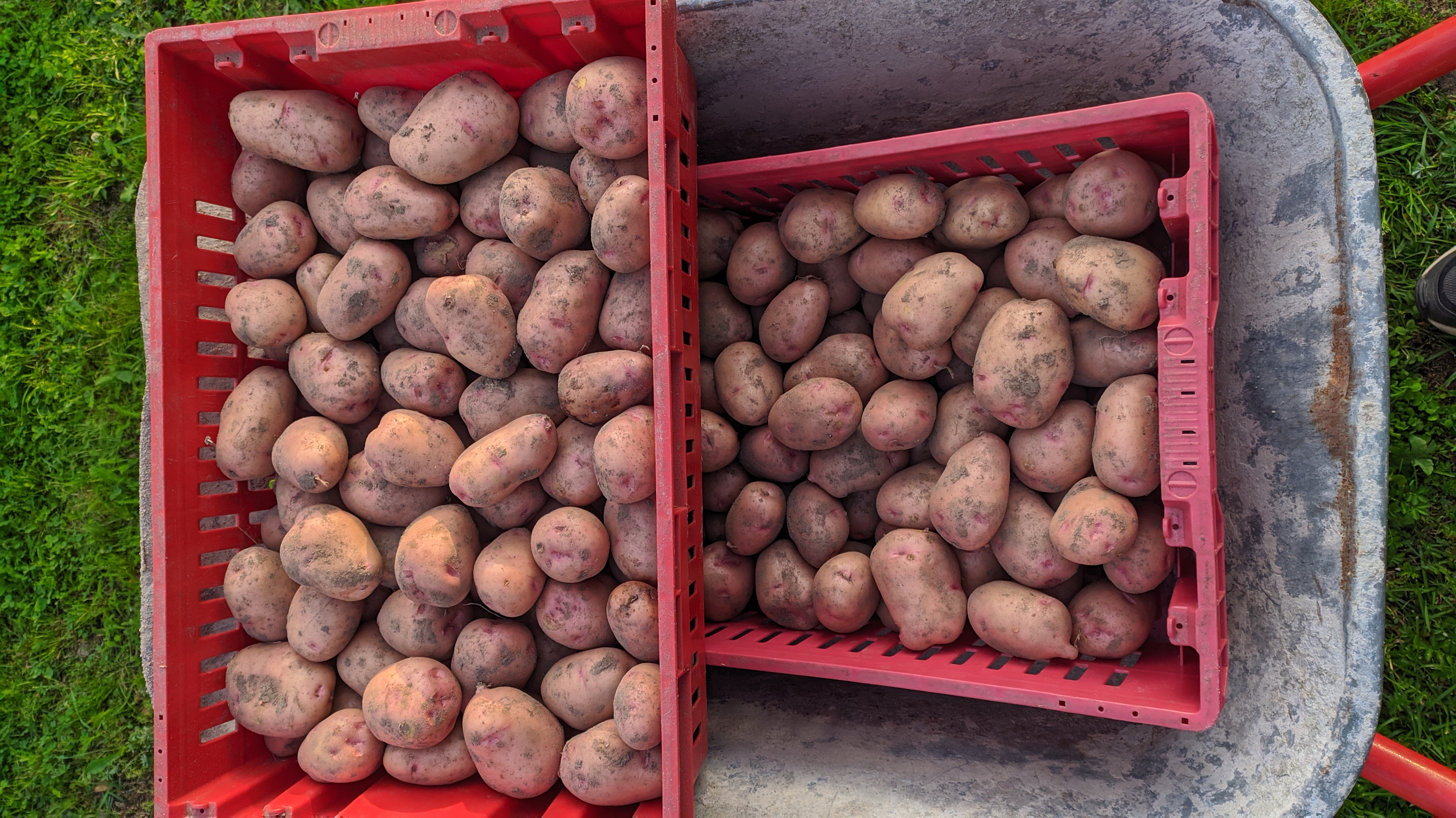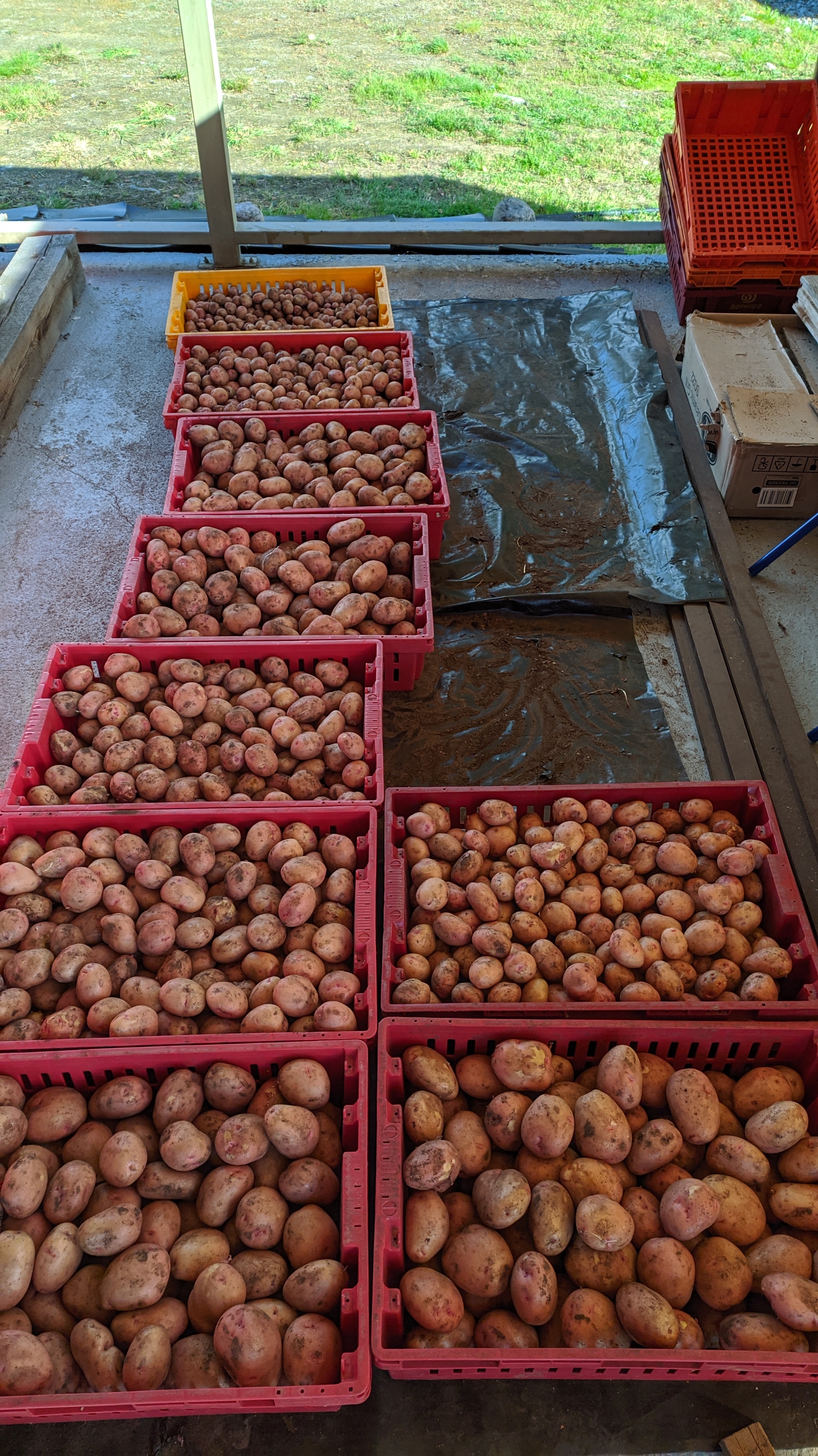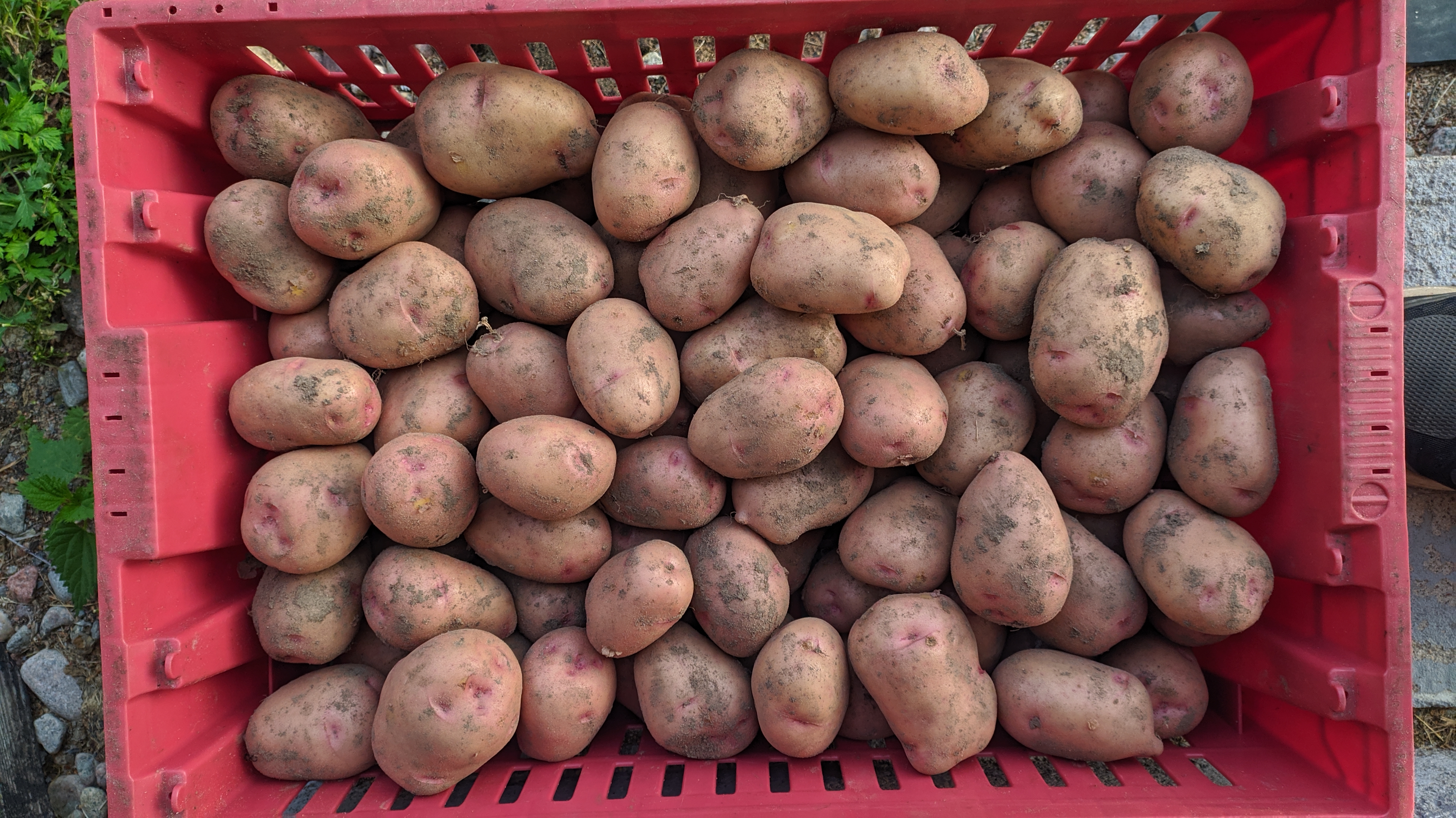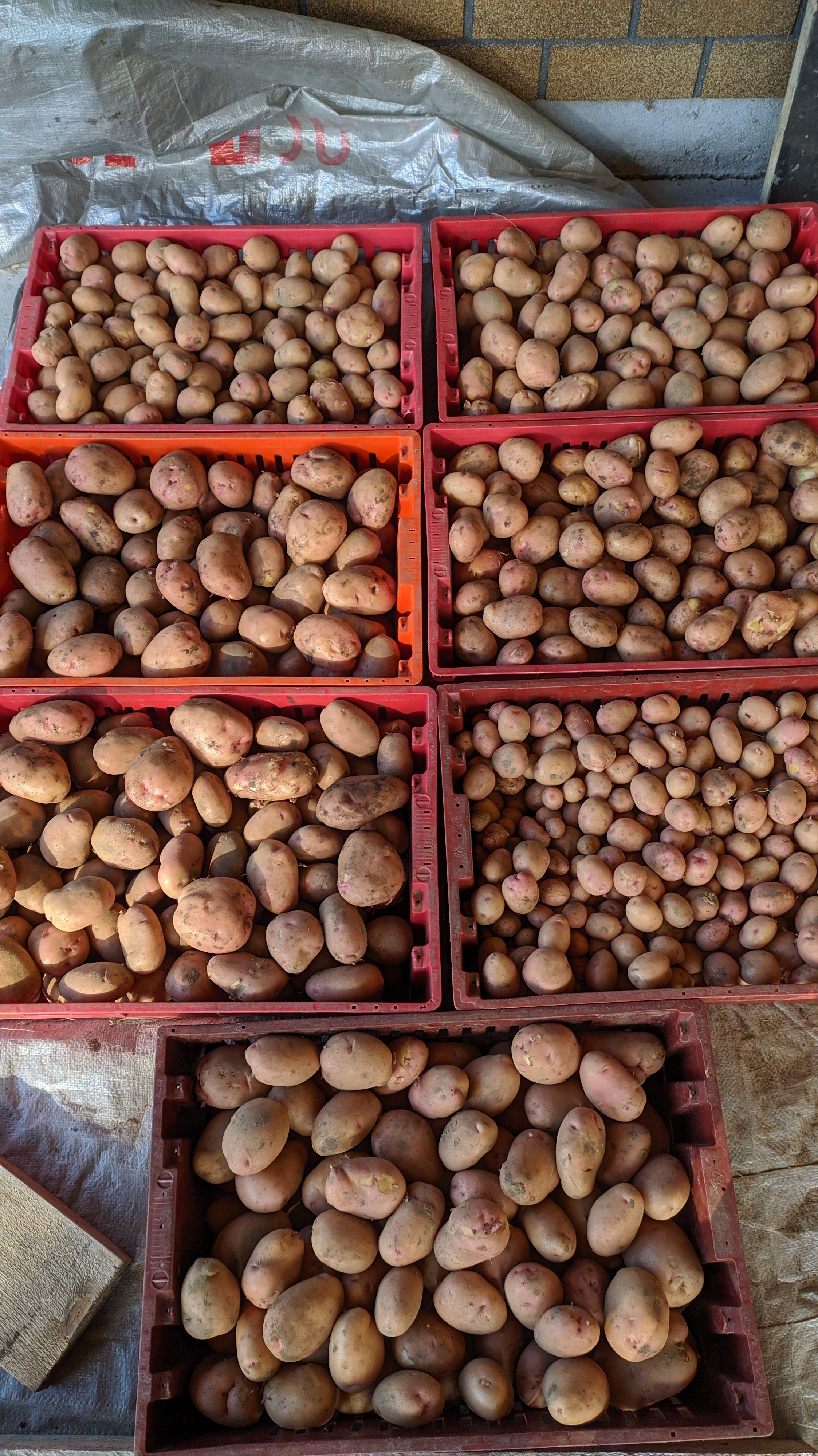 Ну вот как-то так. Ожидаемо в высокой грядке с подготовленной землей получился самый хороший урожай. Земля была настолько рыхлой, что большая часть куста вытаскивалась за остатки ботвы, а остальное руками просеивалось. Вообще, оказалось все весьма просто.