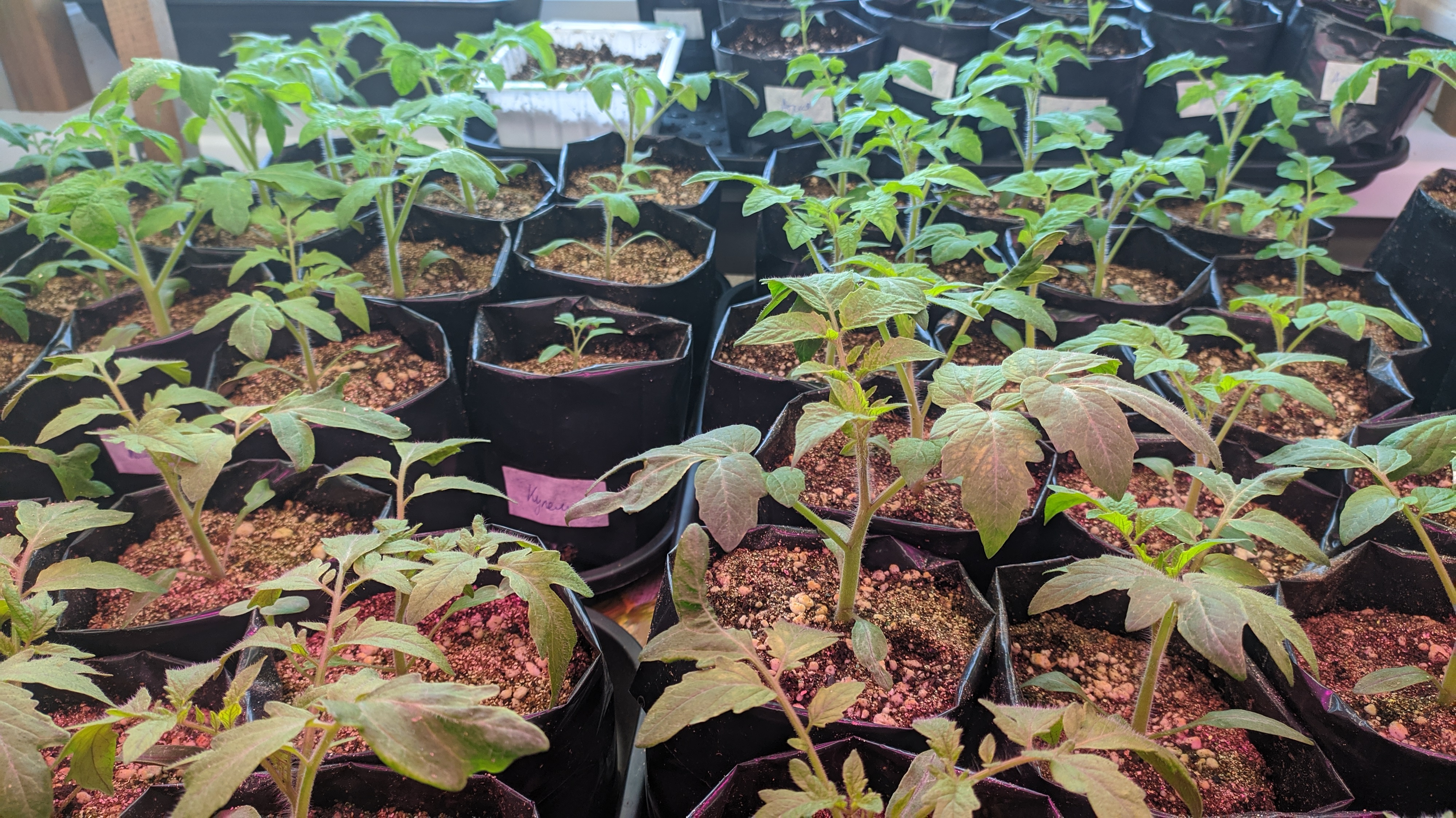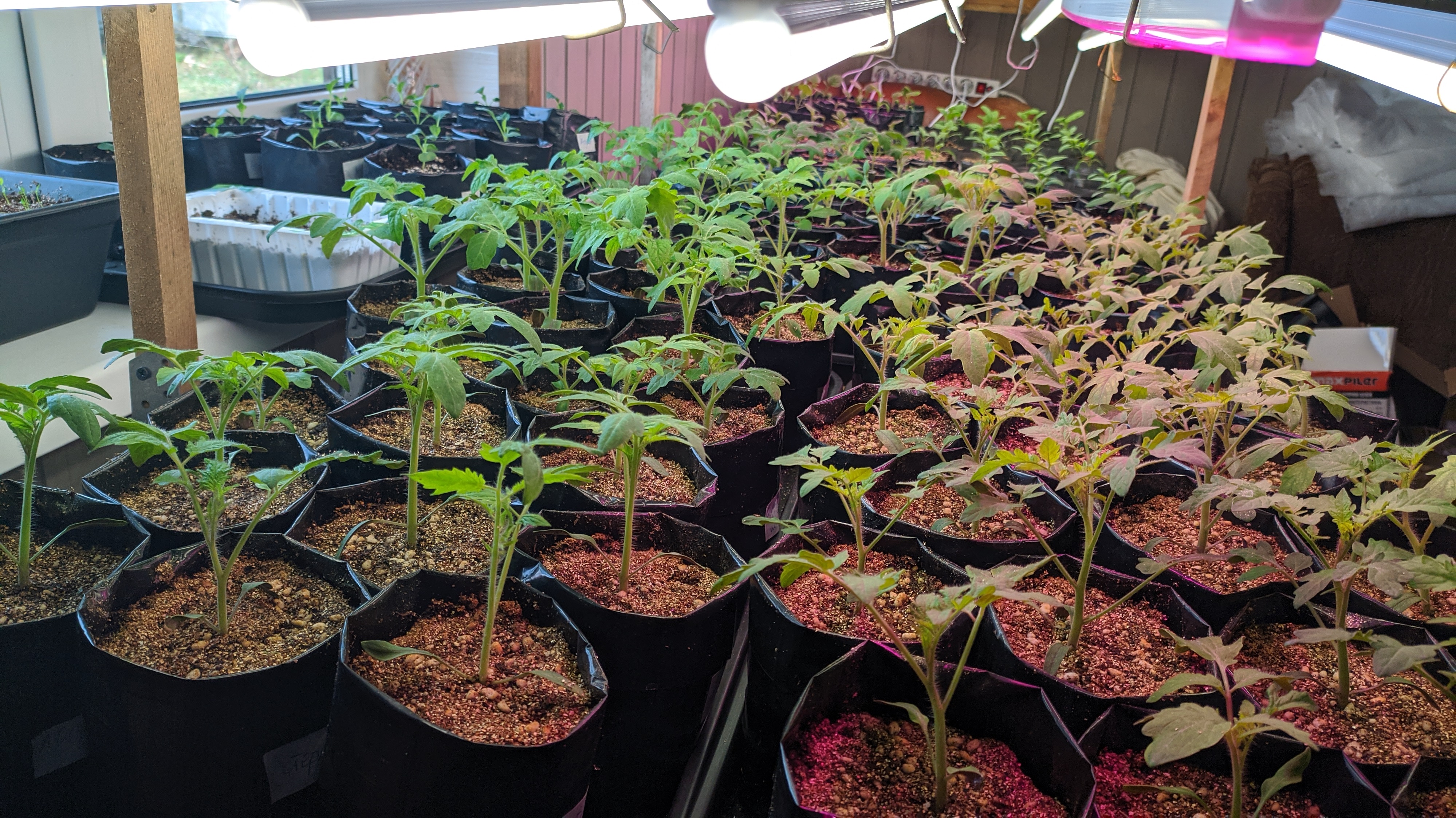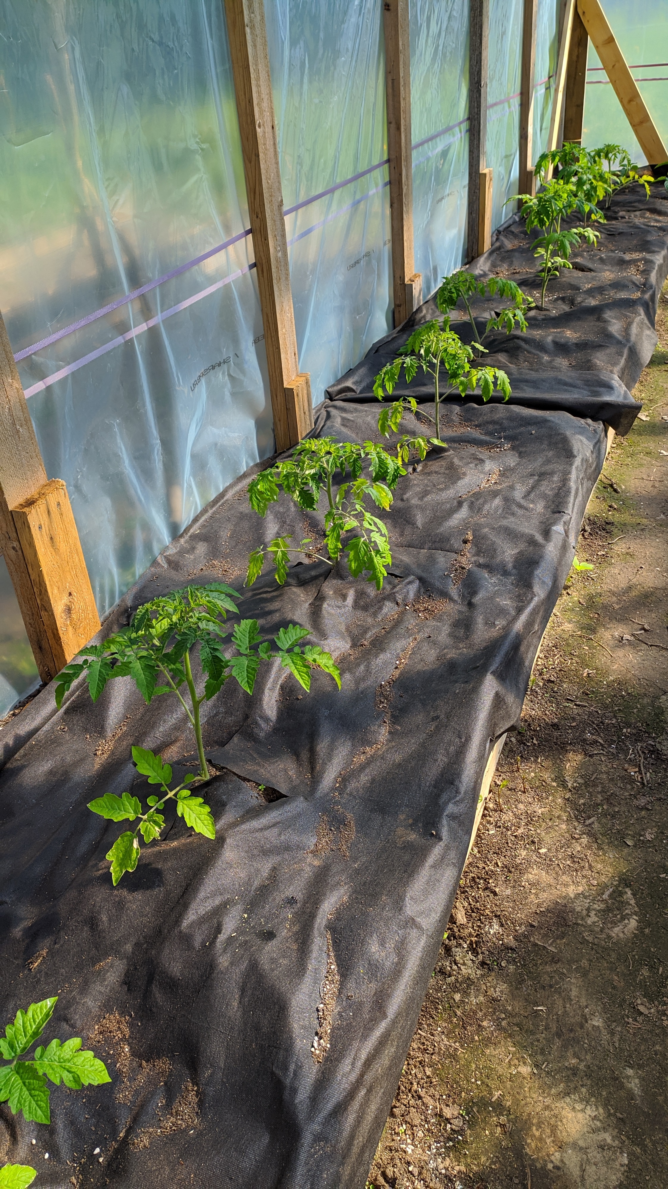 Думал спасти свои огурцы, но эта мразь их прикончила. Бывает, конечно, но все равно немножко обидно. Пришлось на замену просто так семечки в грунт сажать. Зато помидорки вроде норм растут. Где-то уже ничего такие вымахали, где-то просто куча мелких начало появляться. Что странно из 6 томатов одного сорта, у двух почему-то завершился рост. 4 растут дальше как обычно, а эти два почему-то закончились цветочной кистью и все. Я еще не обратил внимание сначала, так что и пасынки все прищипнул. Теперь нужно новых ждать. А другие томаты запарили делиться. У них уже второй раз основной ствол раздваивается. Я сначала решил что так норм, буду в два ствола вести, так как они четко равнозначно разошлись(не как пасынки), а тут каждый еще раз разошелся. Пока место есть, решил оставить, тем более хз как определять, где основной ствол теперь. Так же высадил рассаду арбузов. Решил не ебаться с мульчой, тем более, что травы вроде до жопы, косишь ее, а потом и не видно что накосил. В другой раз я бы и рад был, а тут без мульчи остался. Короче, арбузы просто в черный спанбонд посадил. Картошечка проклюнулась. Пока прошелся граблями в междурядье, пособирал сорняки. Ну и все остальное тоже по чуть-чуть повылезало: морковка, свекла, редиска, горох, петрушка, укроп, капуста. Редиску сволочная мошка пожрала. Но вроде не супер страшно, я ее присыпал смесью золы с табачный пылью. А ну вот разве что севок пока тупит и не вылезает. Хотя у нас тут на севере лен области достаточно прохладно, так что наверно ждет погоды.