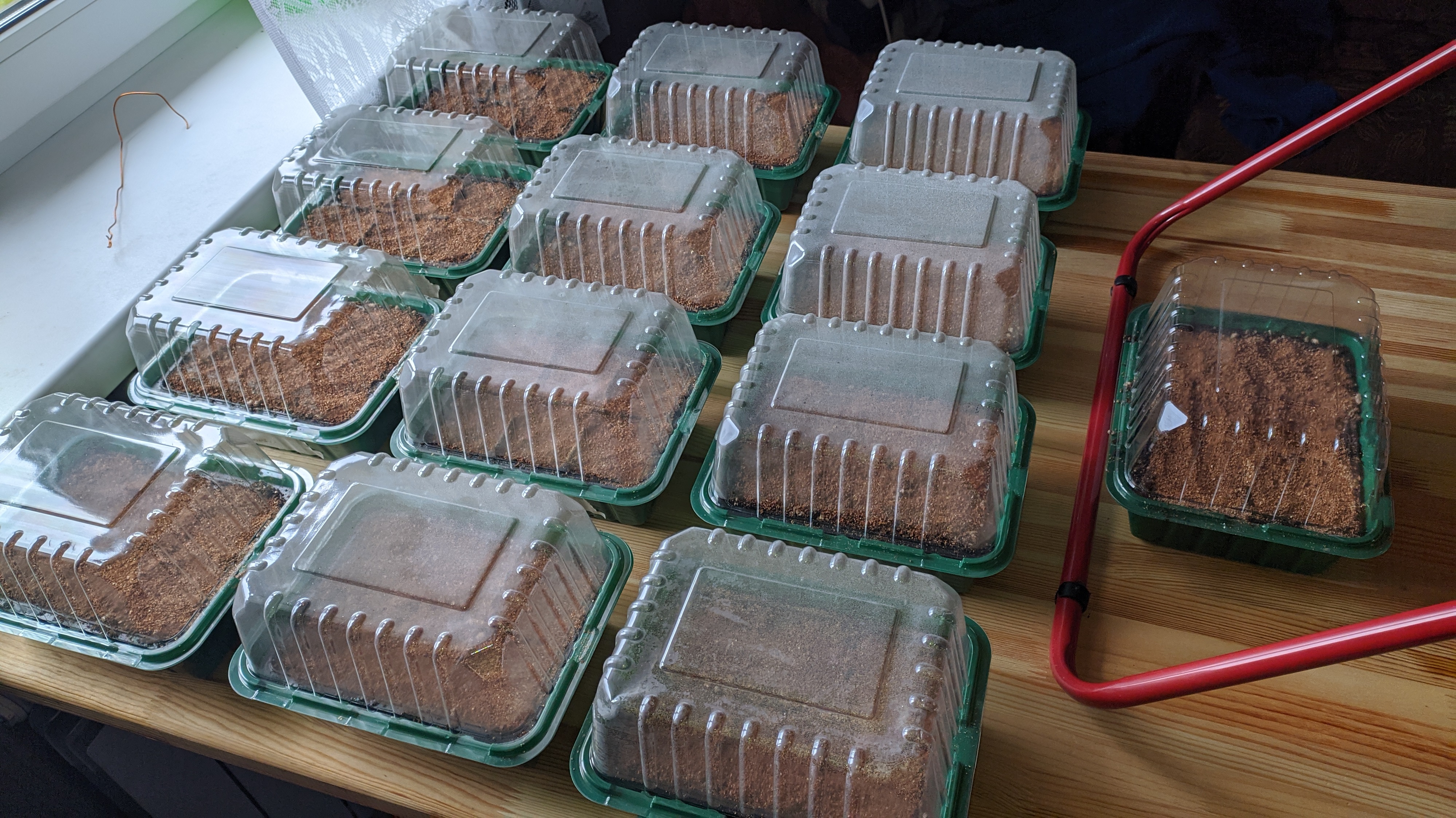 Первая попытка вката в цветы оказалась неудачной. Проклюнулась примерно половина семян, вылезли ростки и сдохли. Полагаю, что дело было в почве, внял советам и использовал специализированную для цветов, судя по всему, слишком кислую. Завтра поеду за обычным почвогрунтом и новыми семенами хаха.