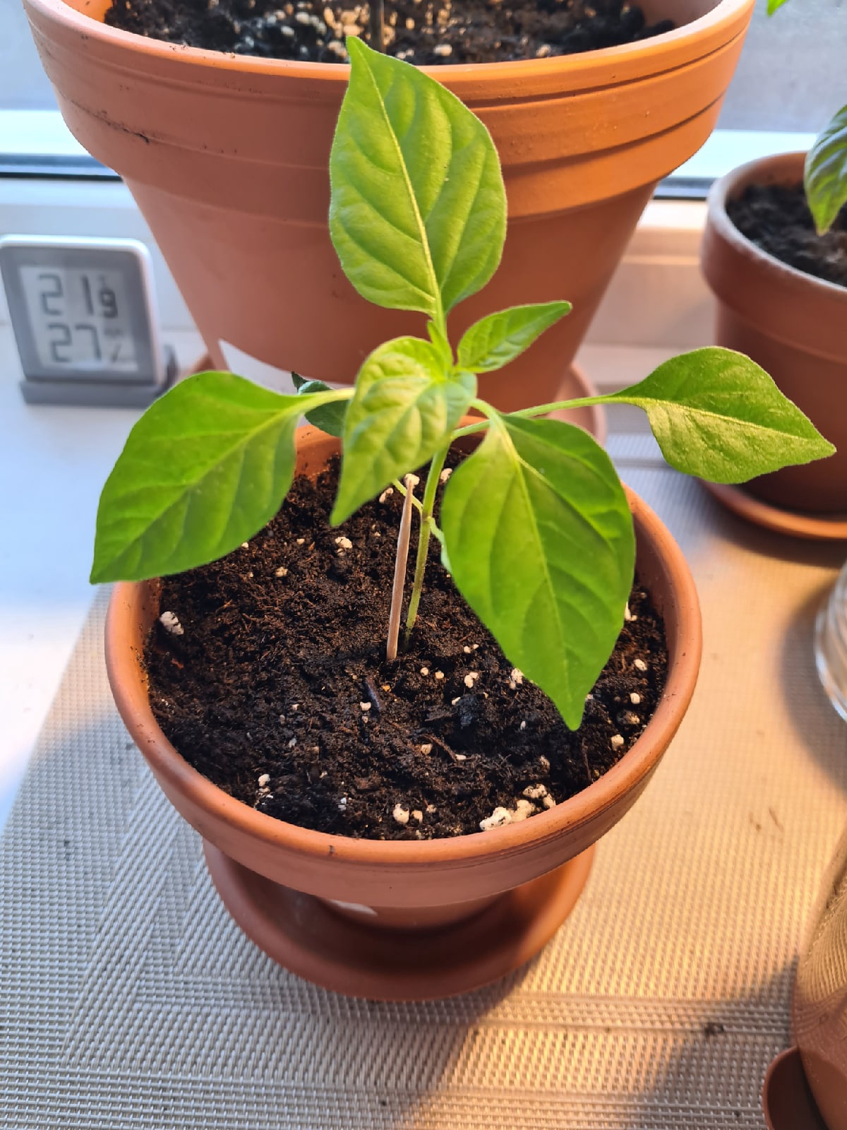 Тоже поделюсь прогрессом. Сорт Феникс от Четыре лета. На первом пике всходы от 17.02.2022 в кокосе. На втором пике перец из всходов от 21.01.2022 в грунте.