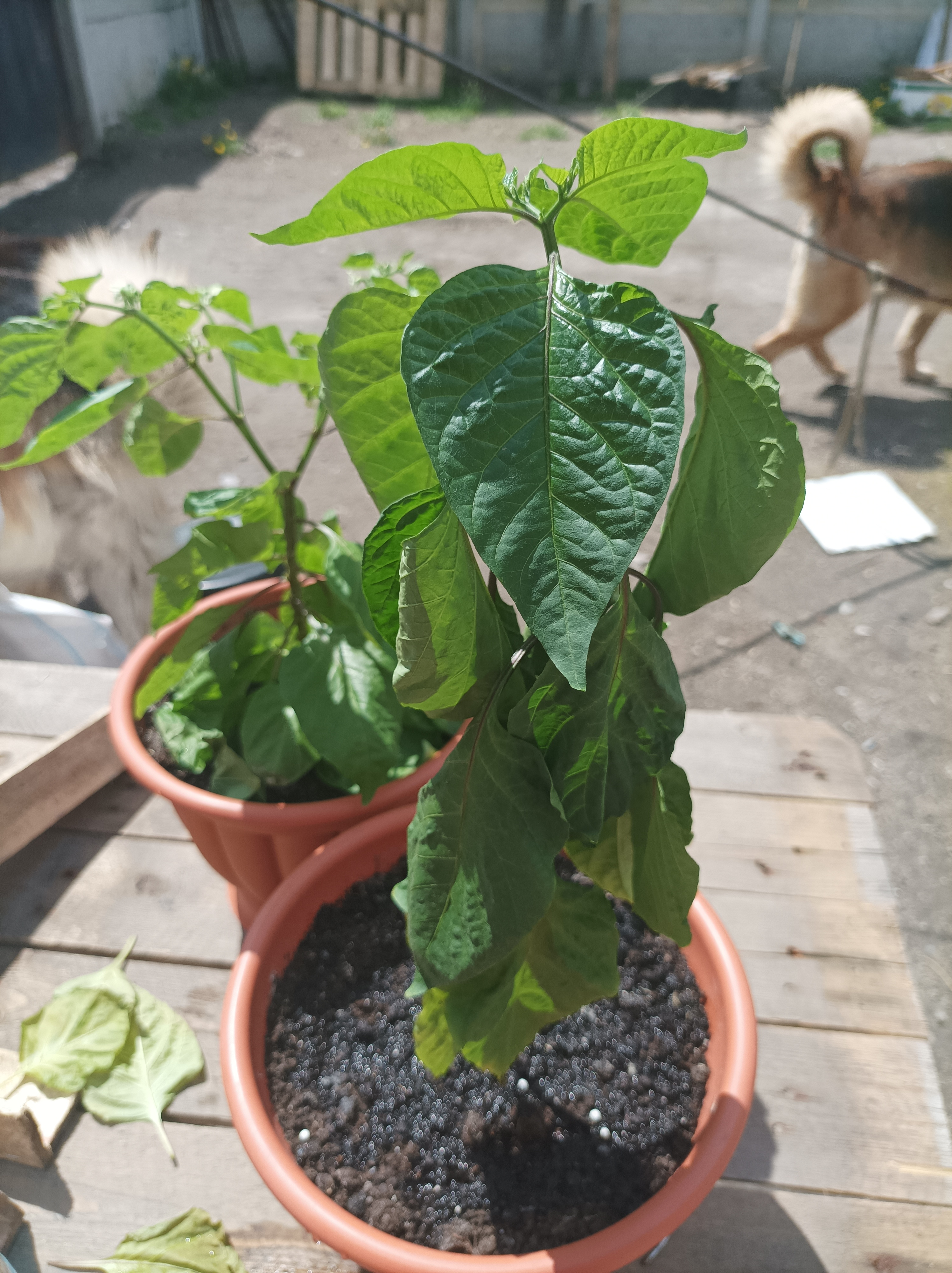 >>9454 В ДНР я, у меня на жаре как раз росли, высадил в середине мая, прям на солнце открытом с утра и до часов 4-5, потом за деревья и забор солнце заходило. На солнце было под 35 градусов и выше в июне, они похоже поэтому у меня не вязали сначала, потом затемнил белыми мешками тупо и они вот сейчас как ебанутые начали вязать. Ну и изначально стояли на окне где солнце очень сильно светило, поэтому и изначально были под него закалены и не сгорели. А вот сейчас когда они затемнены, новые листья вырастая из тени на солнце сгорают прям.