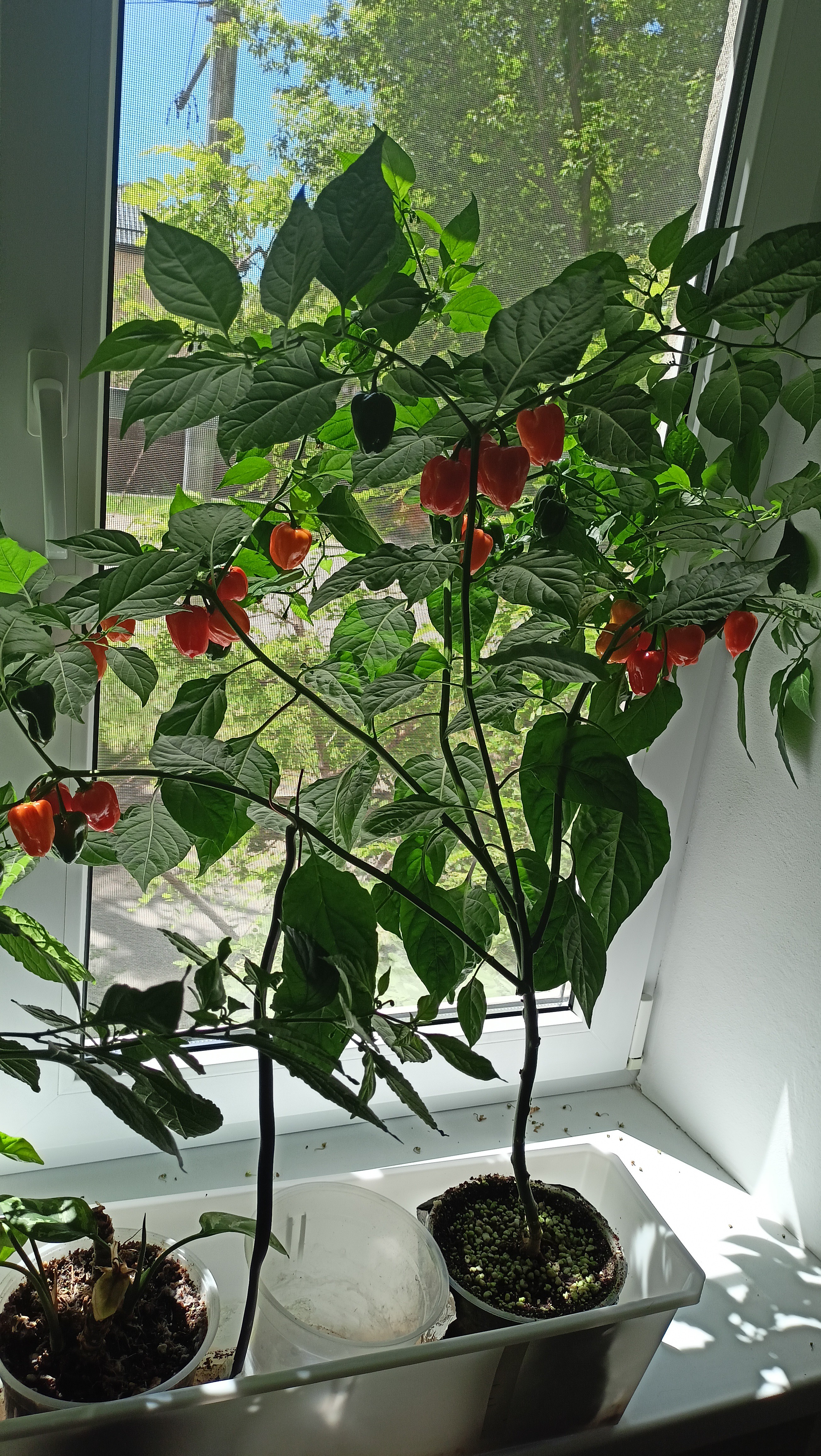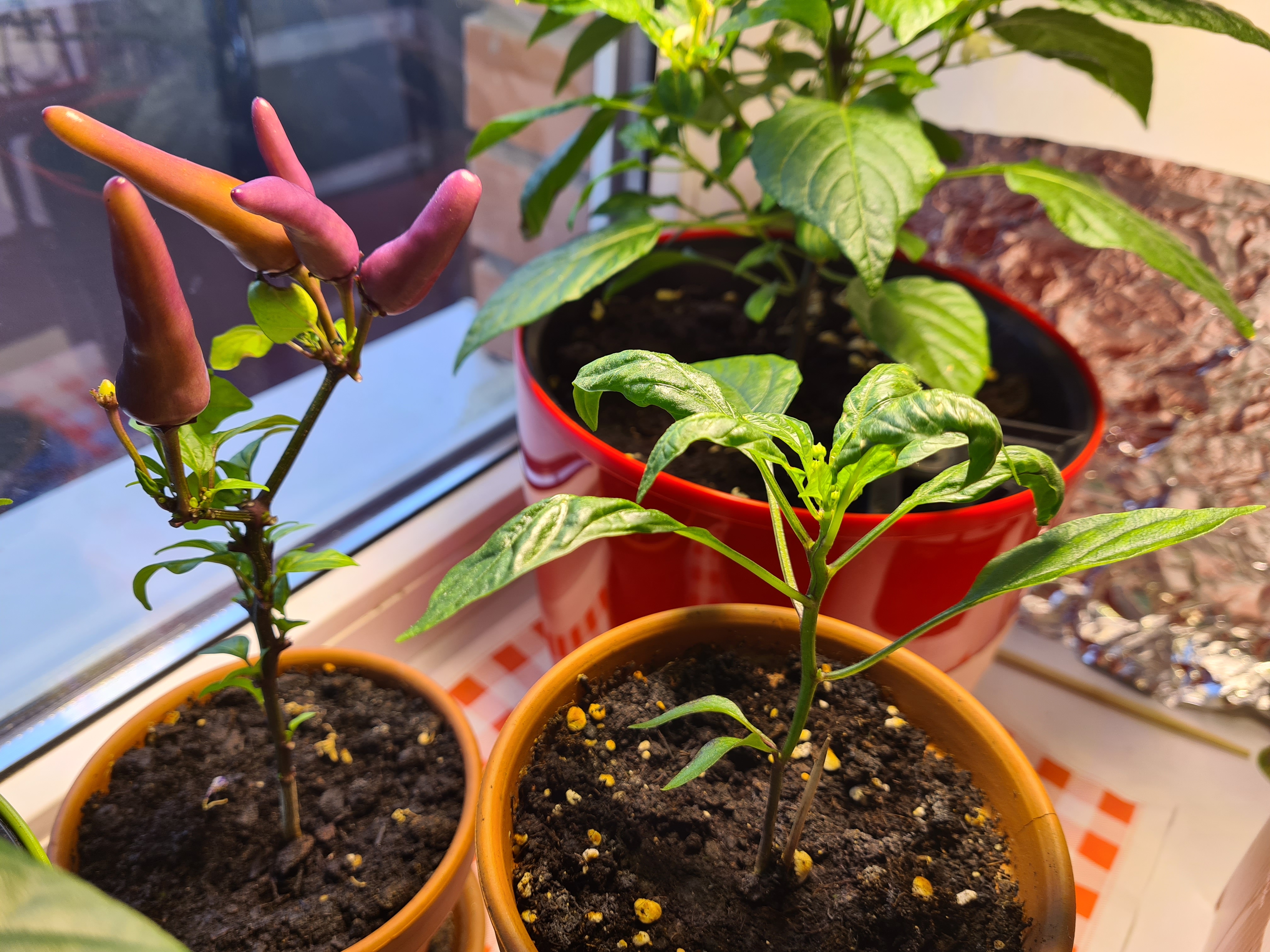 >>9318 С кустами все ок. Растут, дают плоды, уже 14 халапенек насчитал. Сейчас убрал из под лампы, ибо вытягиваются очень сильно. Также я продолбал момент, что они не самоопыляемые. Уже размером почти с оконный проем. Пикрилейтед. Но теперь новая хотелка, хочу еще один перчик, но другой, чуть поострее, подскажи, анон. Везде инфа разница, мне прям жесть не нужно, в идеале, чтобы это можно было есть вприкуску в сыром виде. Халапеньо для меня почти не имеет остроты.