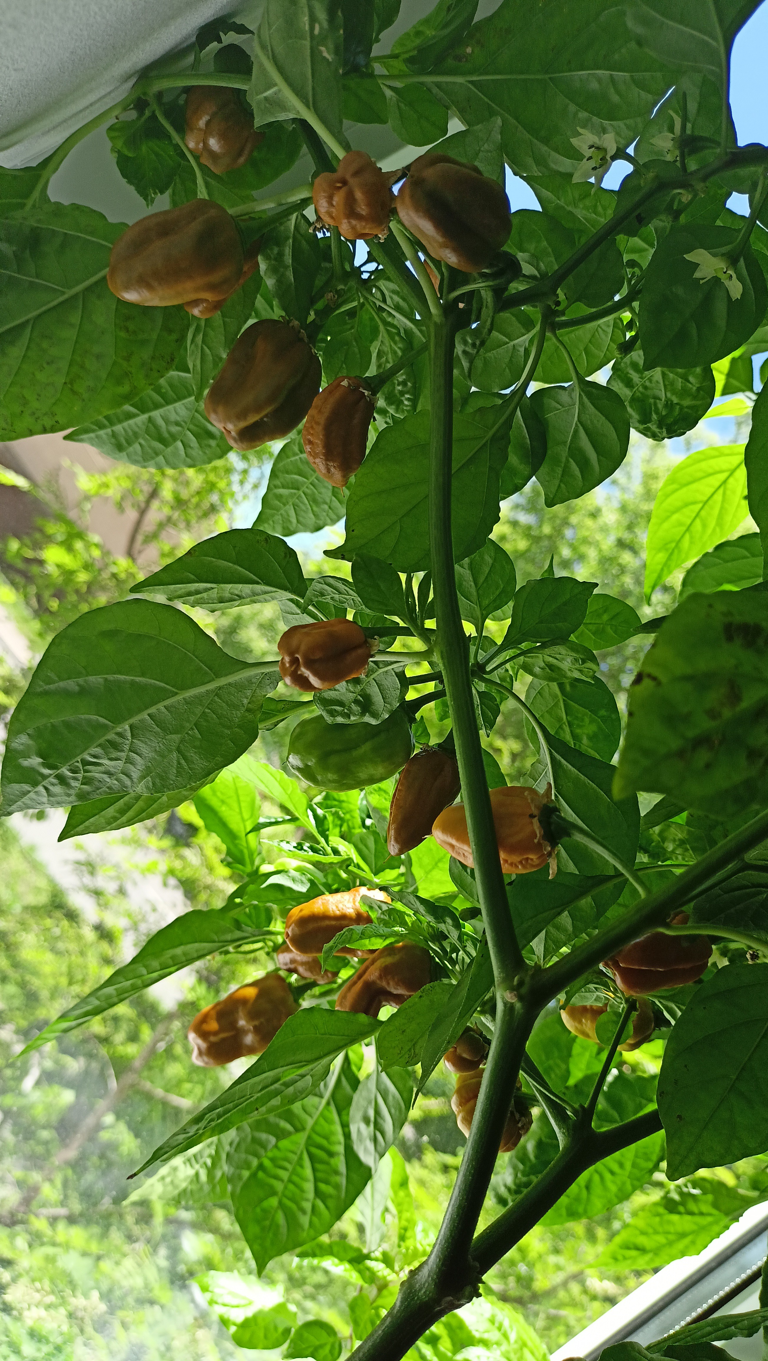 Подскажии Анонче. Второй год пробую выращивать перчики. В прошлом году садил всего 1 шт. Вырос куст хз чего чуть больше метра. Не цвел. А в конце ноября сбросил листья, засох и помер. В этом году в начале апреля посадил несколько ноунеймов и несколько желтых хабанер. Ноунеймы цветут как бешеные и уже есть перцы штук 20-25 с трех кустов. А вот хабанеро все растут долго, всего 15-20 см, кроме одного. Я его прищепнул при росте около 40 см. и он дал развилку. Как только убрал нижние лапухи, то развилки стартанули в рост. Сейчас на конце каждой развилки появилось несколько маленьких бутончиков. Оставлять как есть и ждать плоды или оборвать их? И второй момент. Я писал выше, что отвез все в загородный дом. Что потом делать с хабанеро по осени? Ведь с таким темпом он разрастется, а его придется перевозить обратно в квартиру. Он же вроде как многолетний. Можно оставить в этом доме и заезжать раз в 3-4 дня на полив поставив фитолампу с таймером. Отопление тут есть, но зимы лютые бывают и в доме холодно бывает, даже при топке на полном газу.
