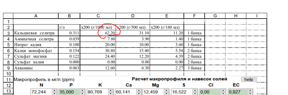 >>8886 Ну вон выше табличку прикрепил, это профиль для вегетации например для плодоношения будет уже другой, в граммах указано сколько чего сыпать на какое колличество воды, концентрат х200 получается, т.е. у тебя получится в итоге 3 банки из которых ты наливаешь по 25мл на 5 литров воды