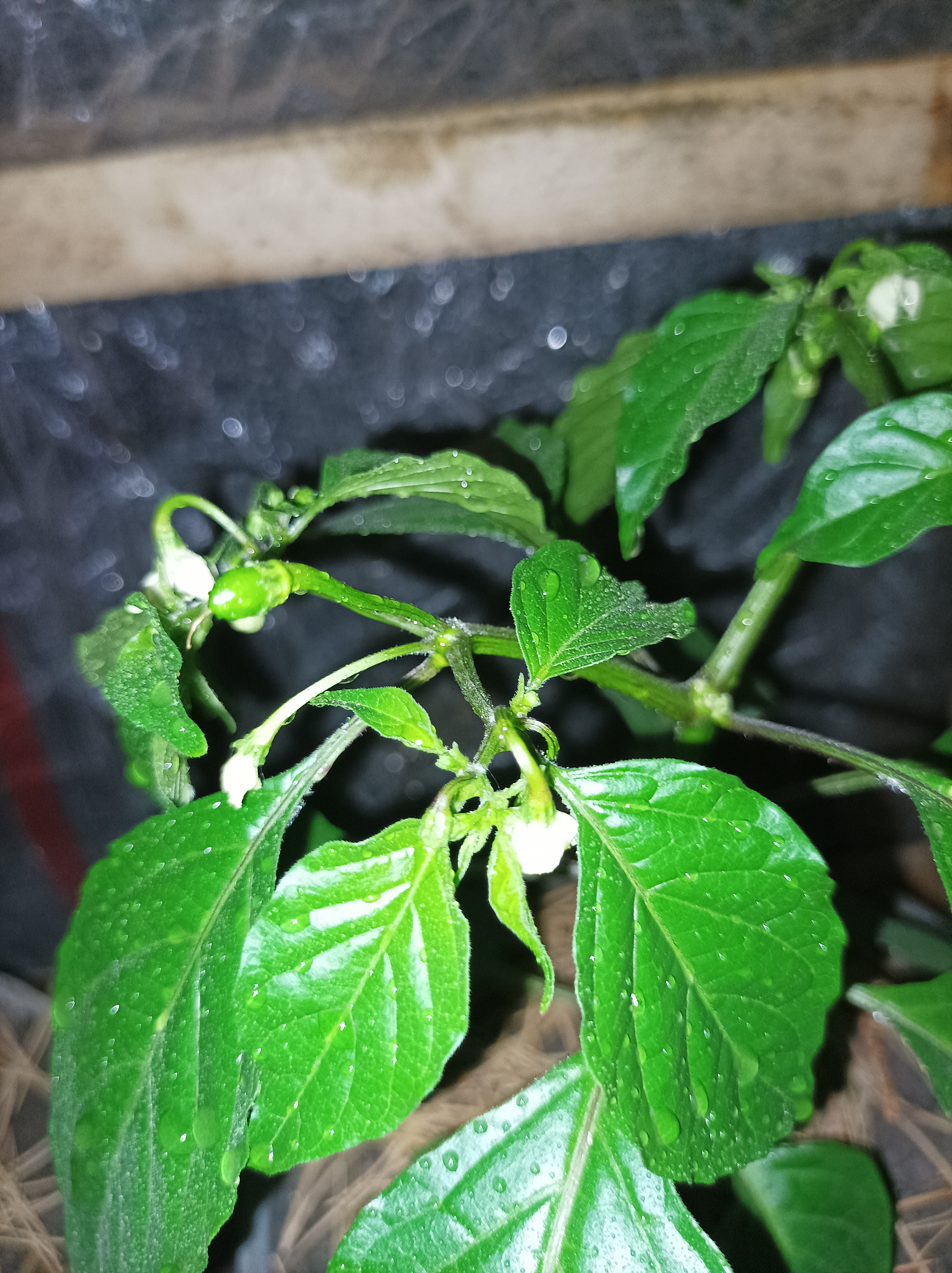 В период цветения у меня было дохуя цветов. В итоге большая часть попадала. И сейчас имею всего 4 перчика. Вот че нитак я делаю. Полив почти каждый день. Свет у меня не очень, но если зацвел, то хватает. Стоит в теплом месте (на подоконнике). Сейчас халапенью какой-то. Жо этого были другие сорта, но также себя ведет.