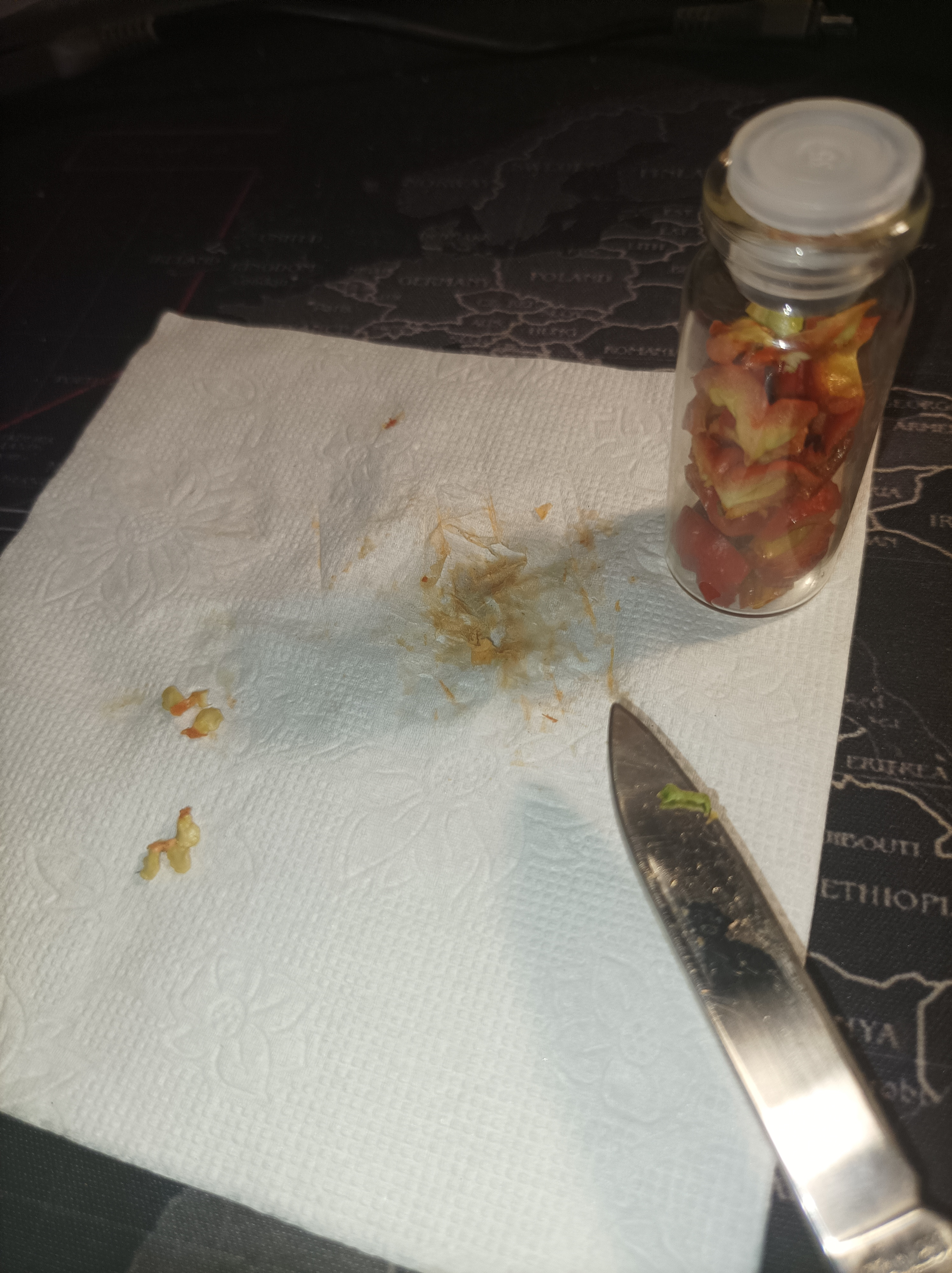 ну и рядом без плесени уже вторую неделю перцы хабанеро желтый и красный ферментируются, но что-то я до этого пробовал, вкус и запах хуйня получаются, мне не нравится совсем, думал это будет что-то типа соуса табаско, но нихуя подобного думаю в дальнейшем, если смогу в следующем году перцы растить, тупо сушить и в приправу перетирать, это лучшее, что можно сделать для длительного хранения перца с капсаицином и дозированного применения по нужде в будущем соуса, ферментация, квашение, тушение, маринование, хранение в масле — полная хуета кароче предки придумали хранить перец в порошке и это топ ну ещё соусы табаско топ, но они дорогие и у меня в магазах города их не продают, а делают их в бочках по 3 года ферентируя, навряд ли я даже бочку смогу достать для такого, да и наверняка в итоге получится в десятки раз хуже т.к. я не знаю ни одной фирмы, кто у нас делал бы такие соусы с перцами