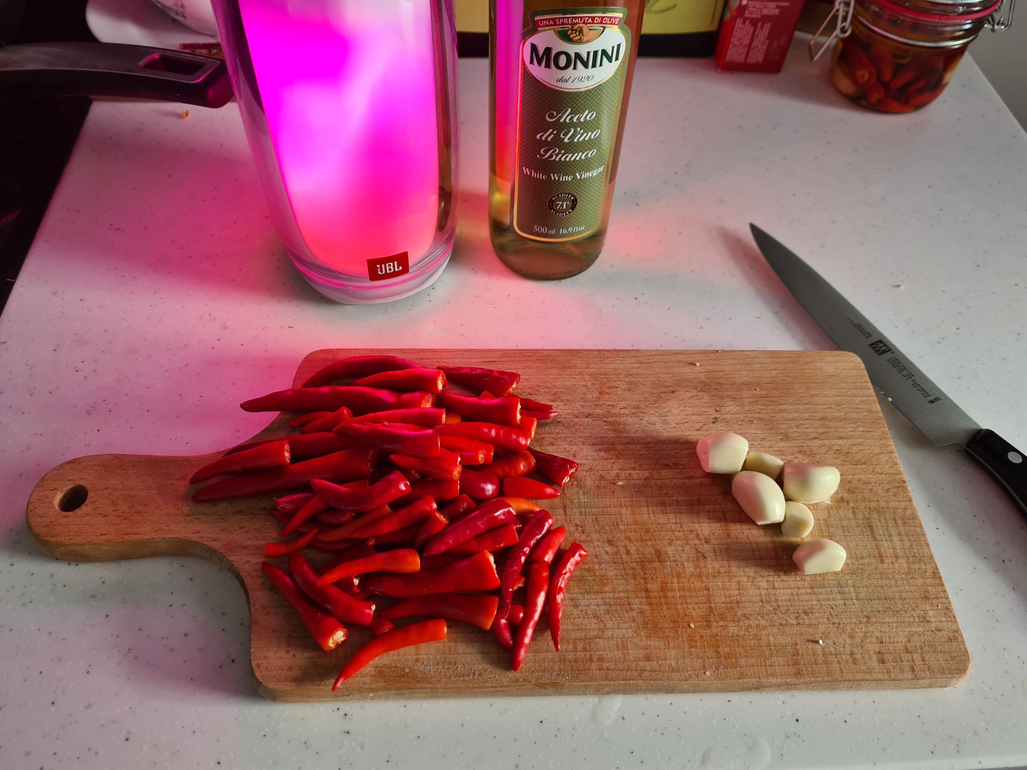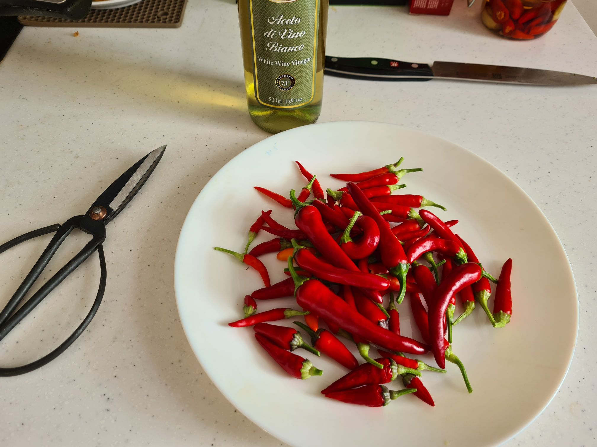 >>9657 Что-то острее халапеньо и птичьего глаза мариновать не стоит, жрать невозможно, к тому же, они тонкостенные. Но добавить для остроты пару штук можно.