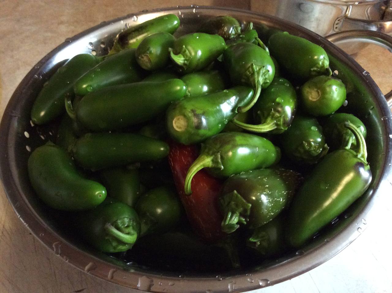 Собрал и закатал вчера первую партию халапешек, получилось около 2кг с 10 кустов, еще примерно столько же висит, надеюсь, до первых холодных ночей подрастут до вменяемых размеров. Треть примерно заморозил.