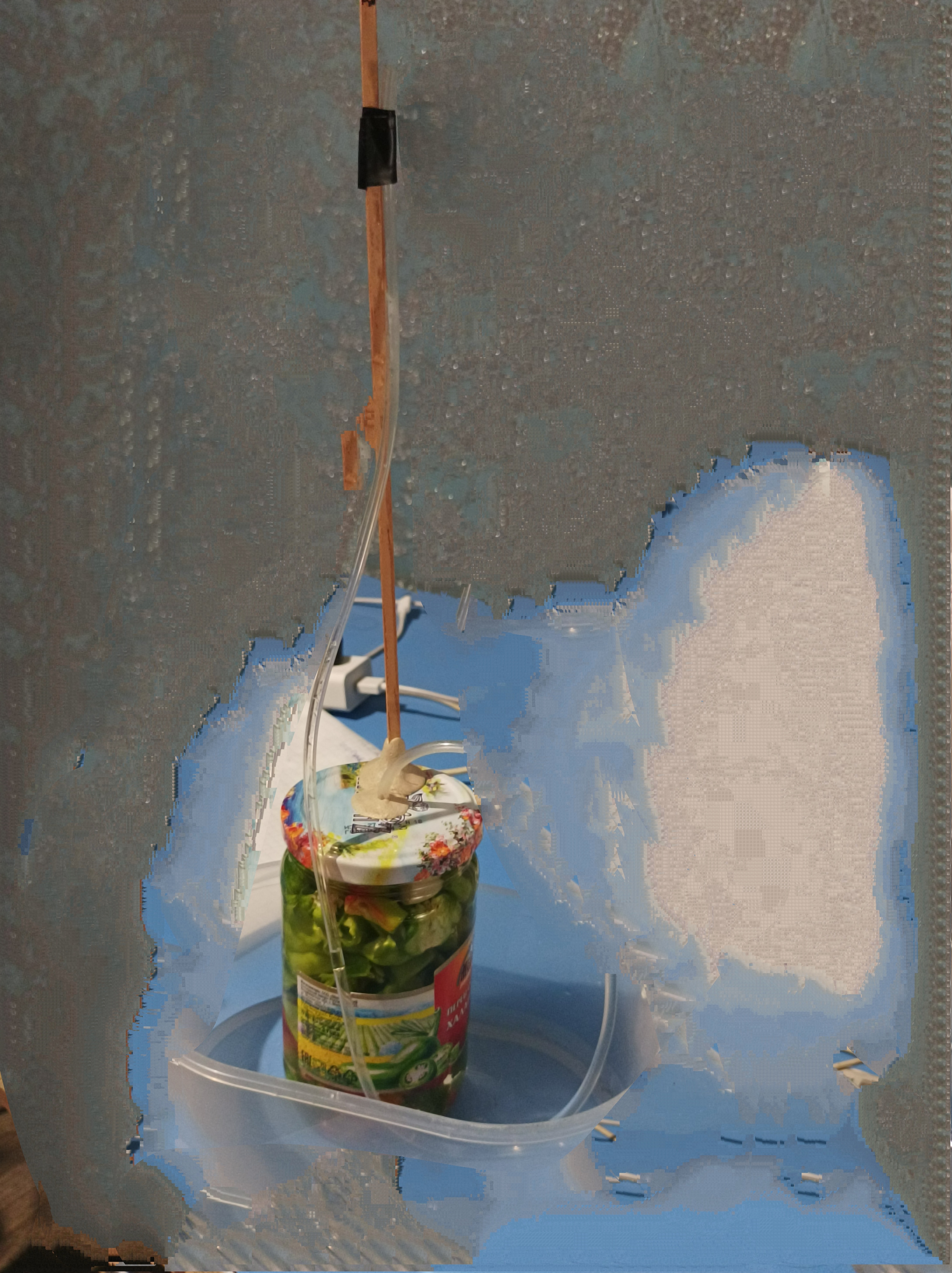>>9626 >выбьет. мути гидрозатвор пока не поздно Я на крышках сделал дыры, вставил трубочки с капельницы и холодной сваркой залепил всё, так что самодельный гидрозатвор на месте. А обе трубочки в бутылку маленькую из под перекиси водорода запихнул, она там с водой.
