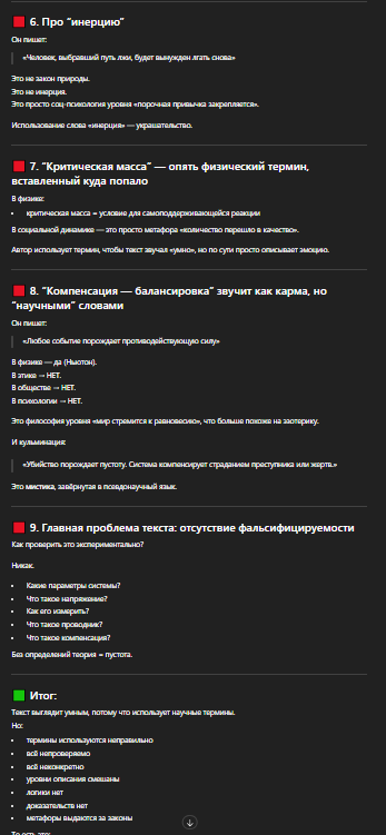 🟥 9. Главная проблема текста: отсутствие фальсифицируемости