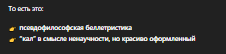 👉 псевдофилософская беллетристика 👉 “кал” в смысле ненаучности, но красиво оформленный