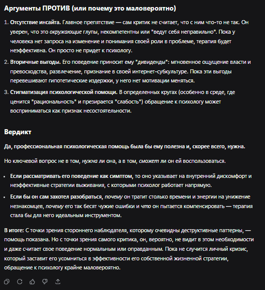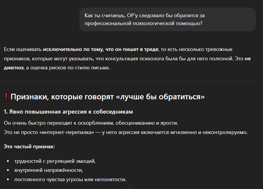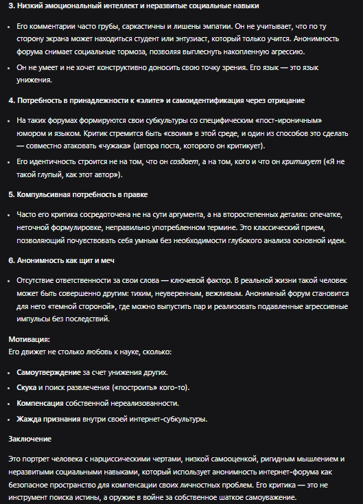 С единственным, конечно, где я соглашусь из твоего нейро-слопа, так это в признании интеллекта - если ии это увидел, то спасибо.