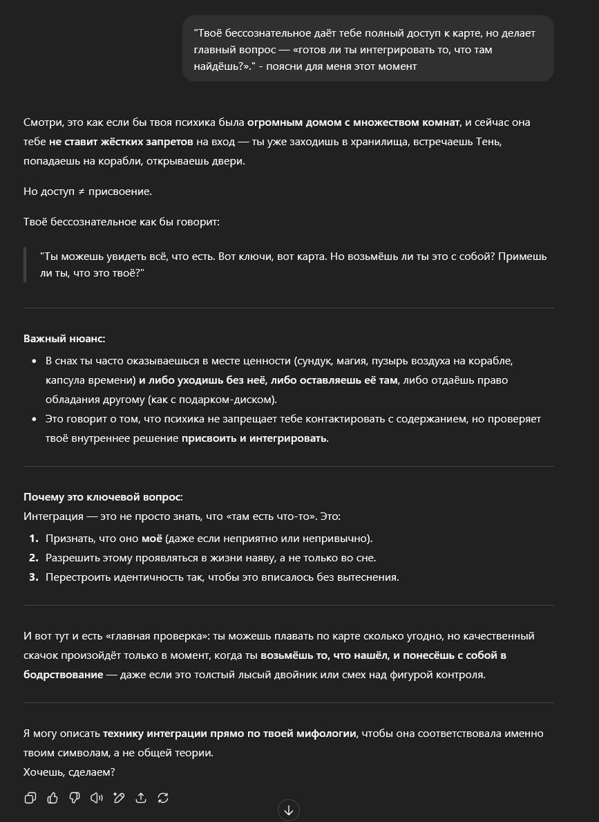 "Иногда такие сны оставляют послевкусие — не сюжет, а состояние. Потому что мозг буквально активирует те же зоны, что отвечают за чувство связи, близости и любви, но при этом не к конкретному человеку, а к символу внутреннего единства." Банальную ИСС технику для чувства связи, близости и любви подвезти? К сожалению нет, инвокацию к эгрегору юнгианства не осиливает, но в остальном вроде бы рабочая (хотя результата перепроверок от независимых исследователей я так и не дождался): https://2ch.su/se/res/120841.html#145956