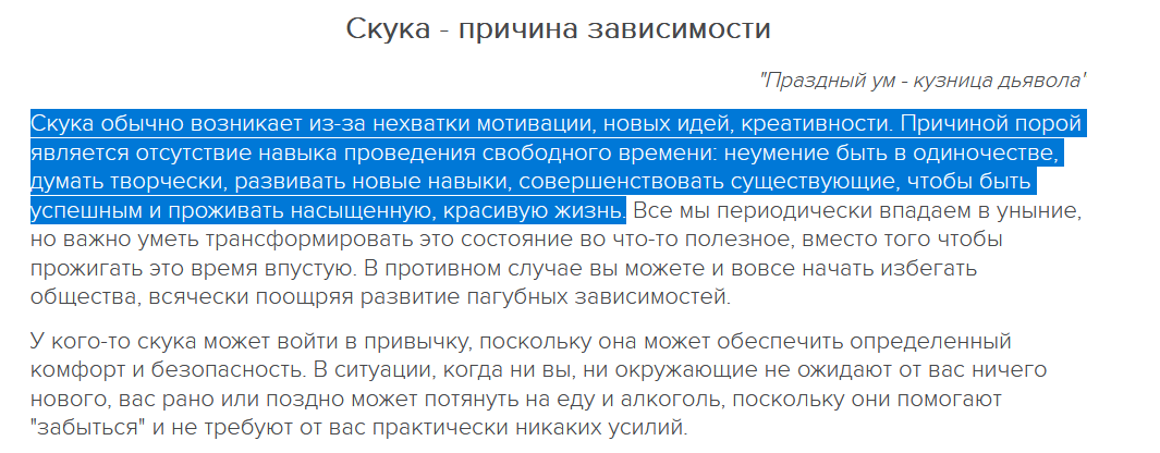 >>149594 → >Видишь бабу - ебешь - не дала - дрочишь. И зачем ты все это делаешь? По какой причине? Можешь просто представить, что есть люди, которым причина по которой ты все это делаешь просто неинтересна? Я понимаю почему наркоманы употребляют - им приятно вначале, потом это становится и физической зависимостью и паттерном. Но я этого не делаю, потому что мне это не интересно. Интересен твой ответ и твоя мотивация, которая была бы отлична от мотивации наркоманов. Подсказка : Такая мотивация может быть одна, кроме наркомании - зачатие потомства